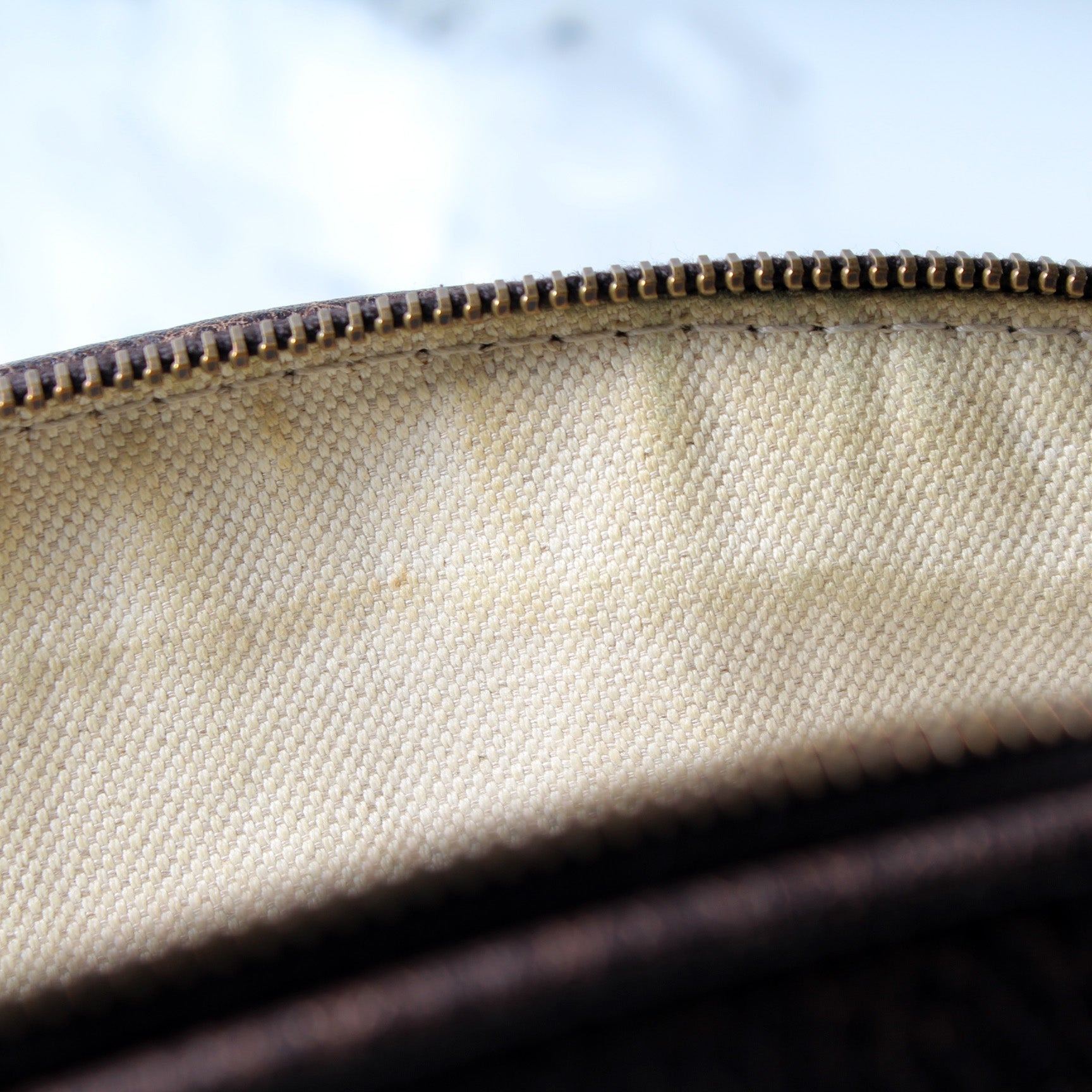 Interior: The interior is clean and free of rips or tears. The interior features one zip closure pocket and two open pockets.