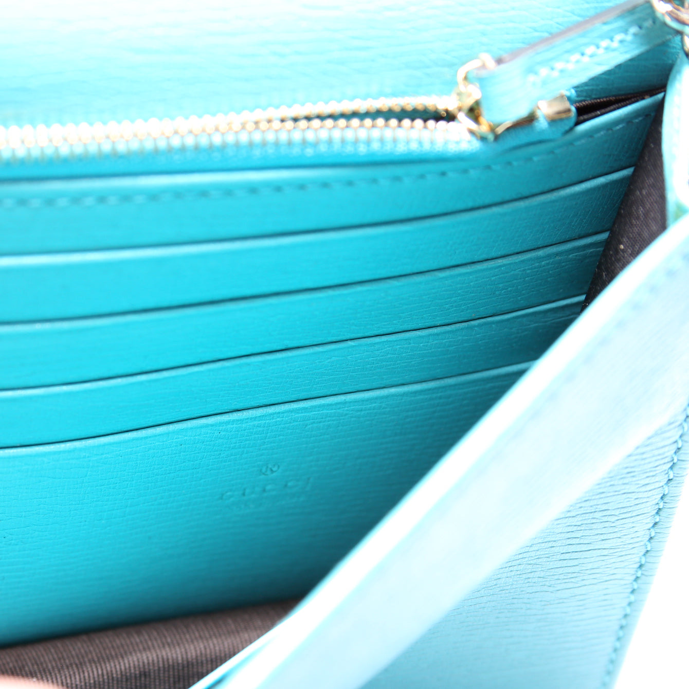 Interior: The interior is clean. The interior features one zip closure pocket and eighteen card slots.
