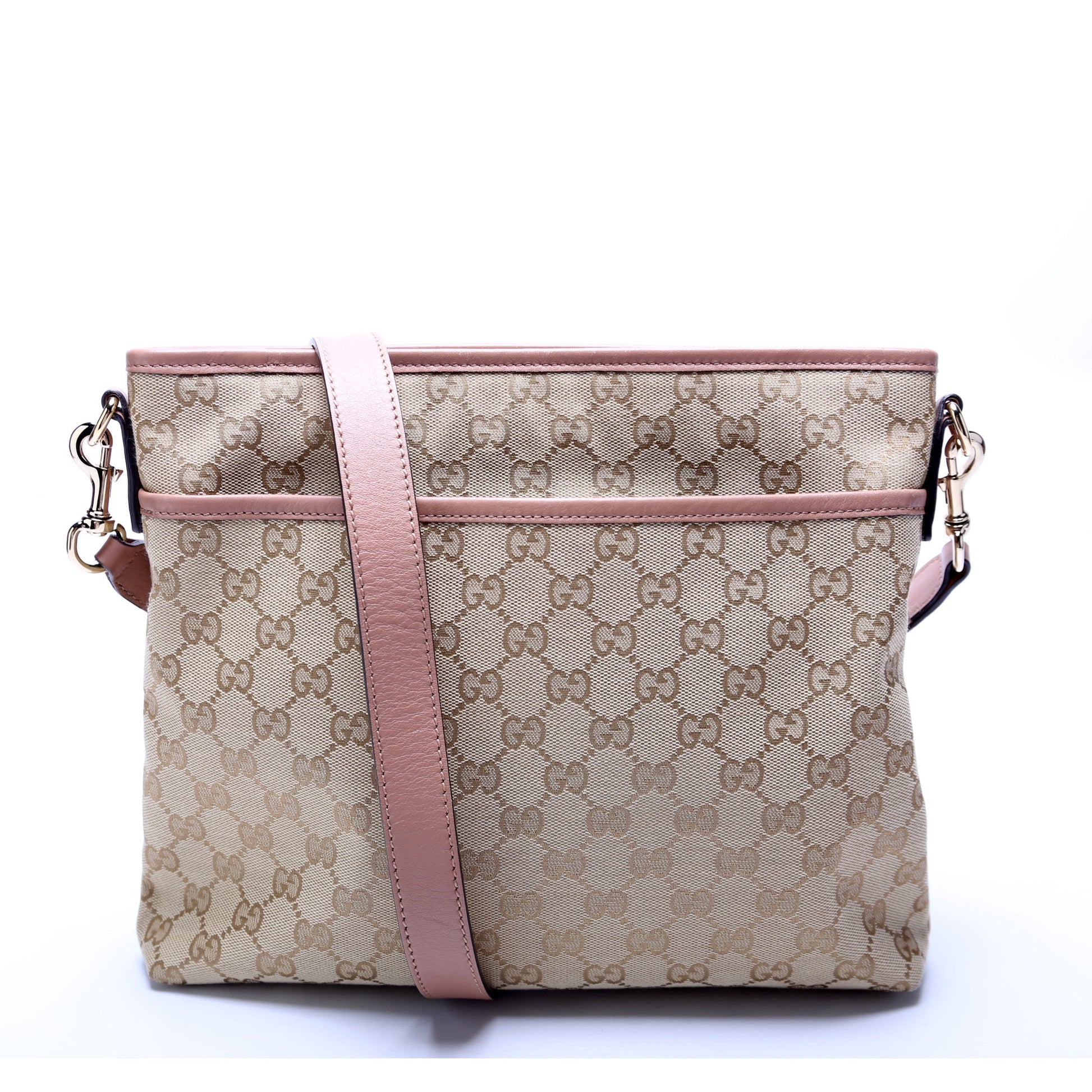 This Gucci GG Crossbodyis eye catching bag. The exterior is in the classic Gucci GG Supreme coated canvas.