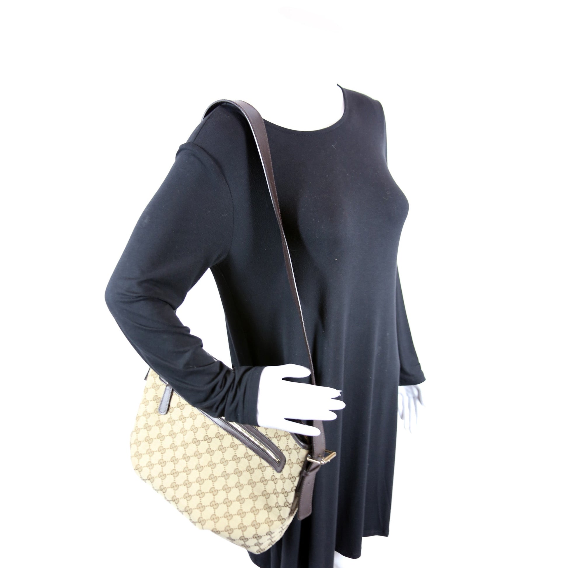 This Gucci GG Canvas Shoulder Bagis eye catching bag. The exterior is in the classic Gucci GG canvas
