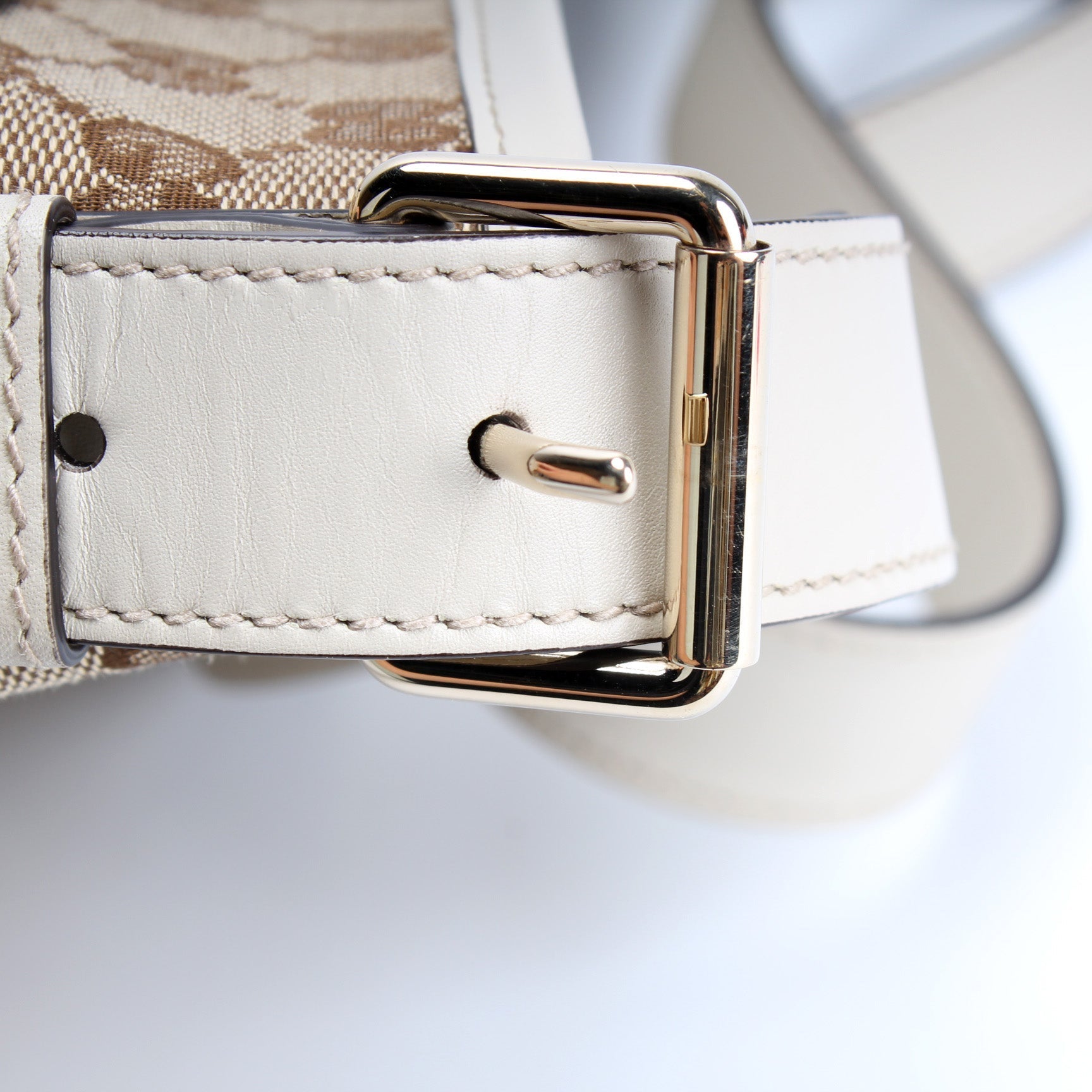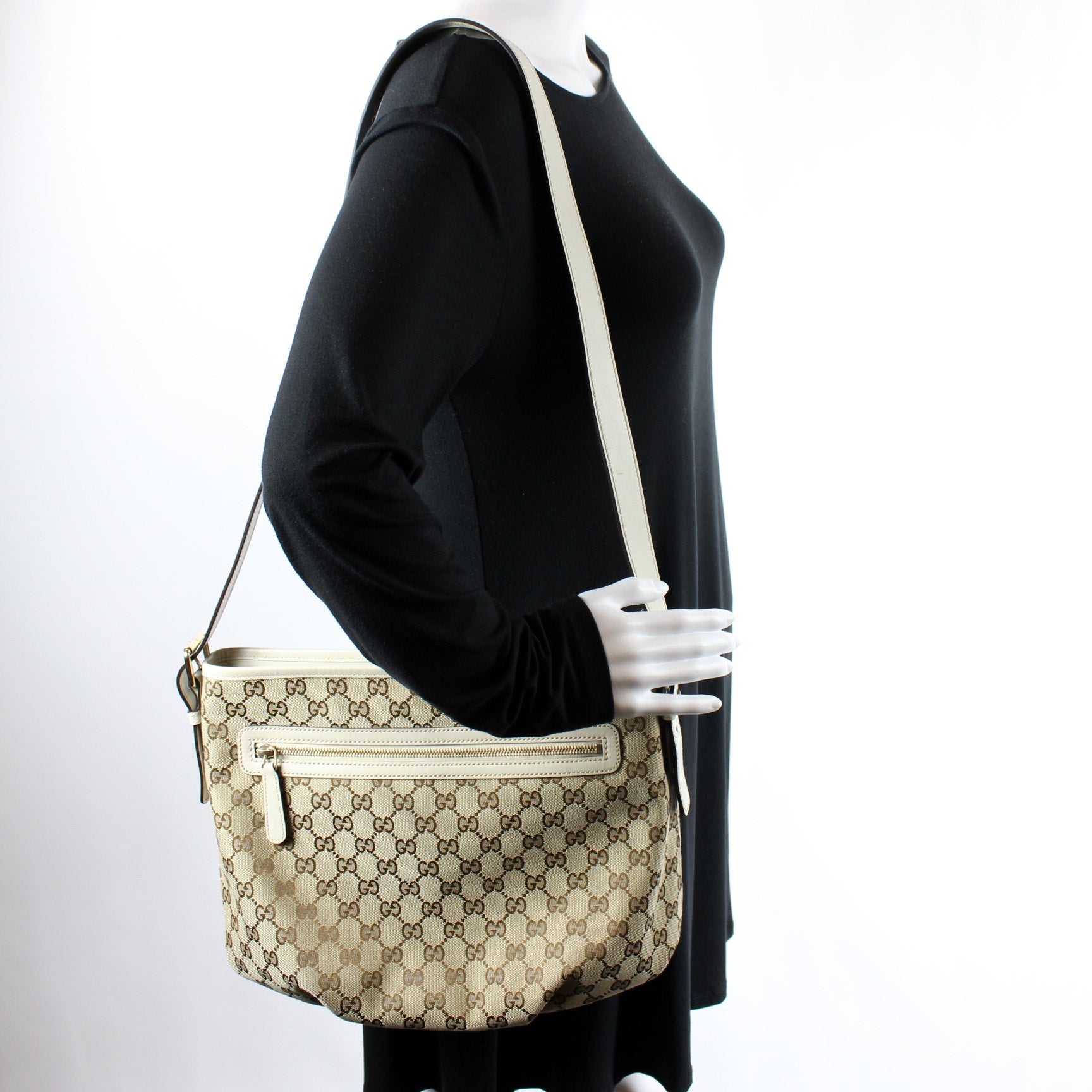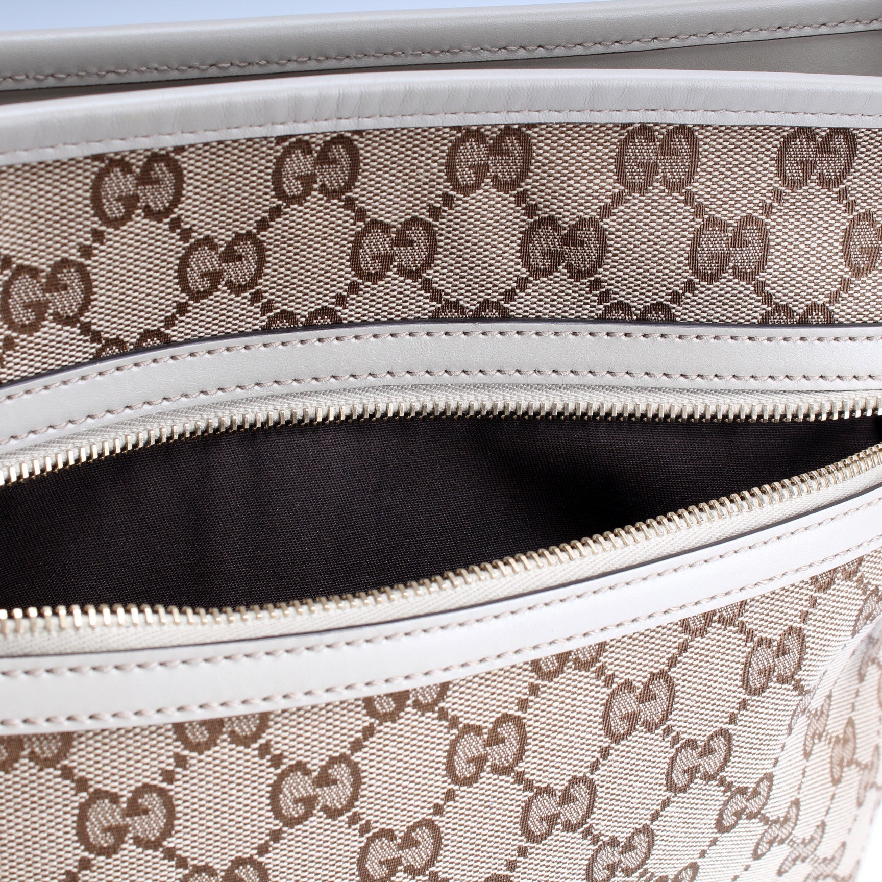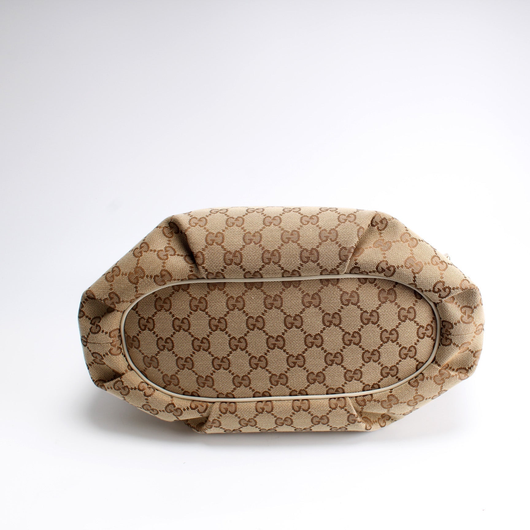 This Gucci GG Canvas Shoulder Bagis eye catching bag. The exterior is in the classic Gucci GG canvas