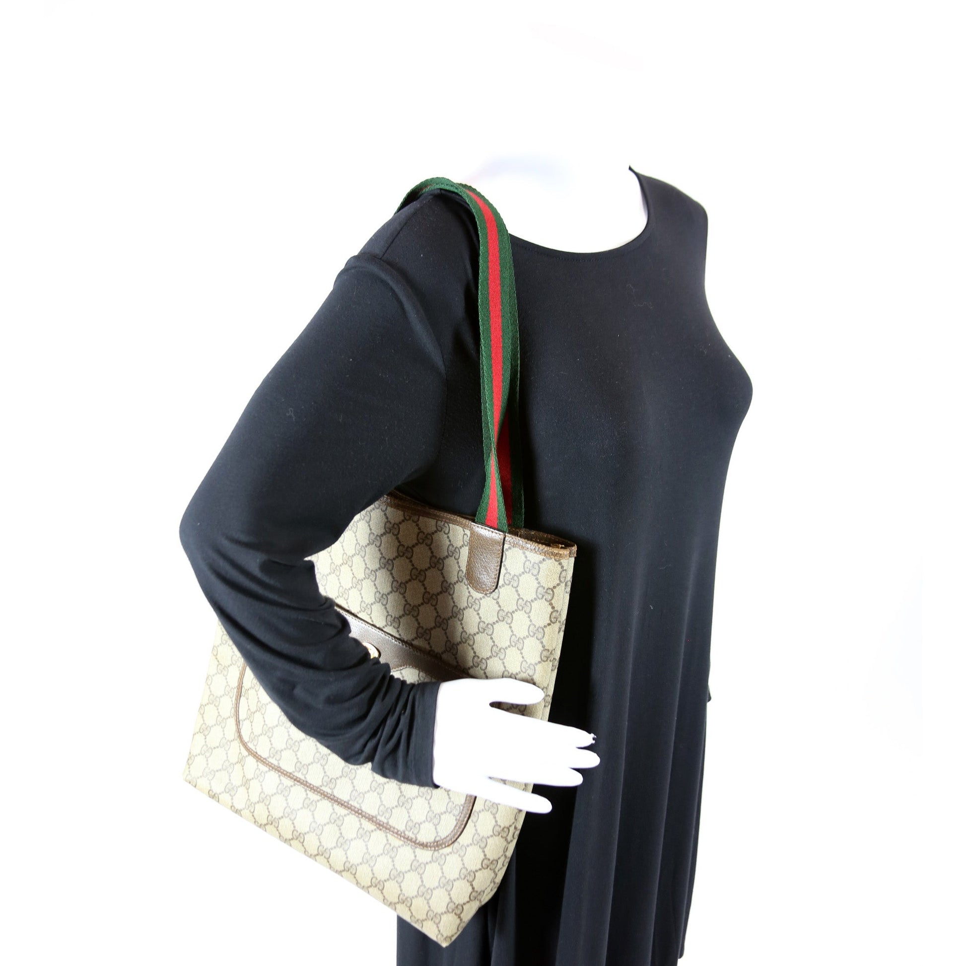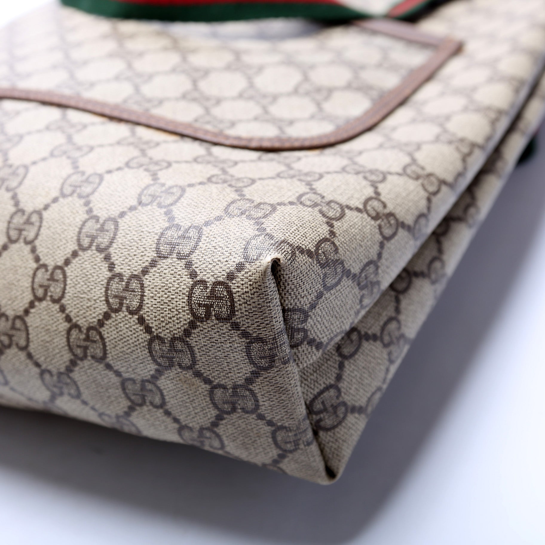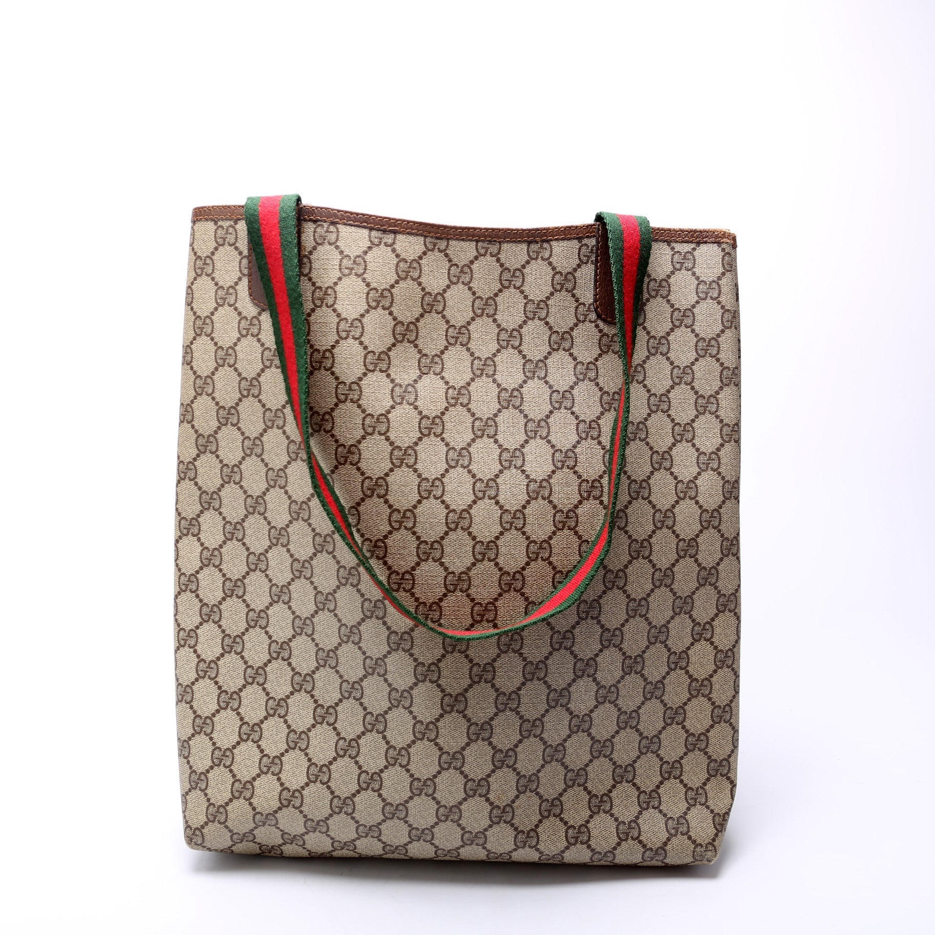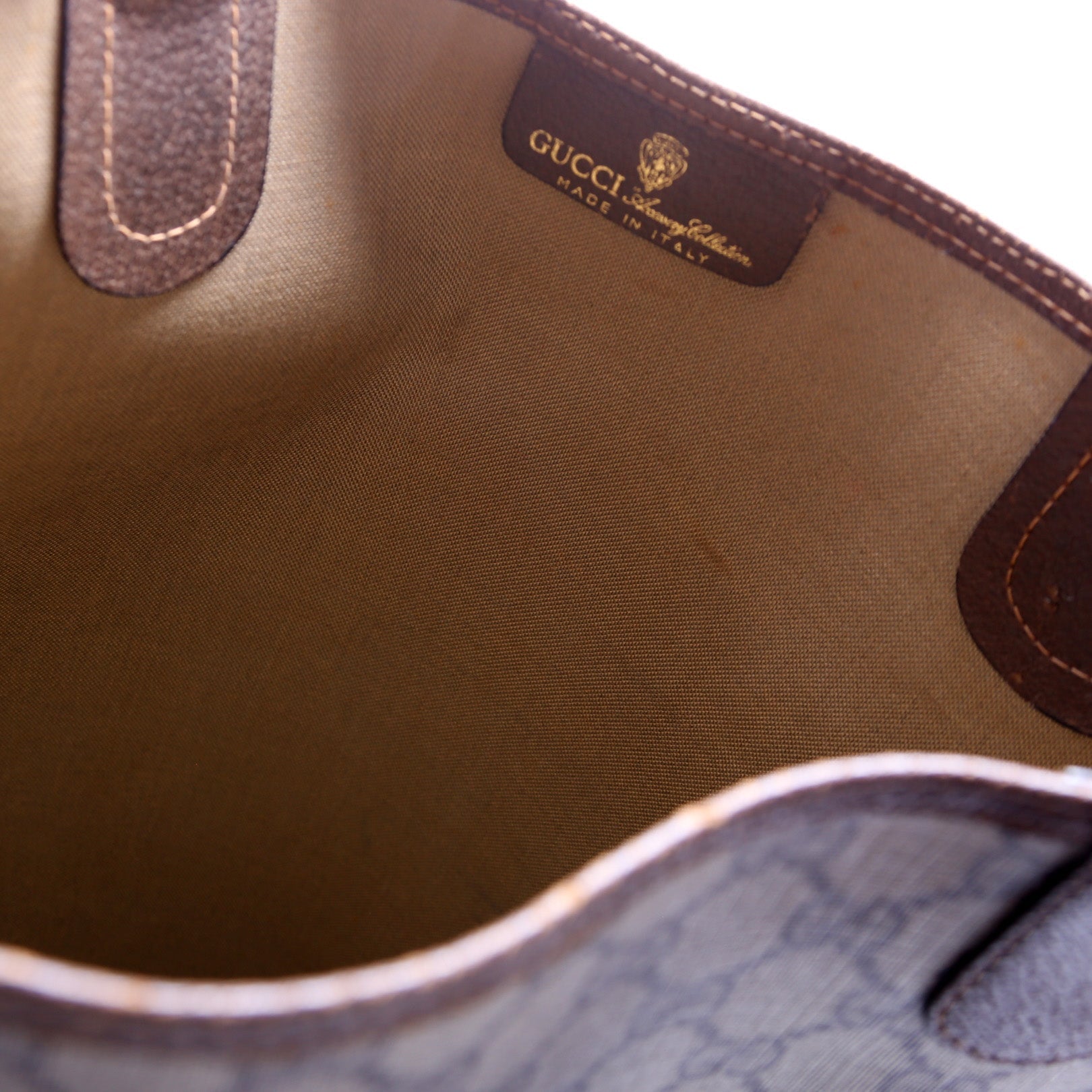 This Gucci Vintage Sherry Line Toteis eye catching bag. The exterior is in the classic Gucci GG Supreme coated canvas.