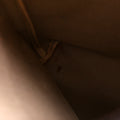 Exterior: The exterior is free from any rips or cracks. The corners show minor rubbing. The leather trim shows minor wear and discoloration throughout. The exterior features one open pocket.