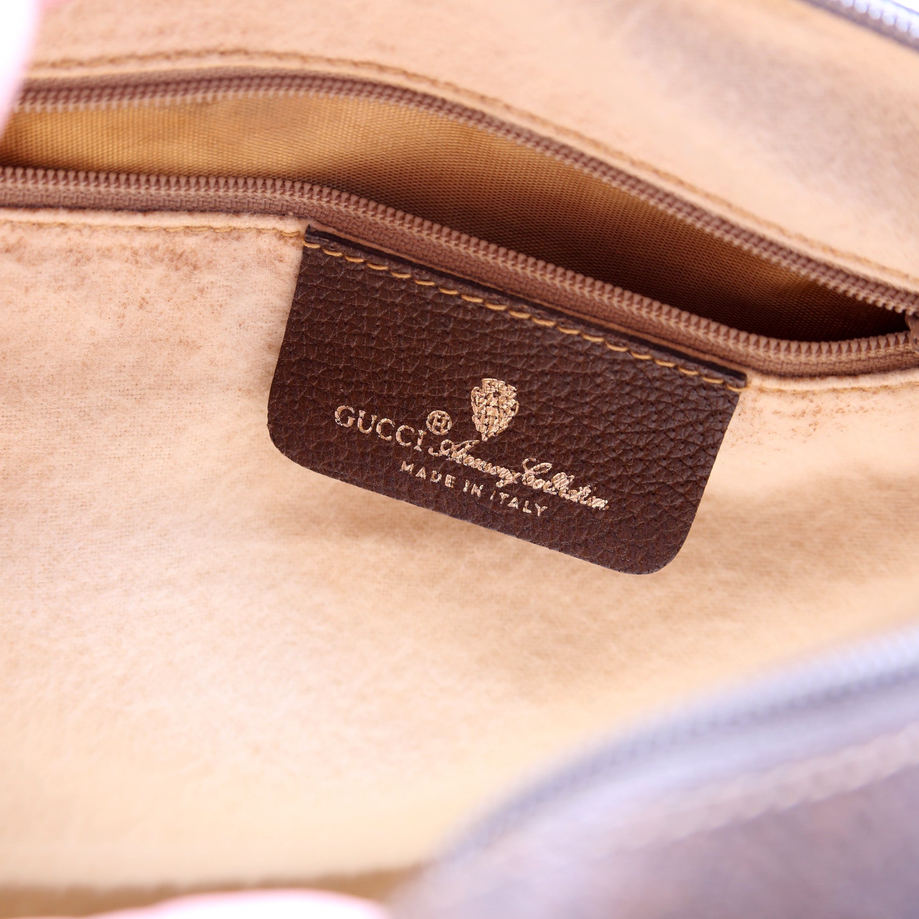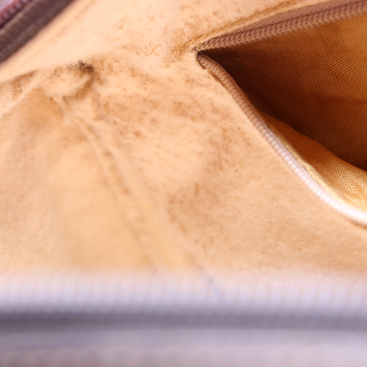 Interior: The interior has discoloration and it features one zipper pocket.