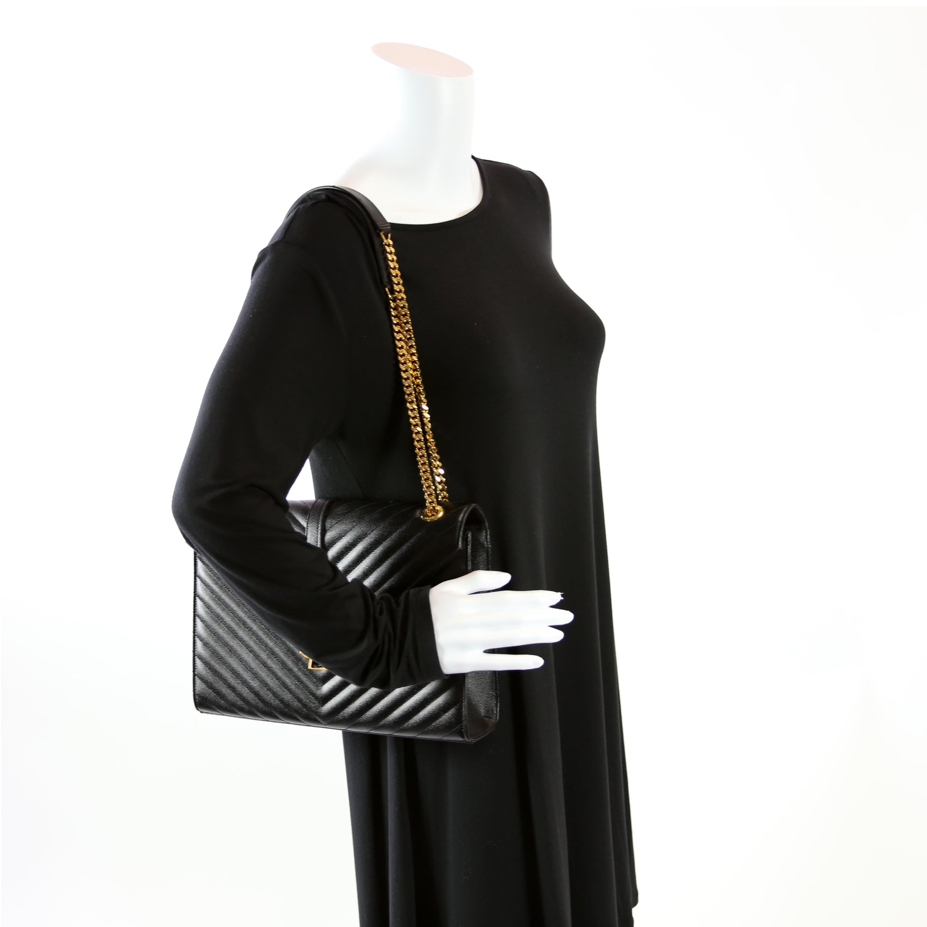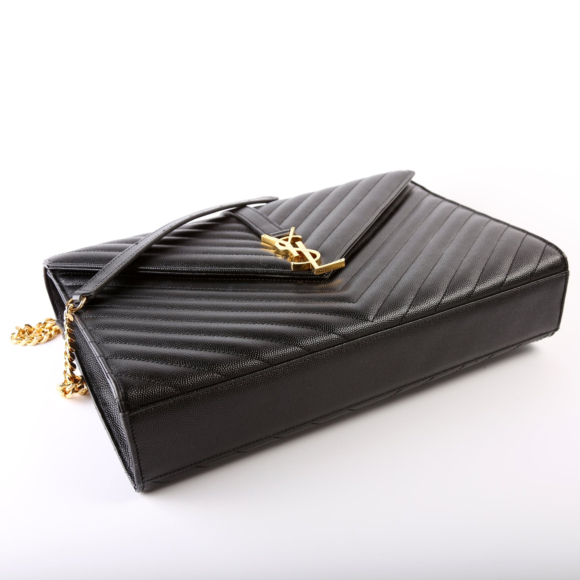 This Yves Saint Laurent Envelope Chevron Largeis eye catching bag.