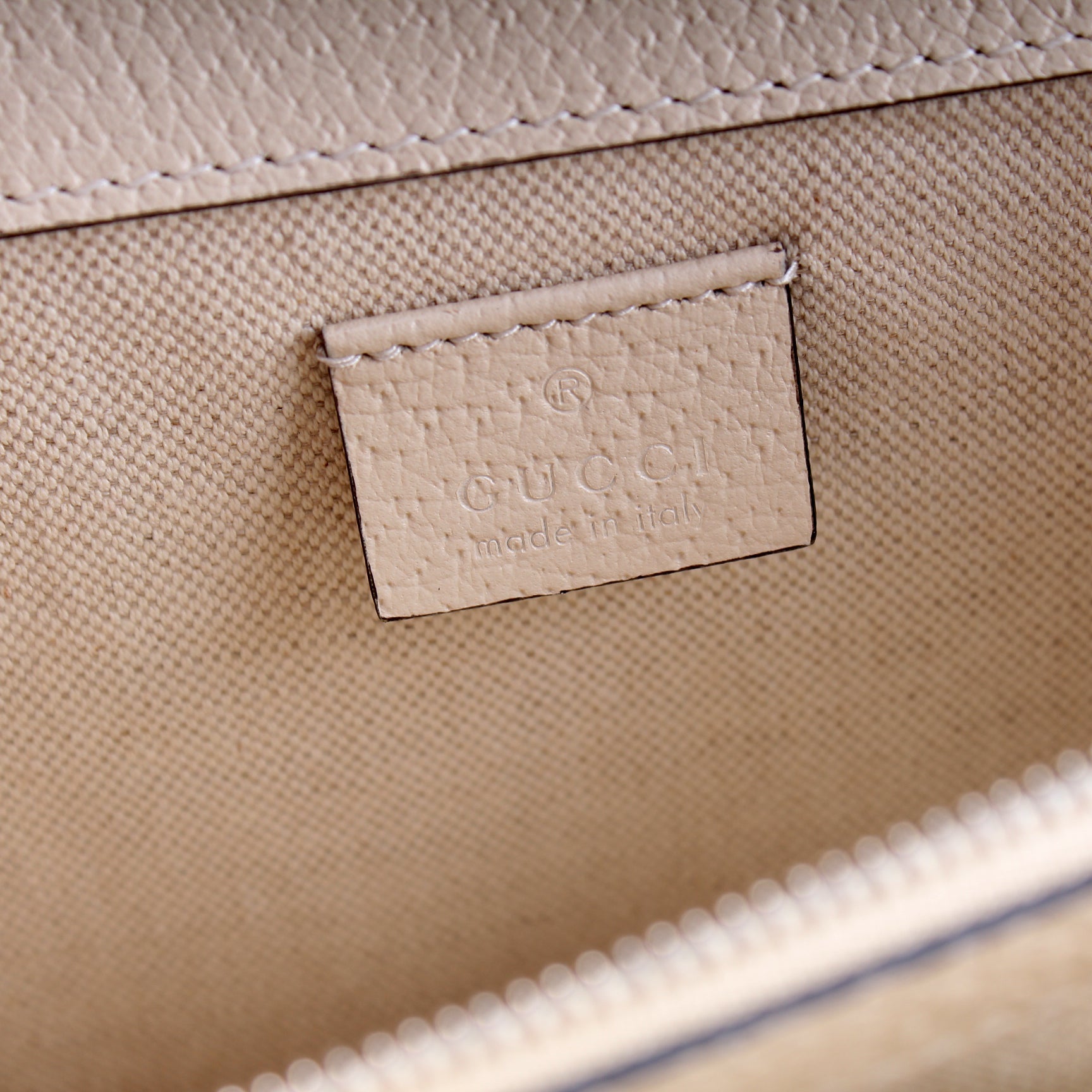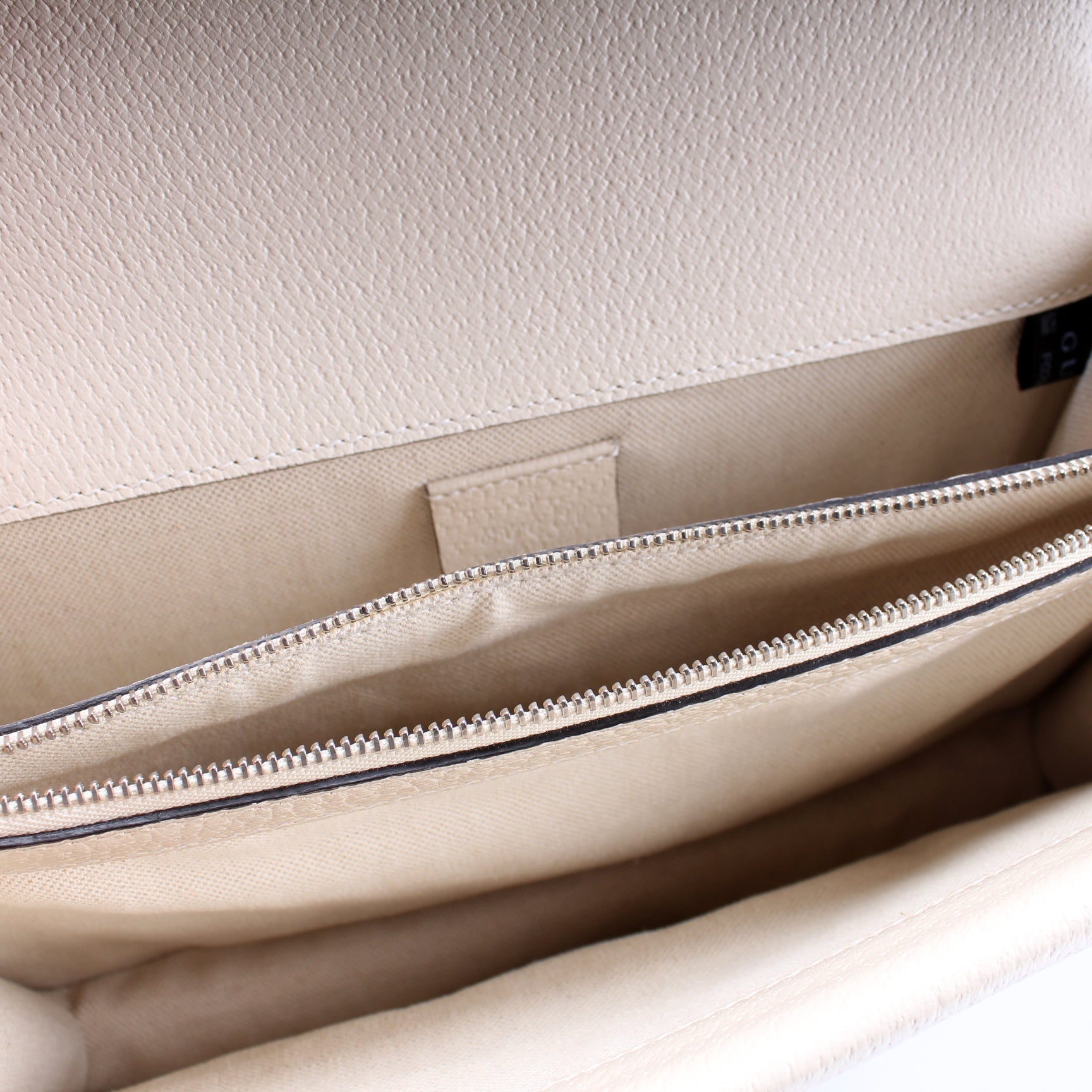 Interior: The interior is clean and free of rips or tears. The interior features one zip closure pocket and one flap pocket.