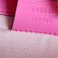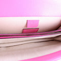 Interior: The interior is clean and free of rips or tears. There is a minor indentation and color transfer on the leather from the hardware. The interior features two open sections and one zip closure pocket.