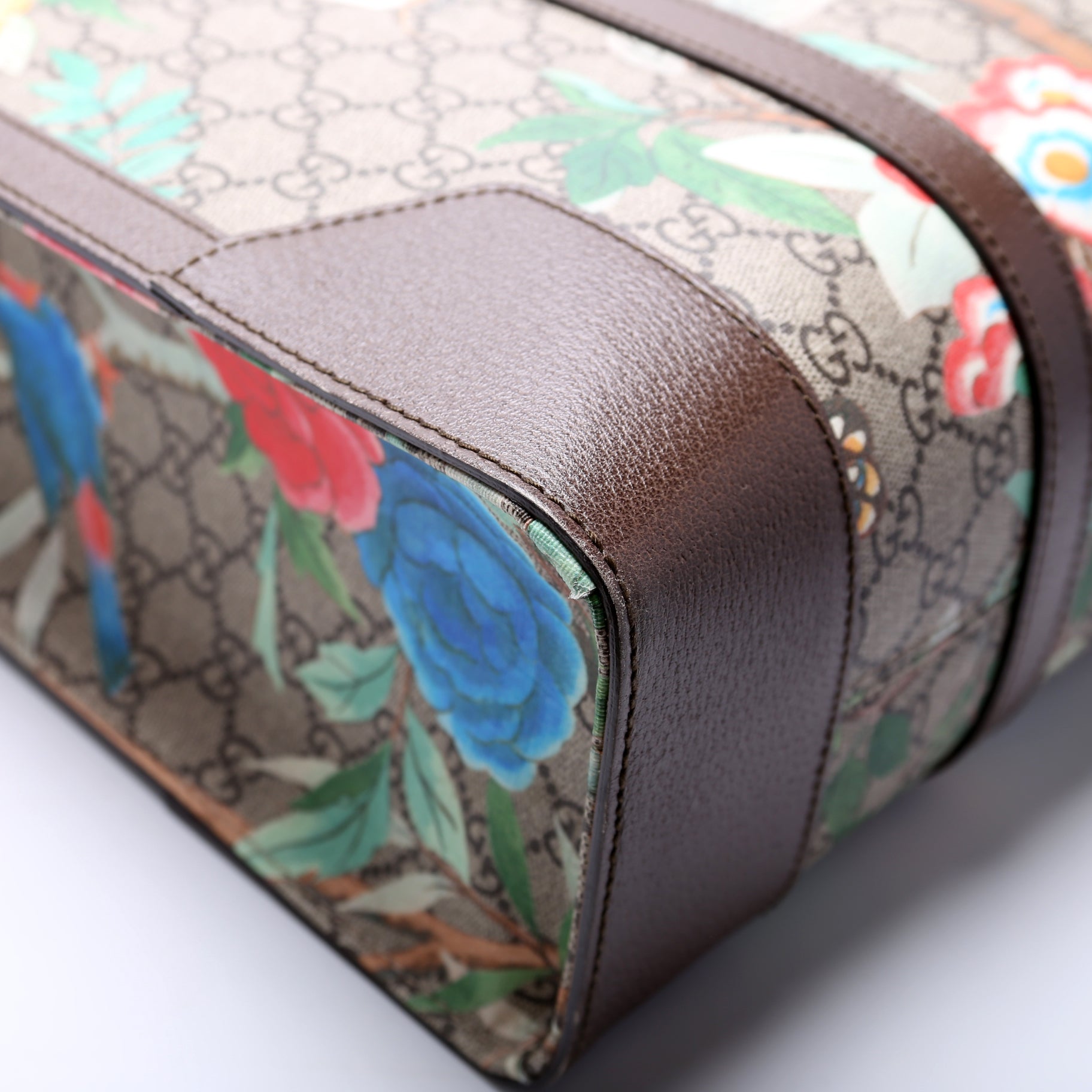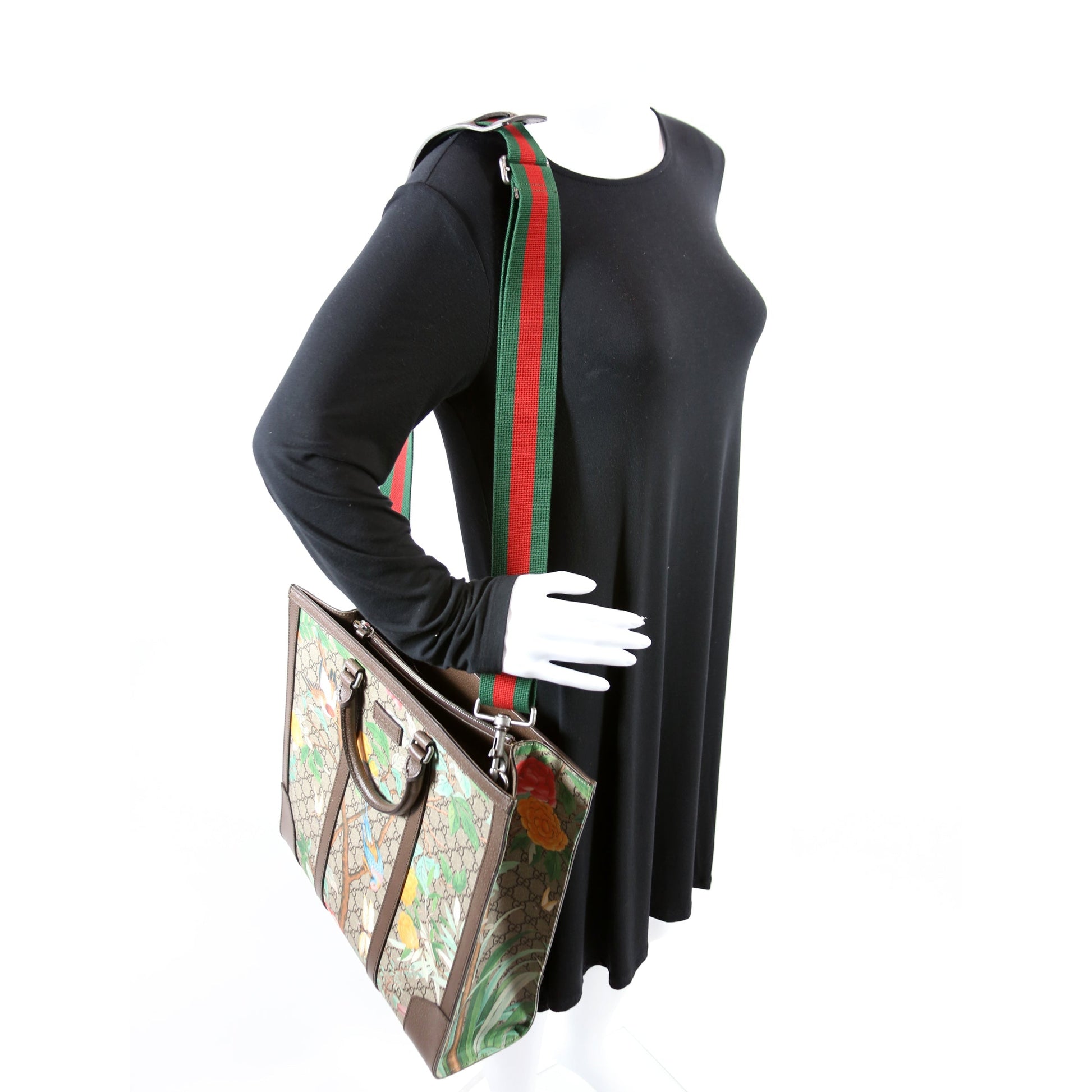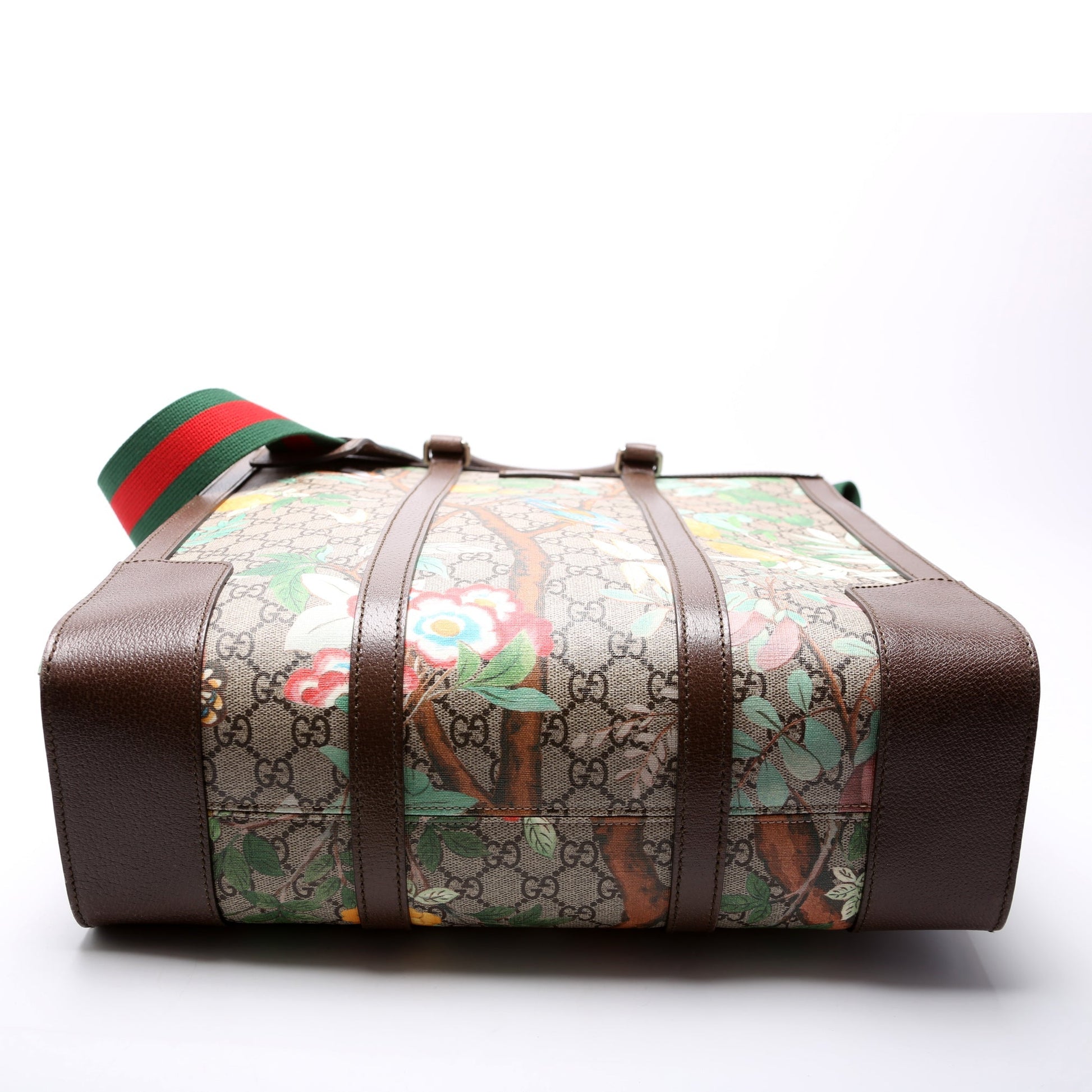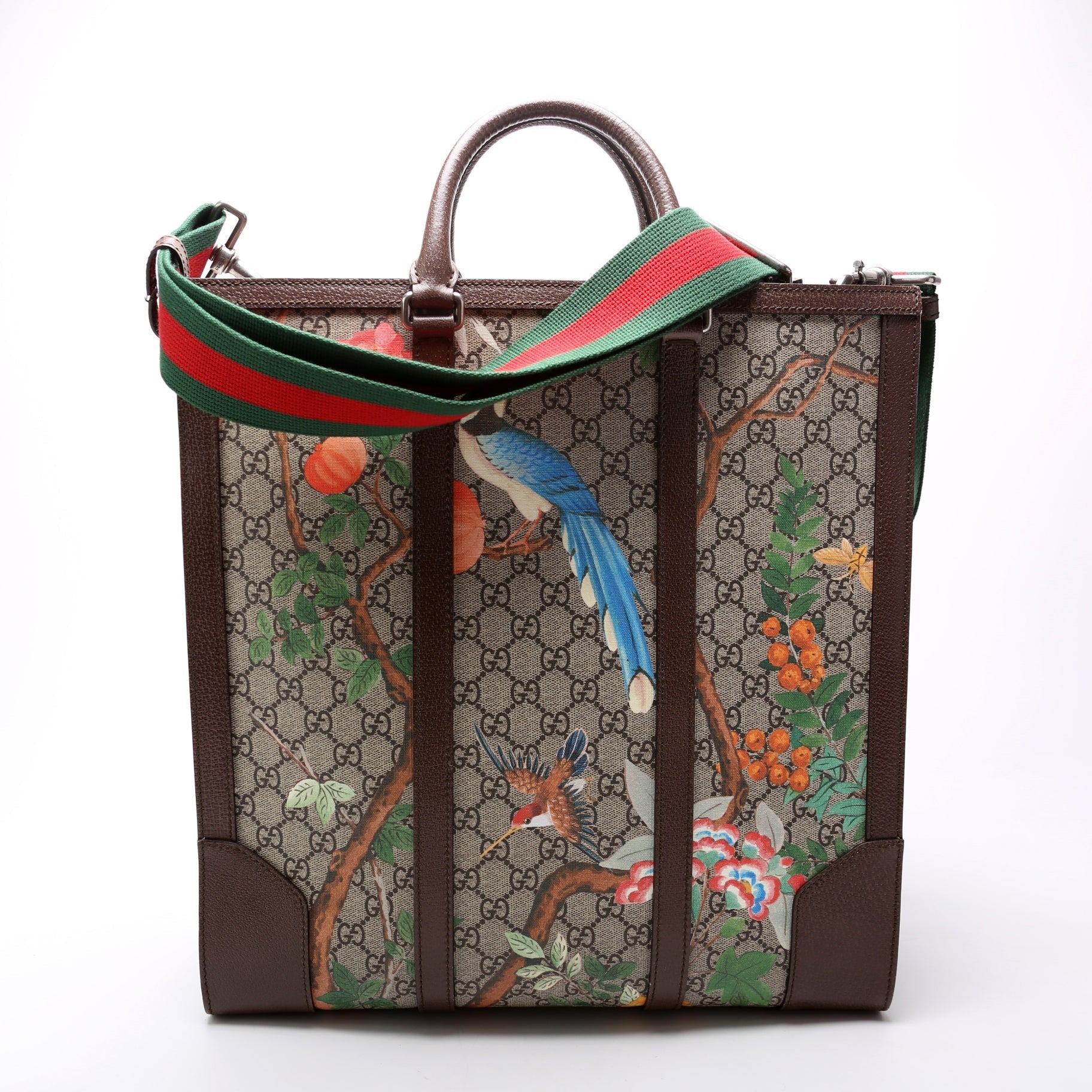 This Gucci GG Supreme Tian Vertical Toteis eye catching bag.