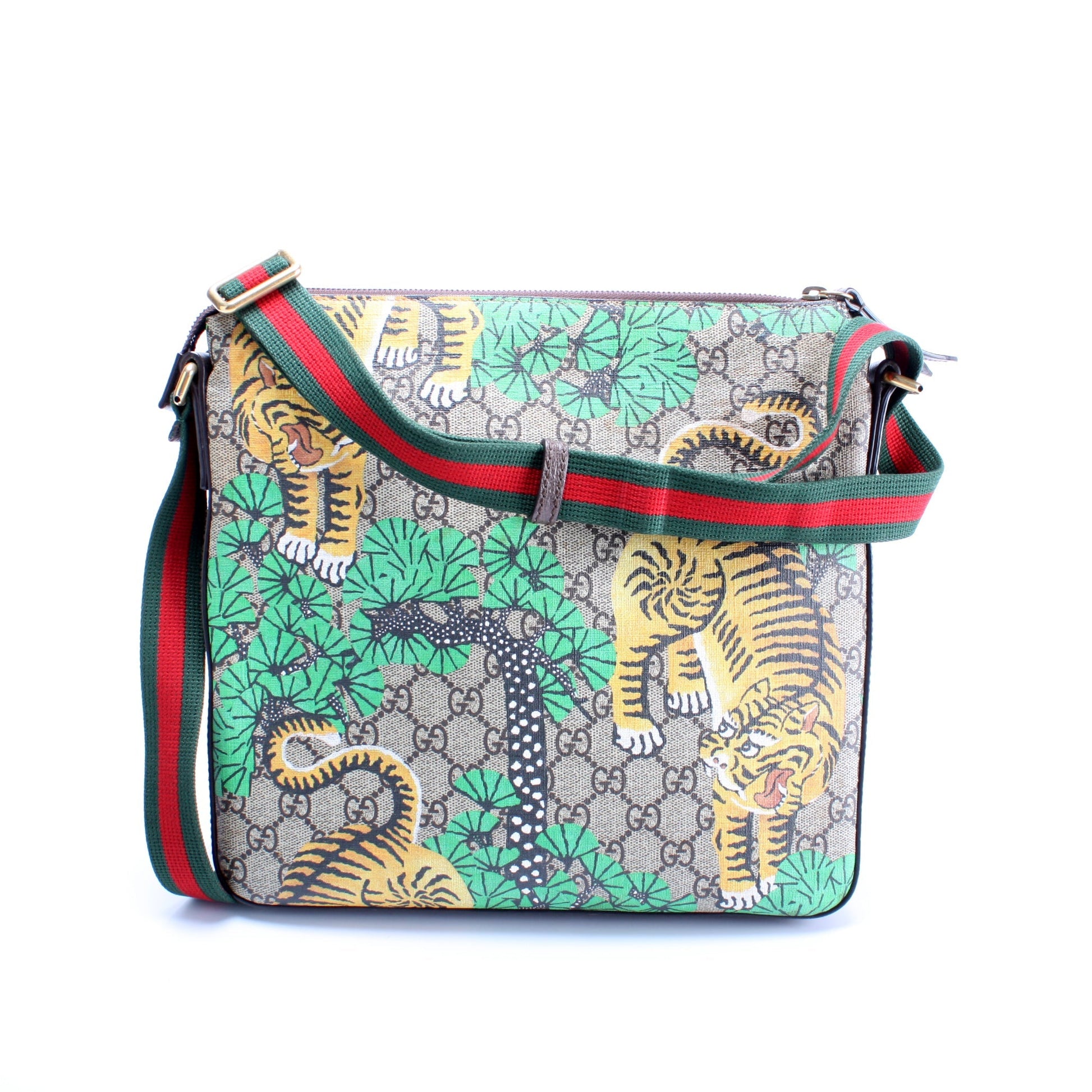 This Gucci GG Supreme Bengal Tiger Small Messenger is guaranteed 100% authentic. The exterior is in the classic GG Supreme canvas.