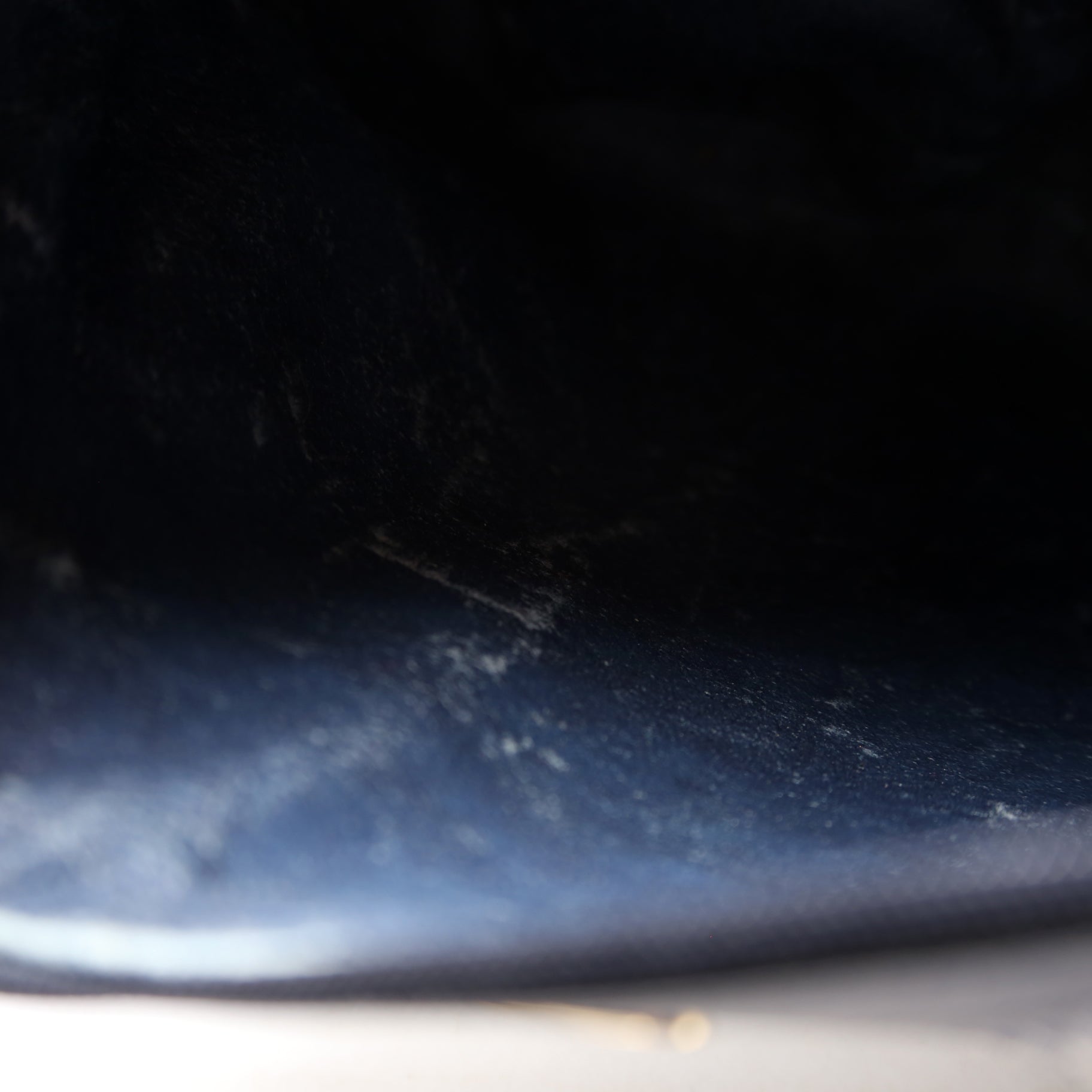 Interior: The interior lining has started to flake and has signs of wear. The interior features one zip closure pocket.