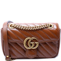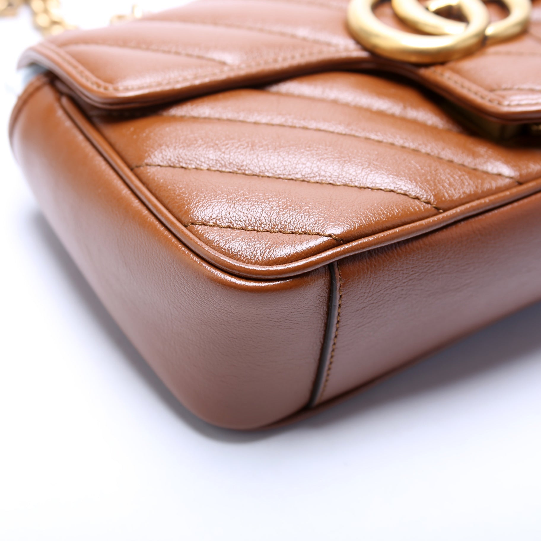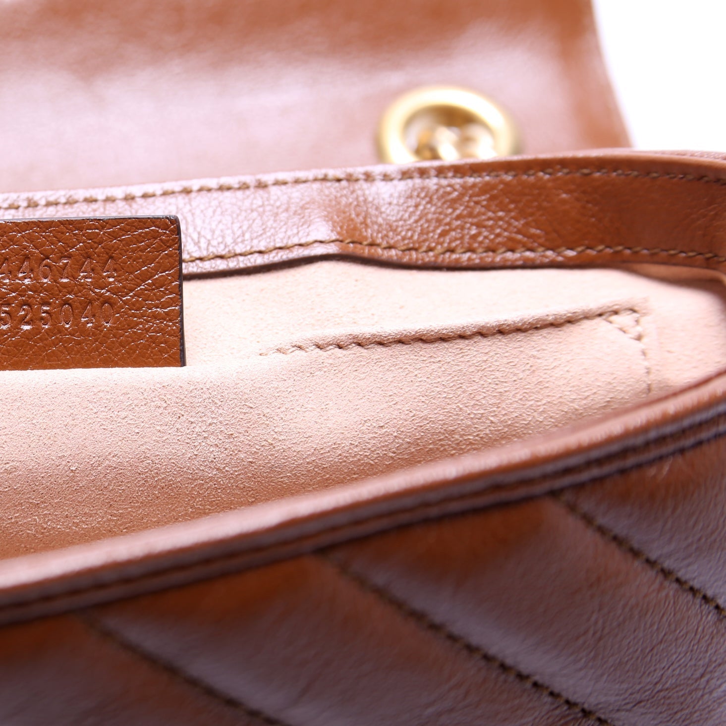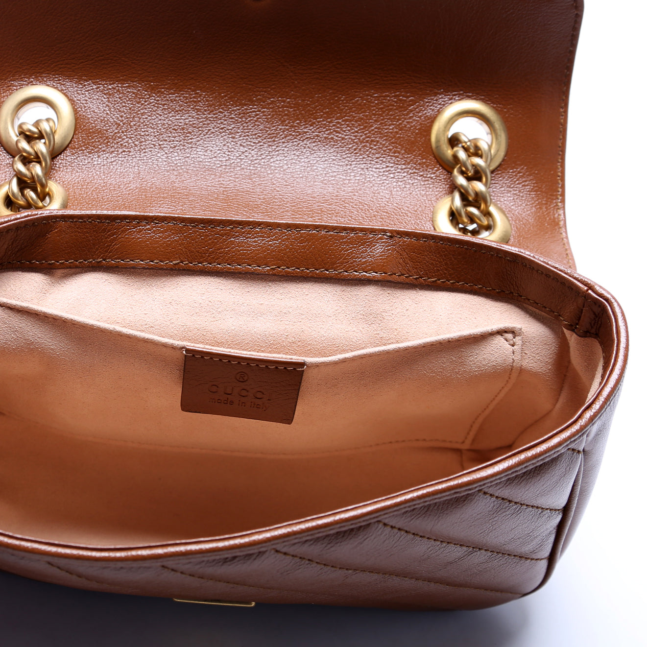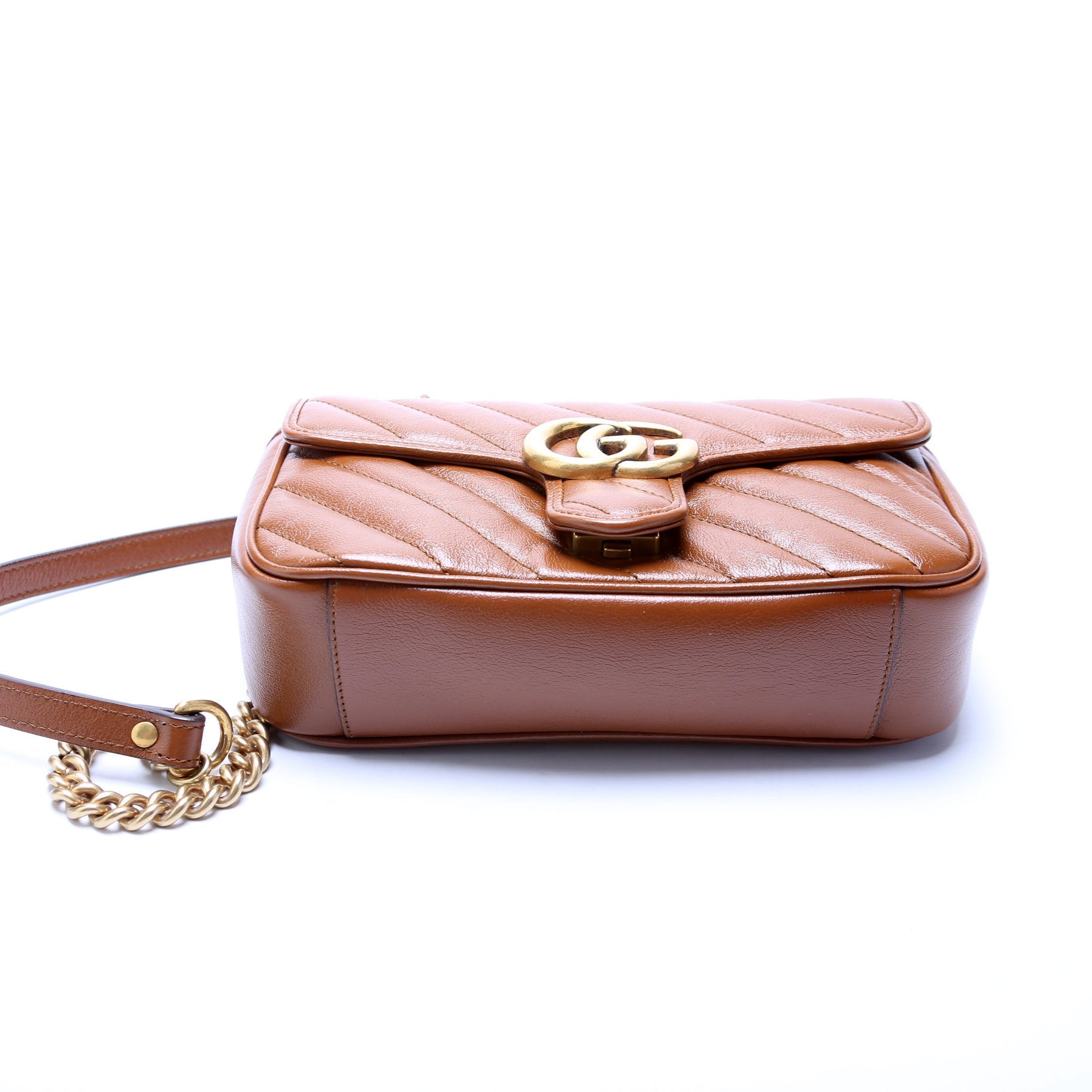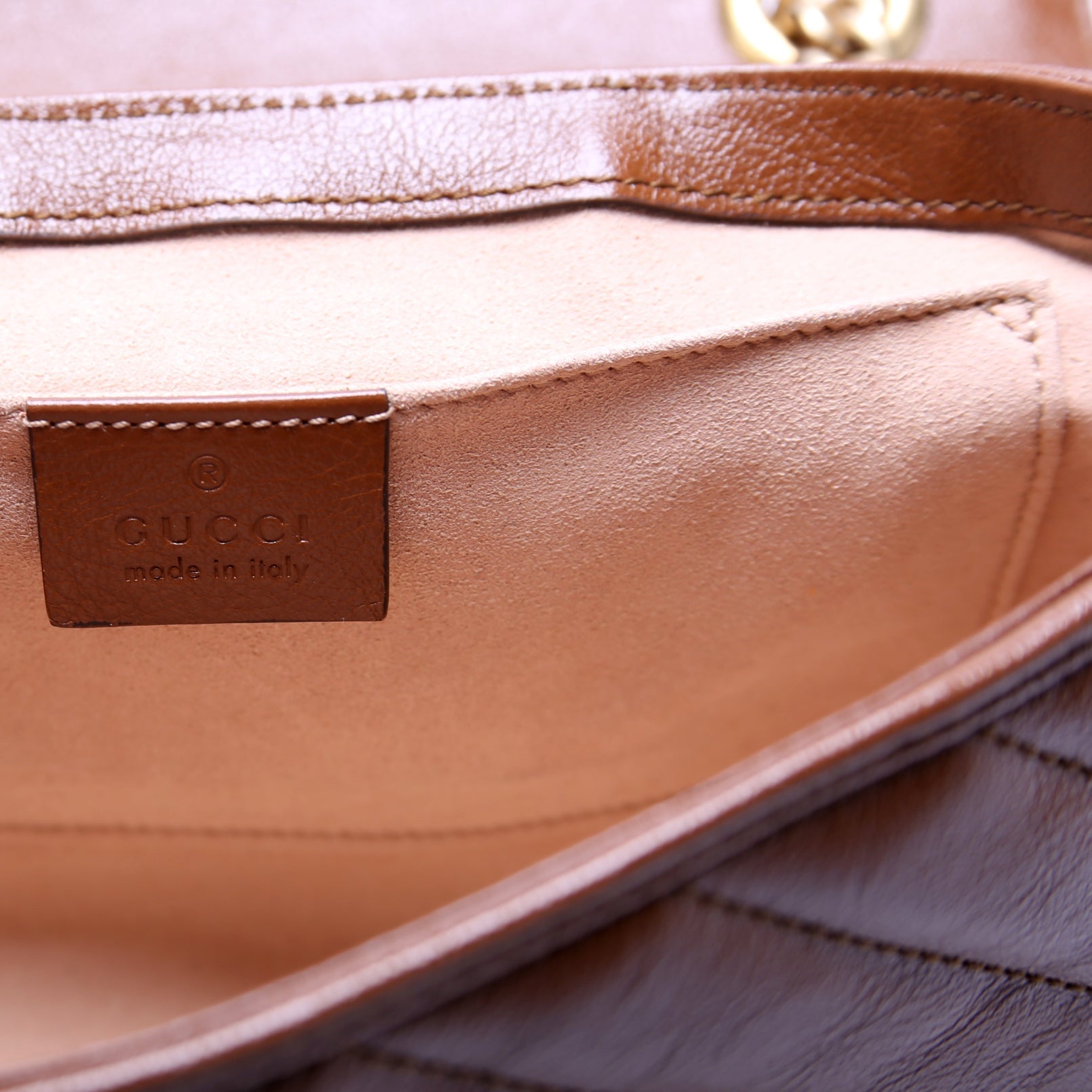 This Gucci Diagonal Leather Shoulder Mini Flap is d 100% . The exterior is in the Gucci Marmont leather.