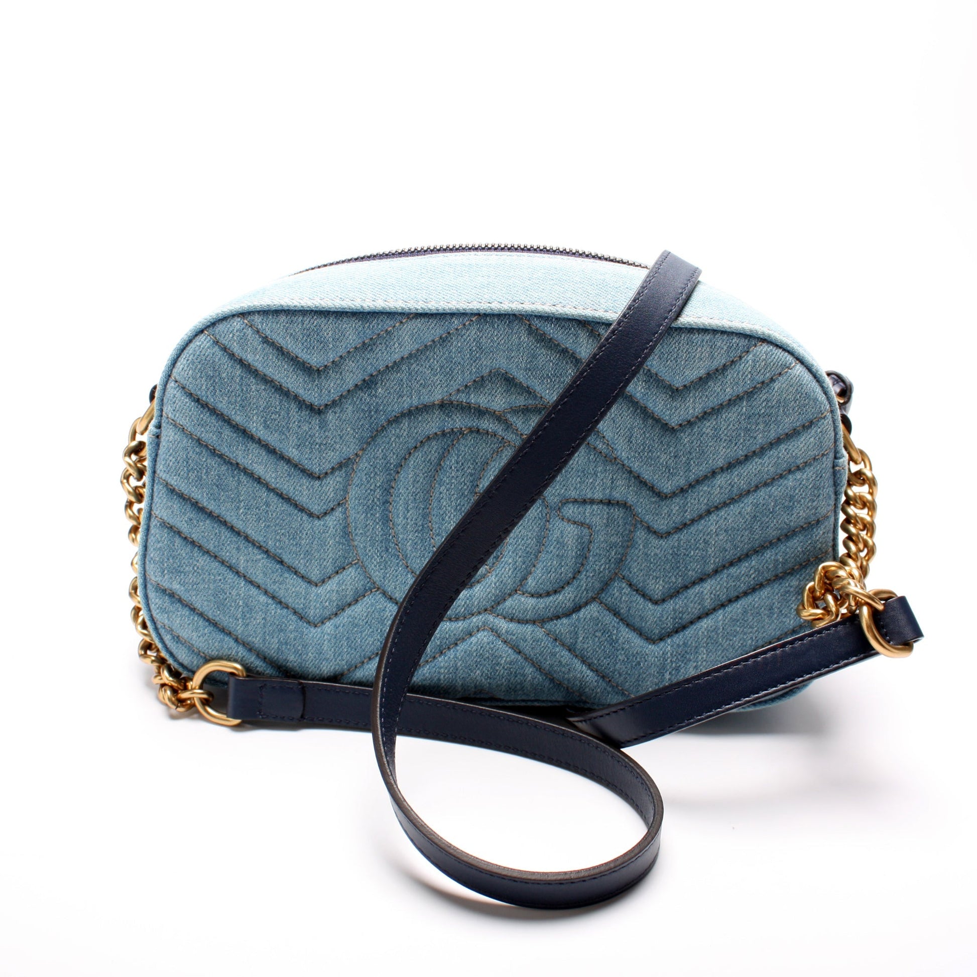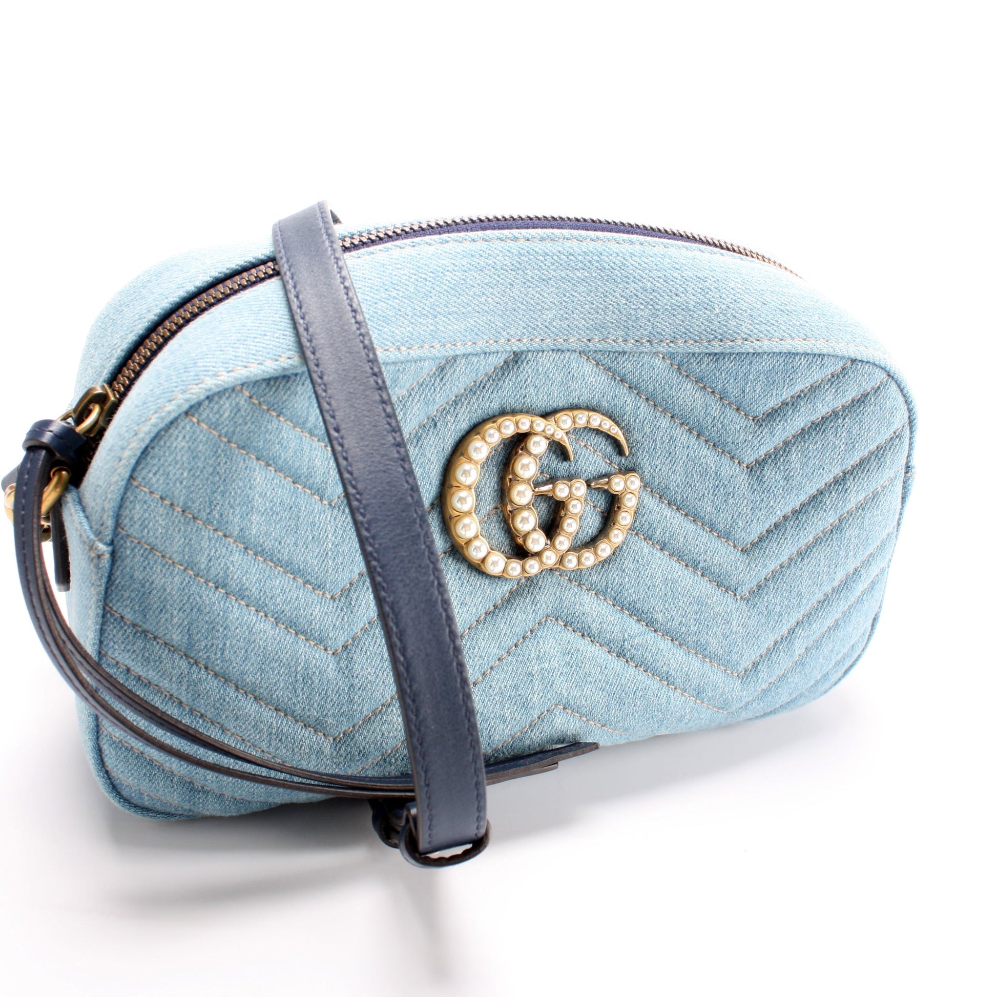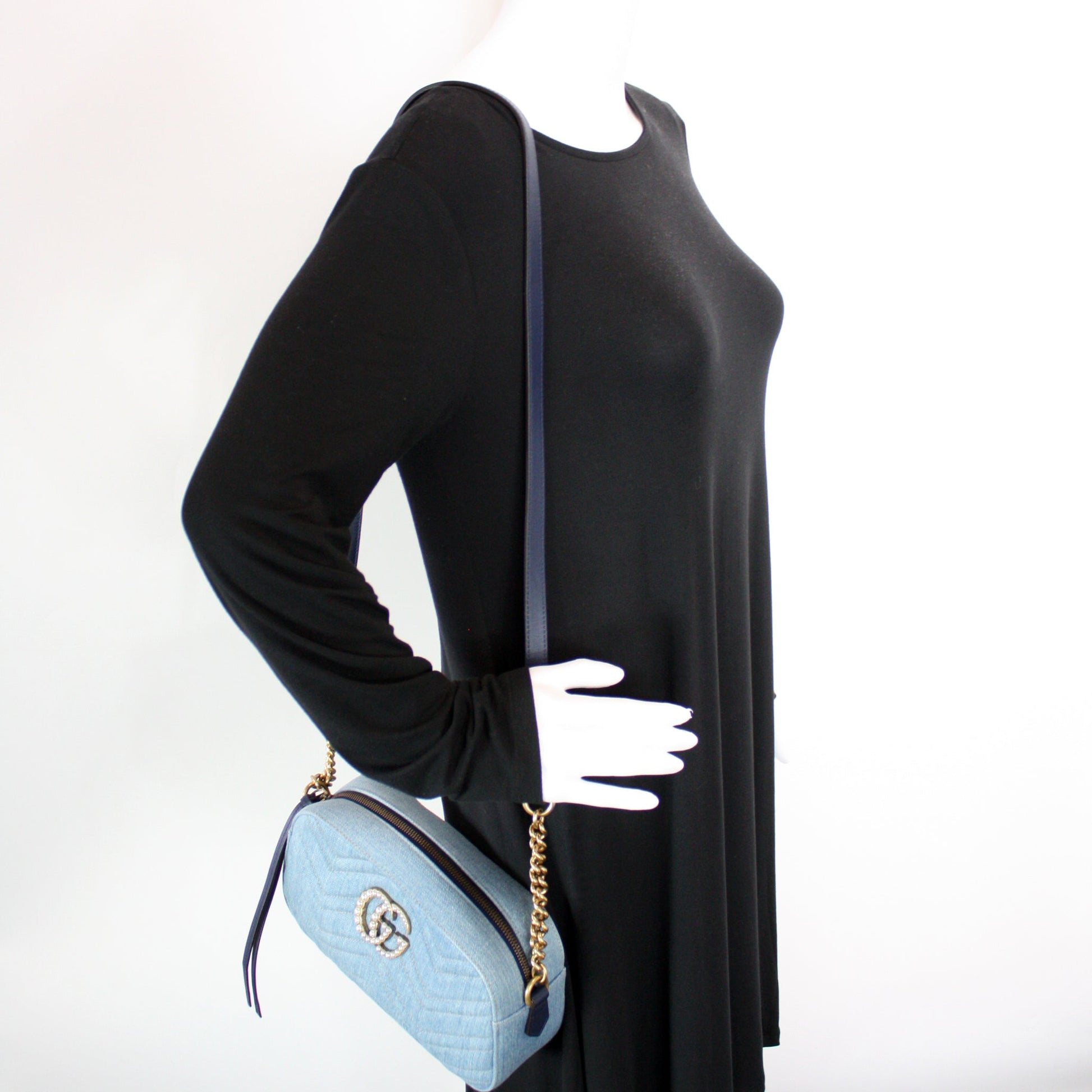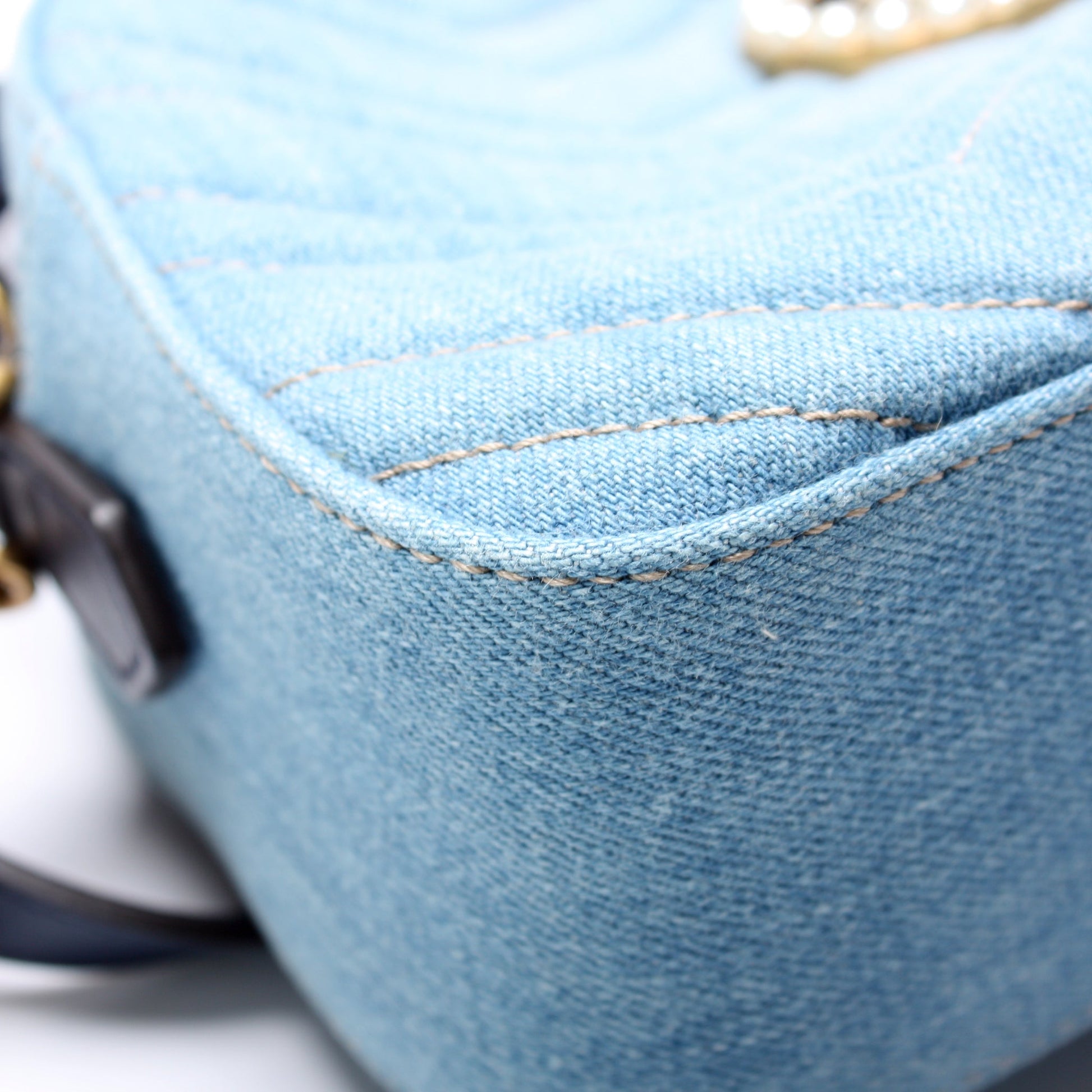 This Gucci Marmont Camera Small Denimis eye catching bag.