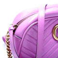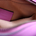 Interior: The interior shows light wear and stains throughout. The interior features one open pocket.