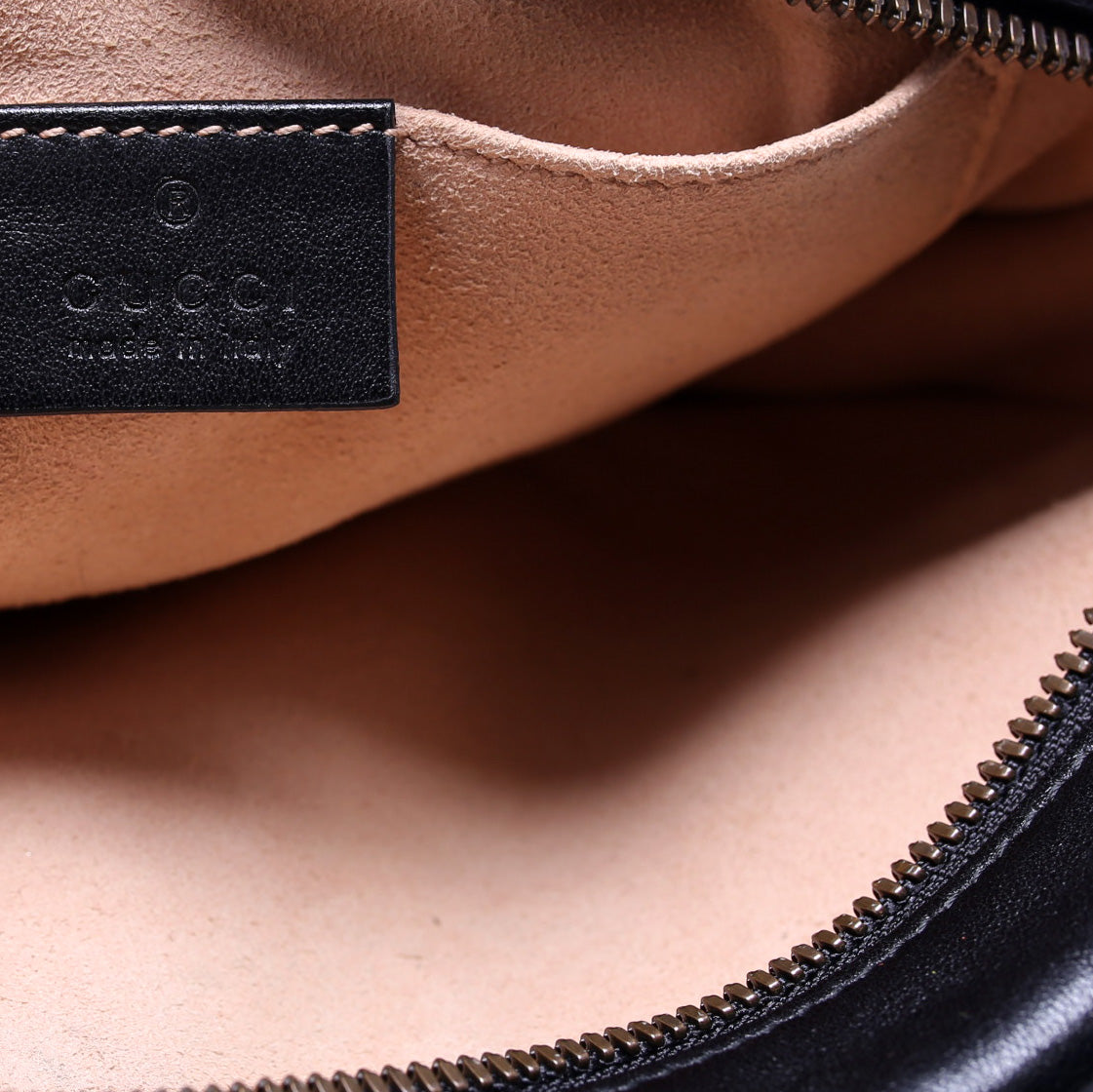 Hardware: The zipper operates properly and runs smoothly. The hardware shows light wear. The leather zipper pull shows light wear.
