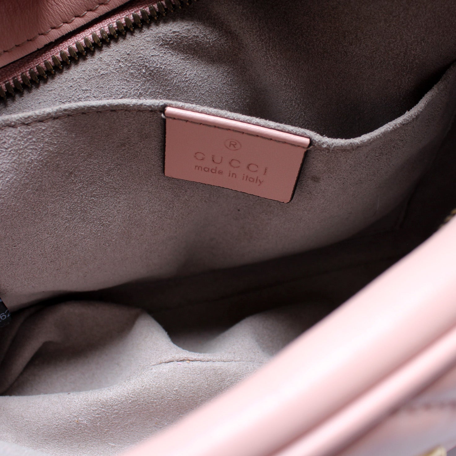 Exterior: The exterior is free of any rips or cracks. The corners show minor wear. The base of the bag has a small pen mark.