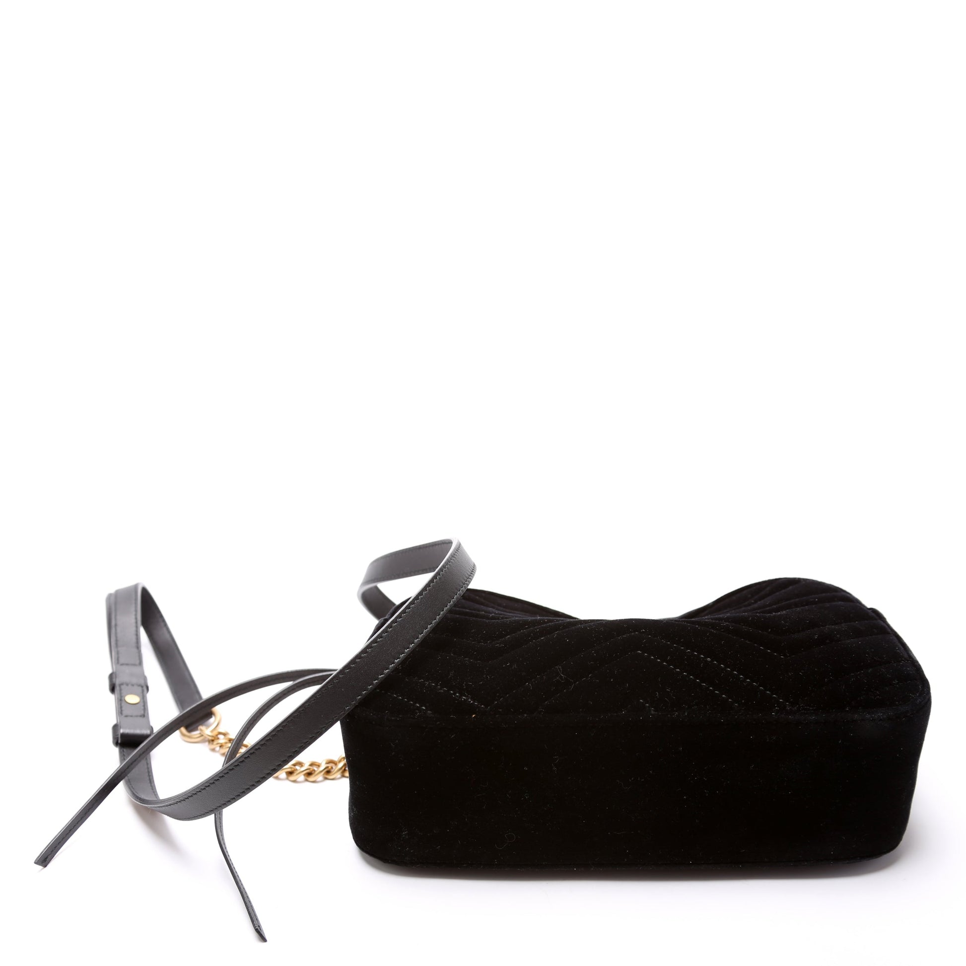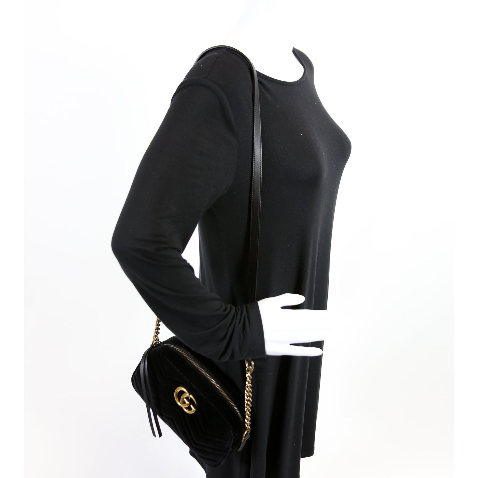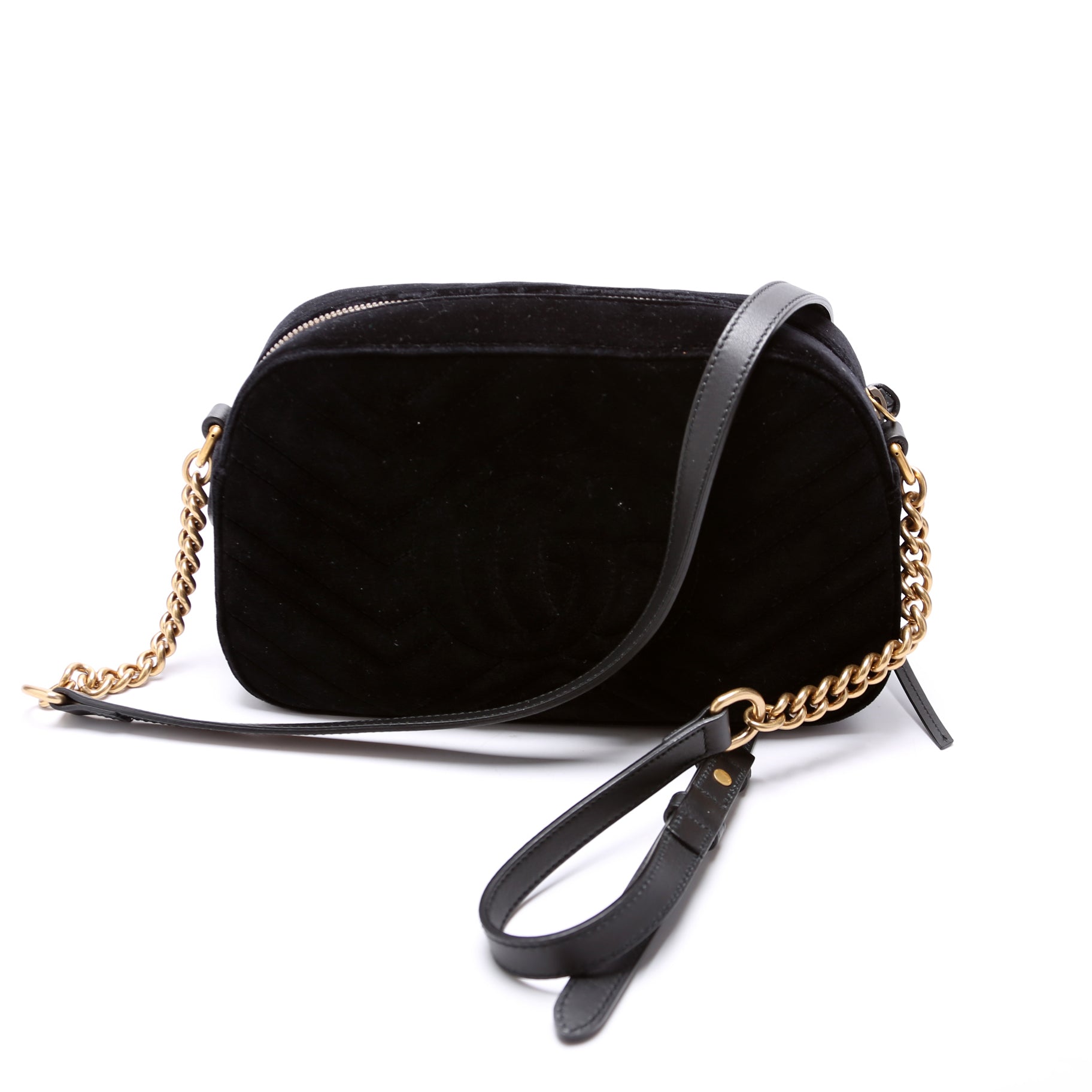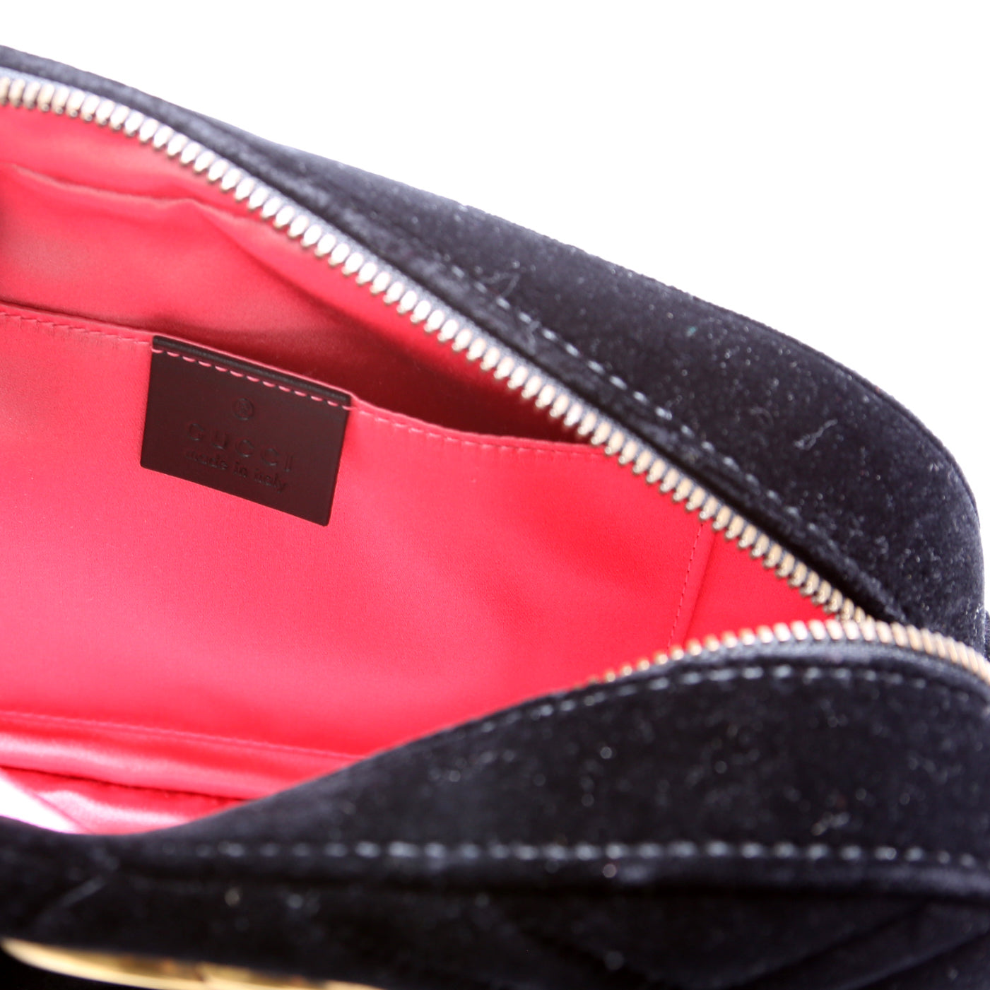 This Gucci Marmont Camera Small is d 100% . The exterior is in the classic Gucci Marmont velvet.