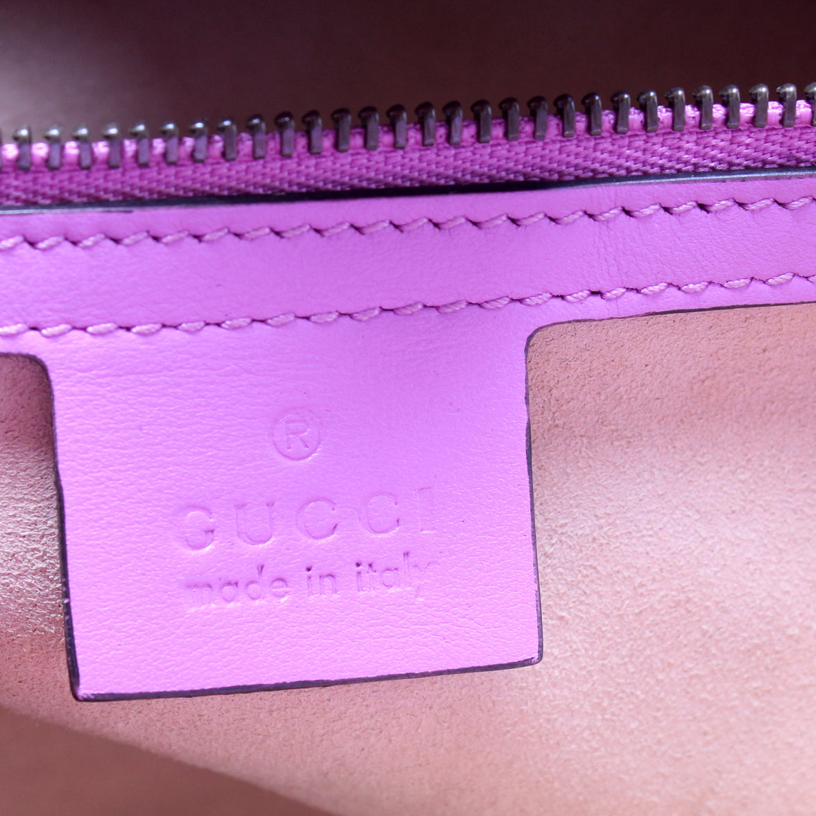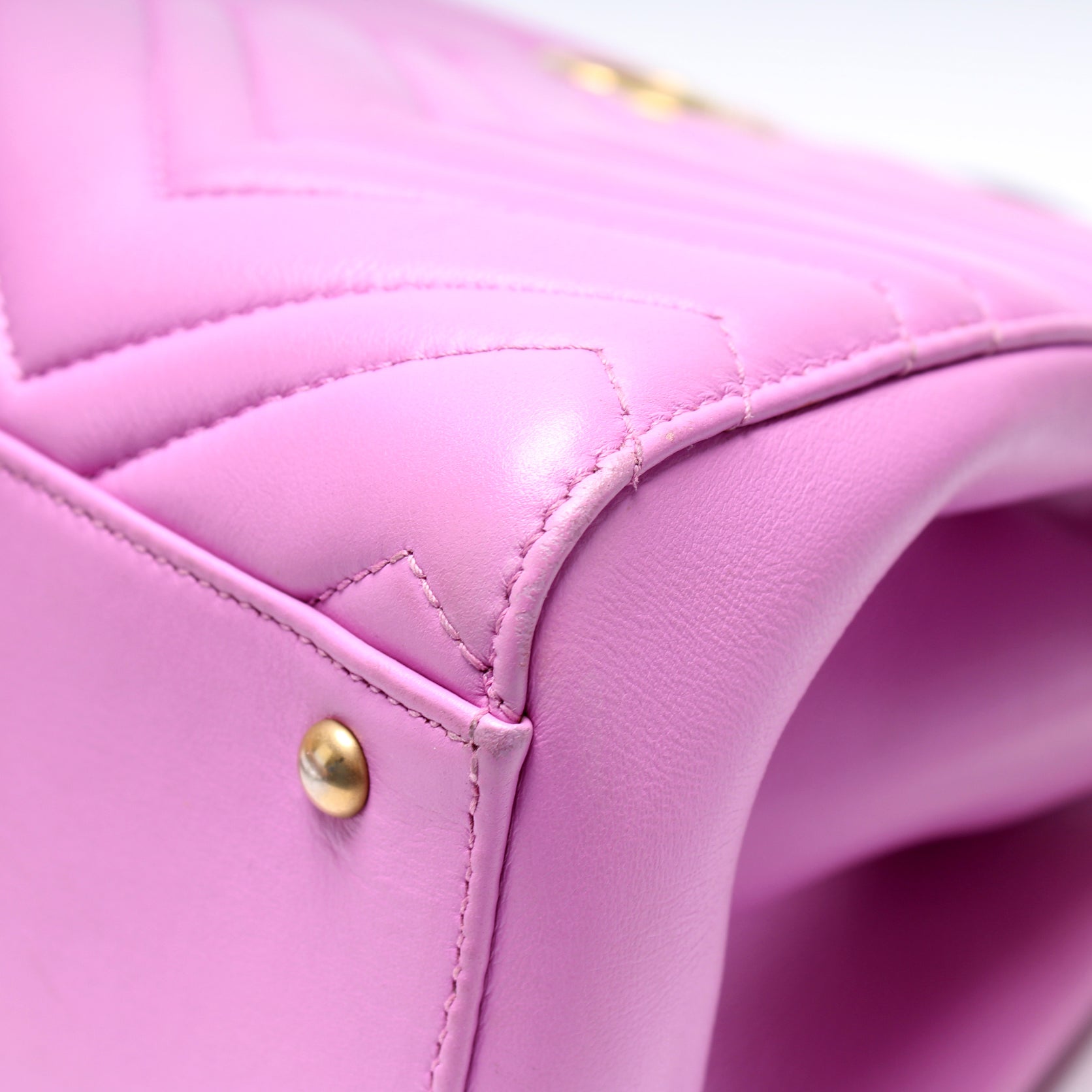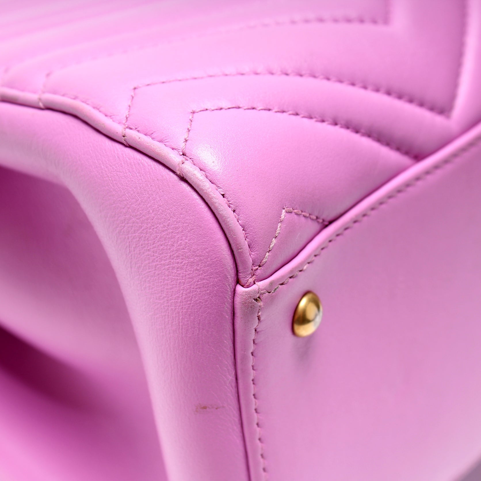 This Gucci Marmont Top Handleis eye catching bag. The exterior is in the classic Gucci Marmont leather.