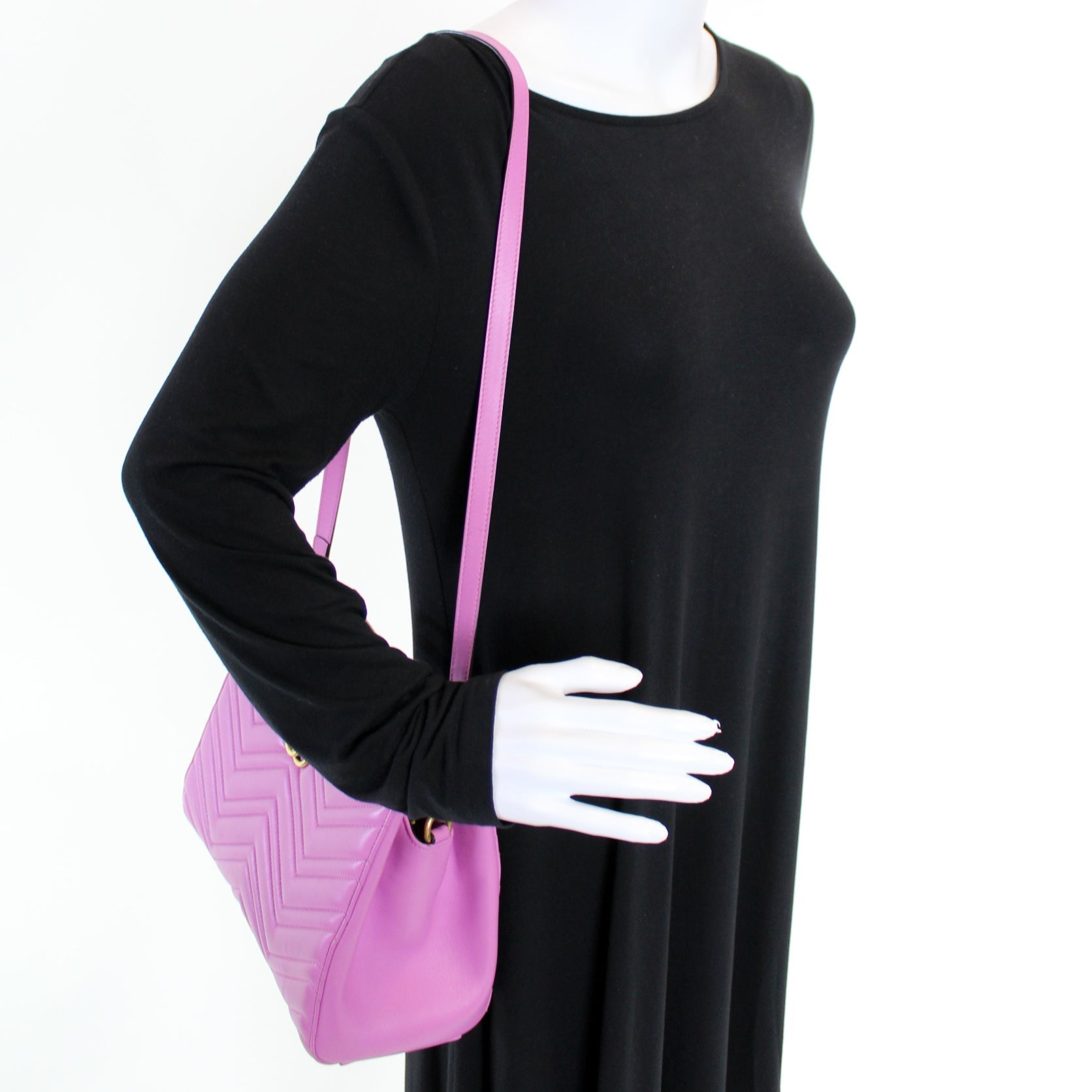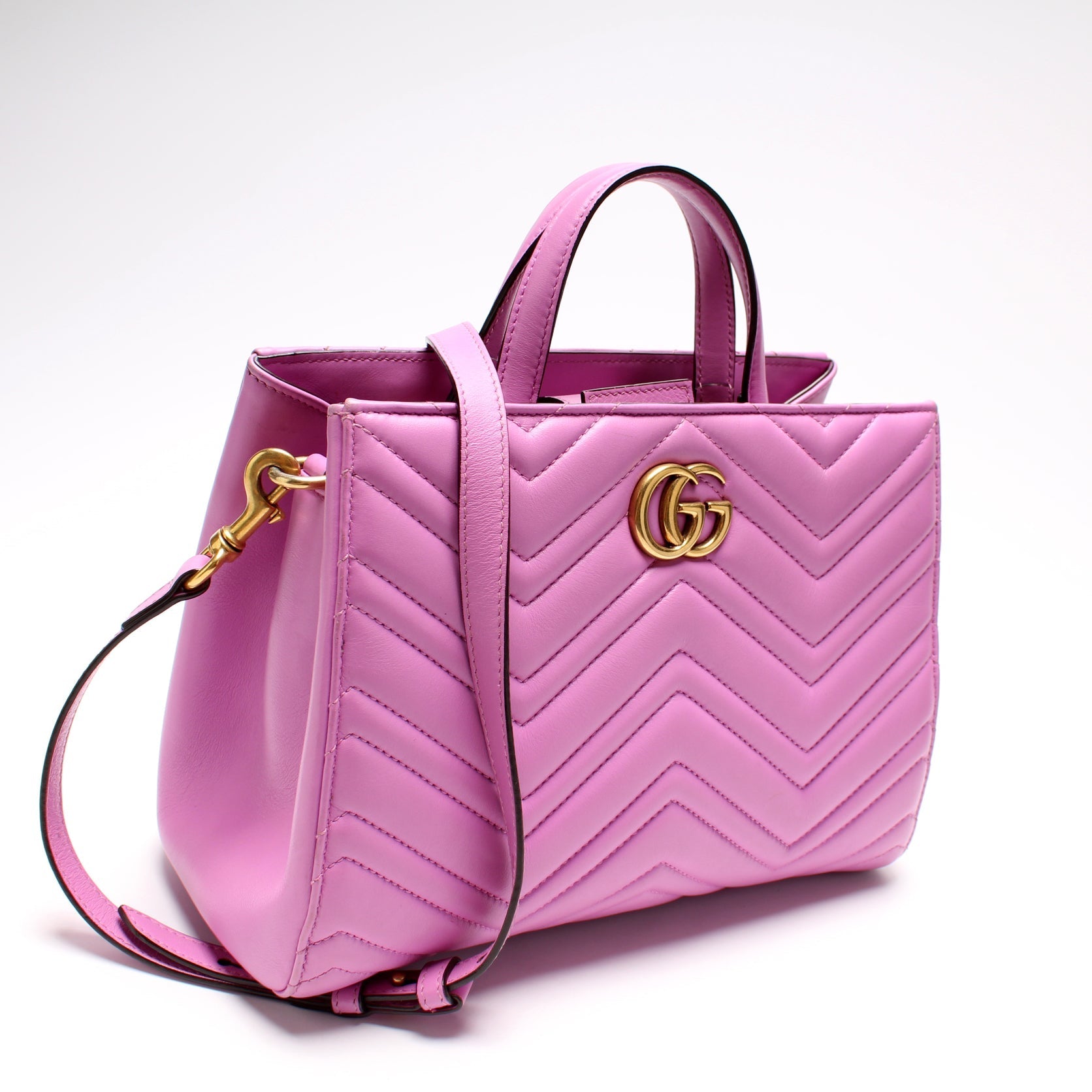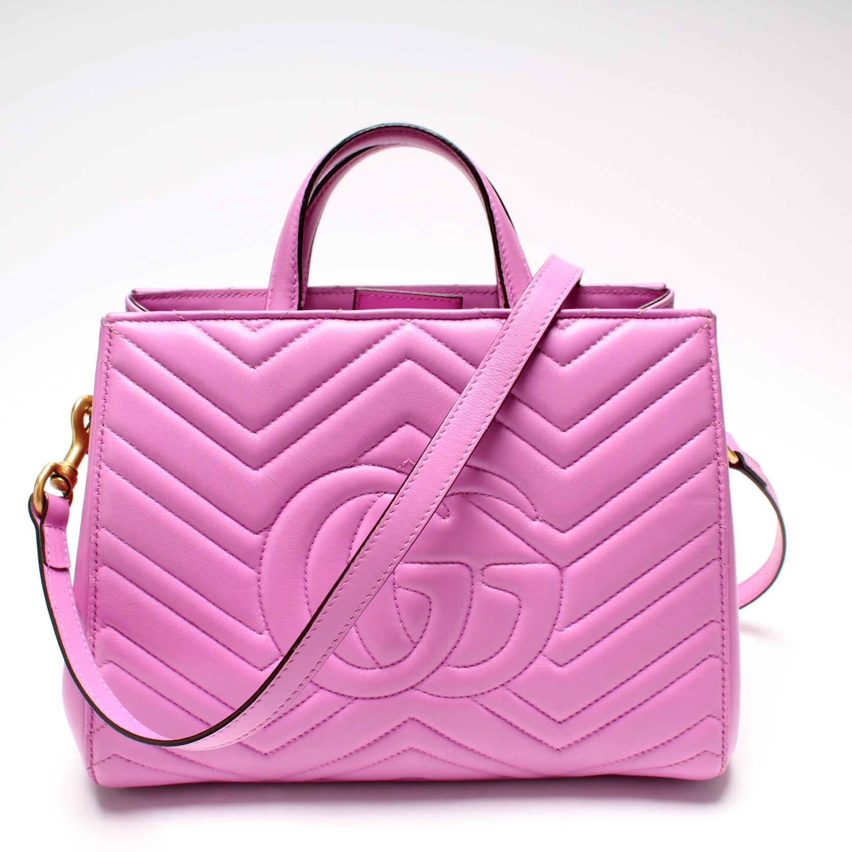 This Gucci Marmont Top Handleis eye catching bag. The exterior is in the classic Gucci Marmont leather.