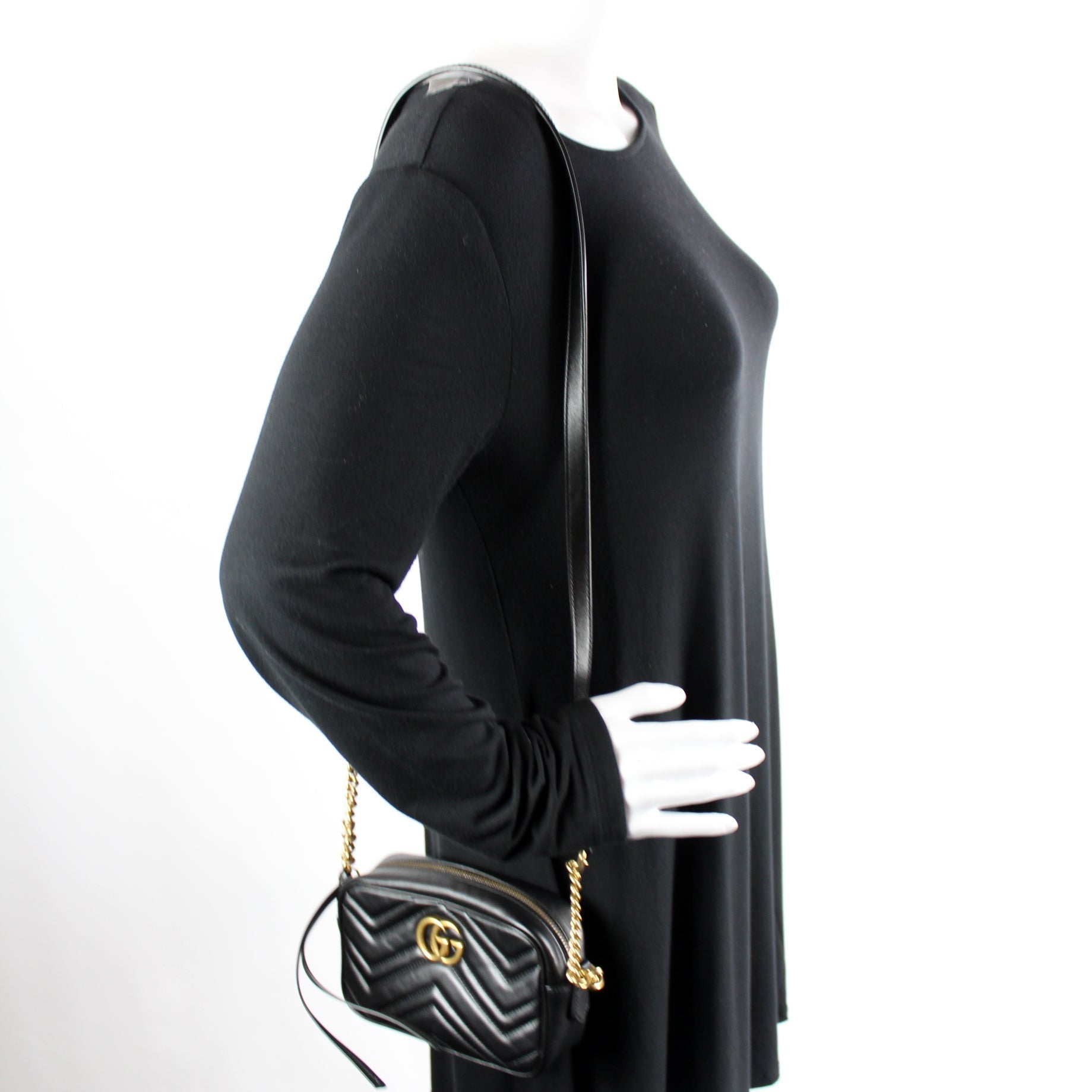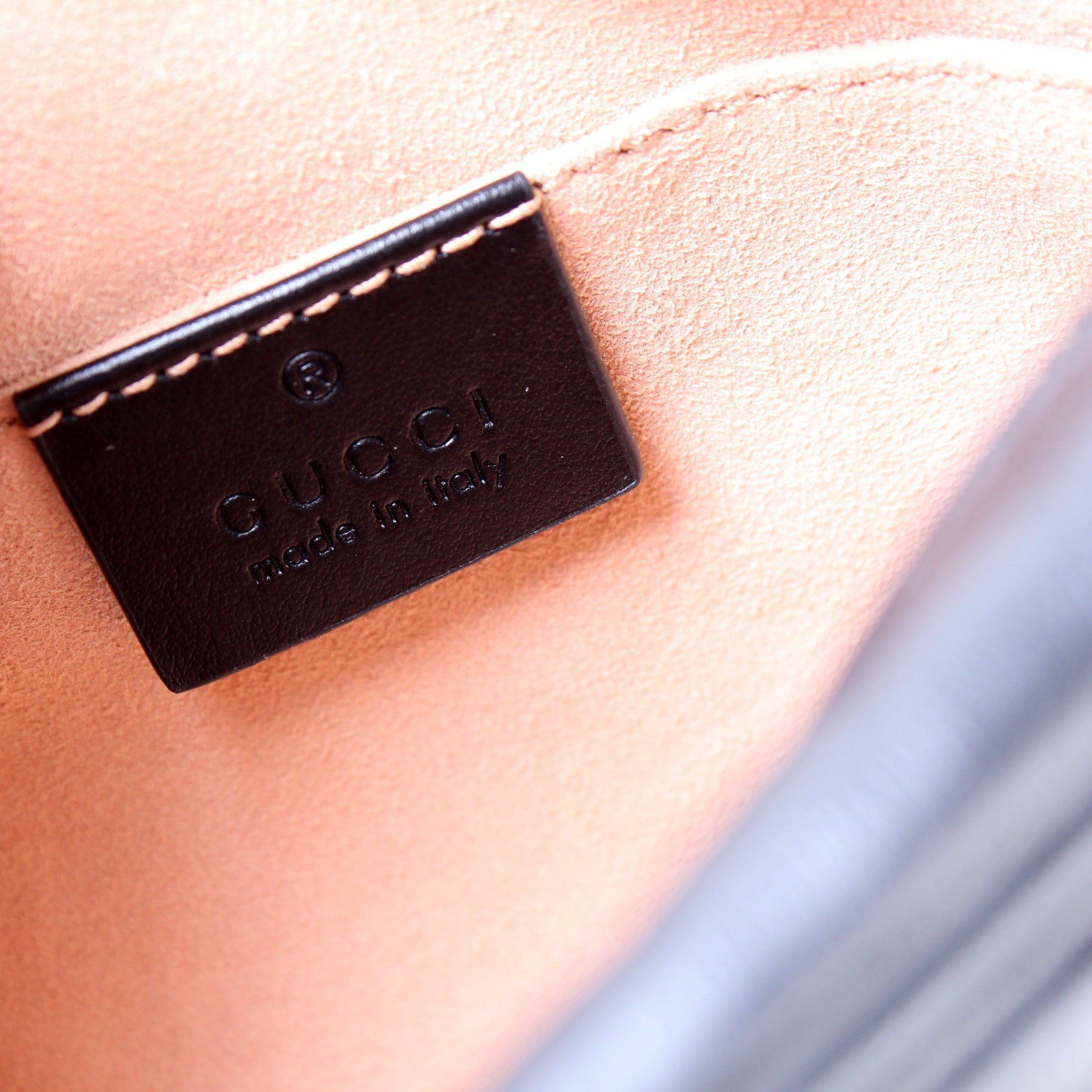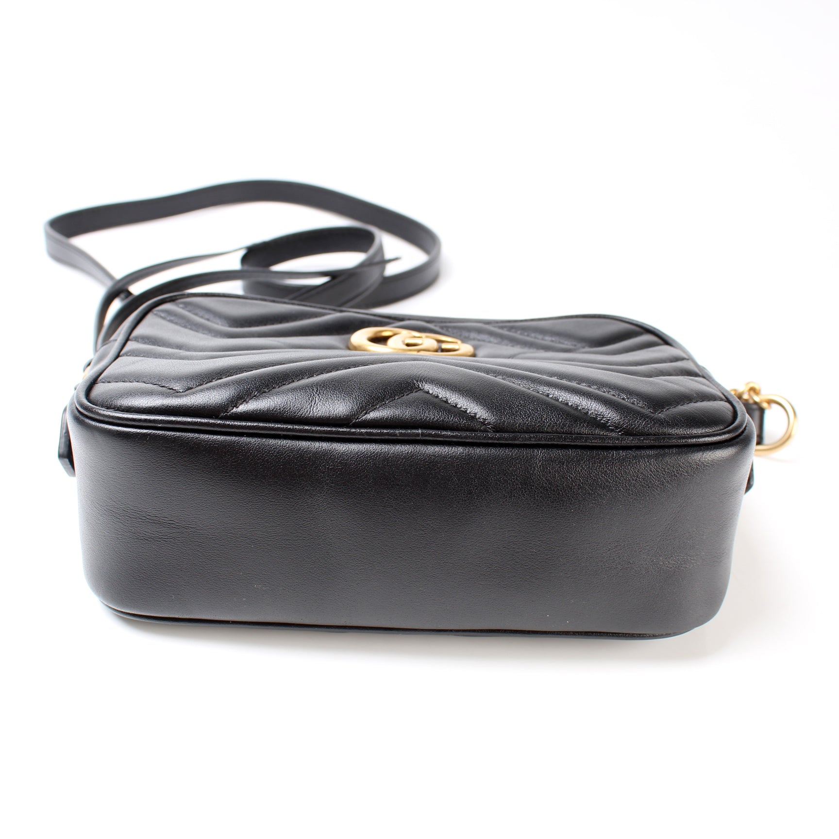 This GG Marmont Mini Camera Bagis eye catching bag. The exterior is in the classic Gucci Marmont leather.