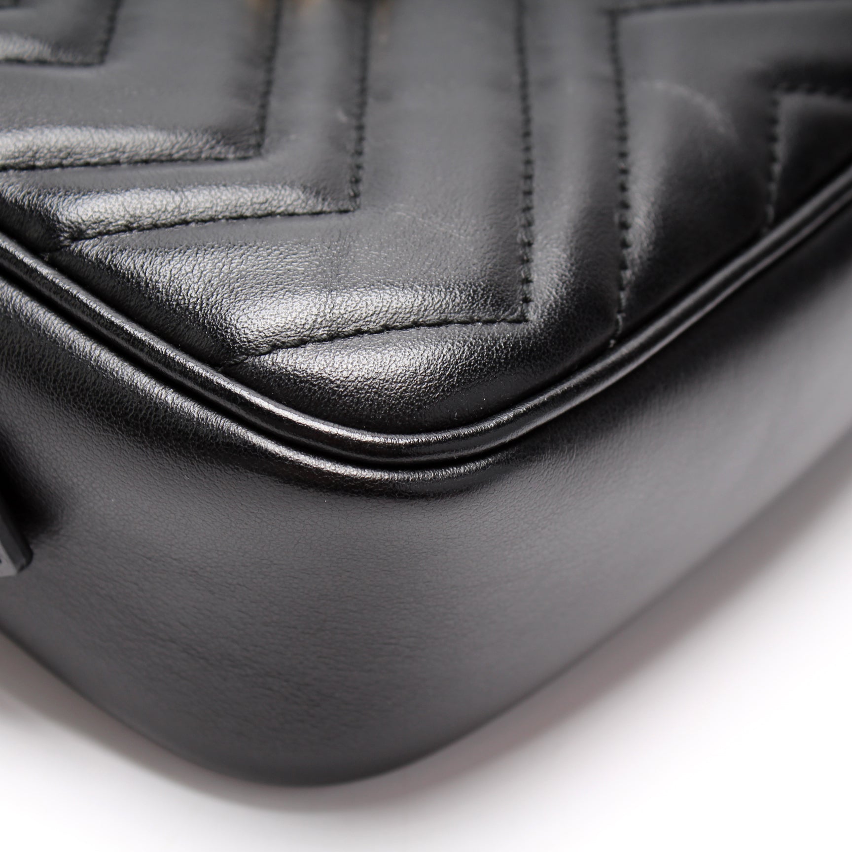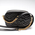 This GG Marmont Mini Camera Bagis eye catching bag. The exterior is in the classic Gucci Marmont leather.