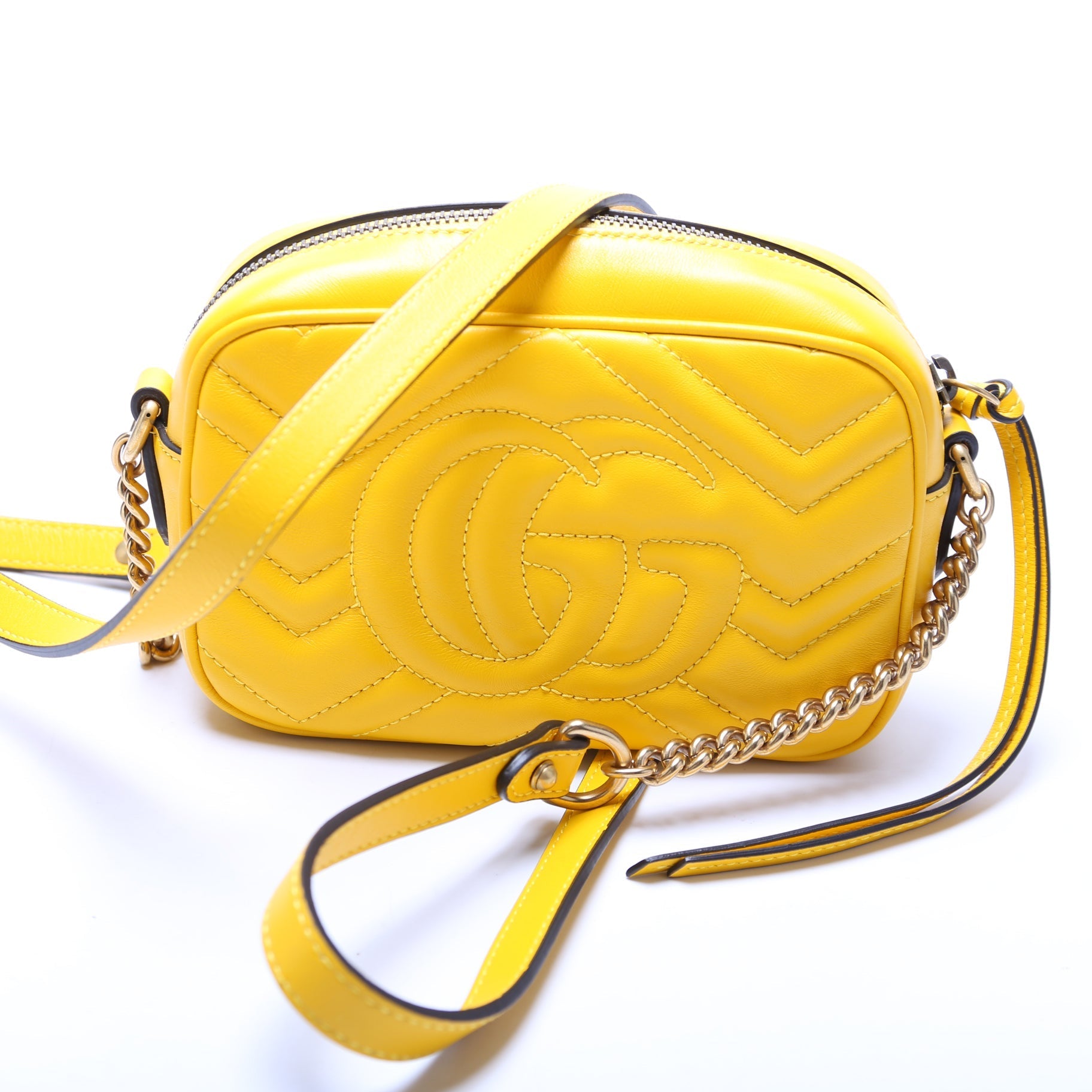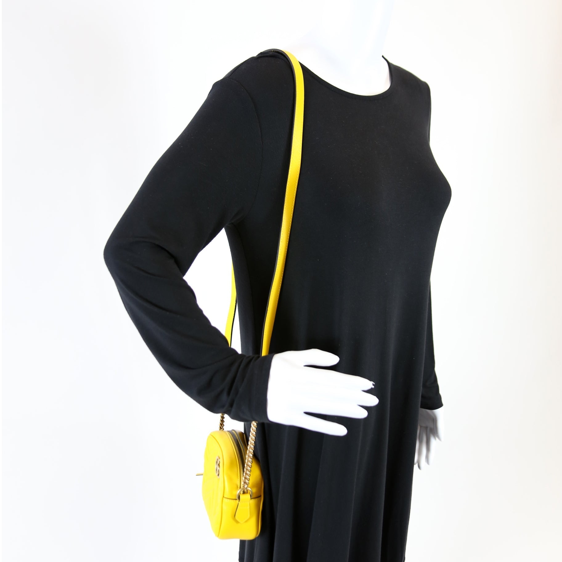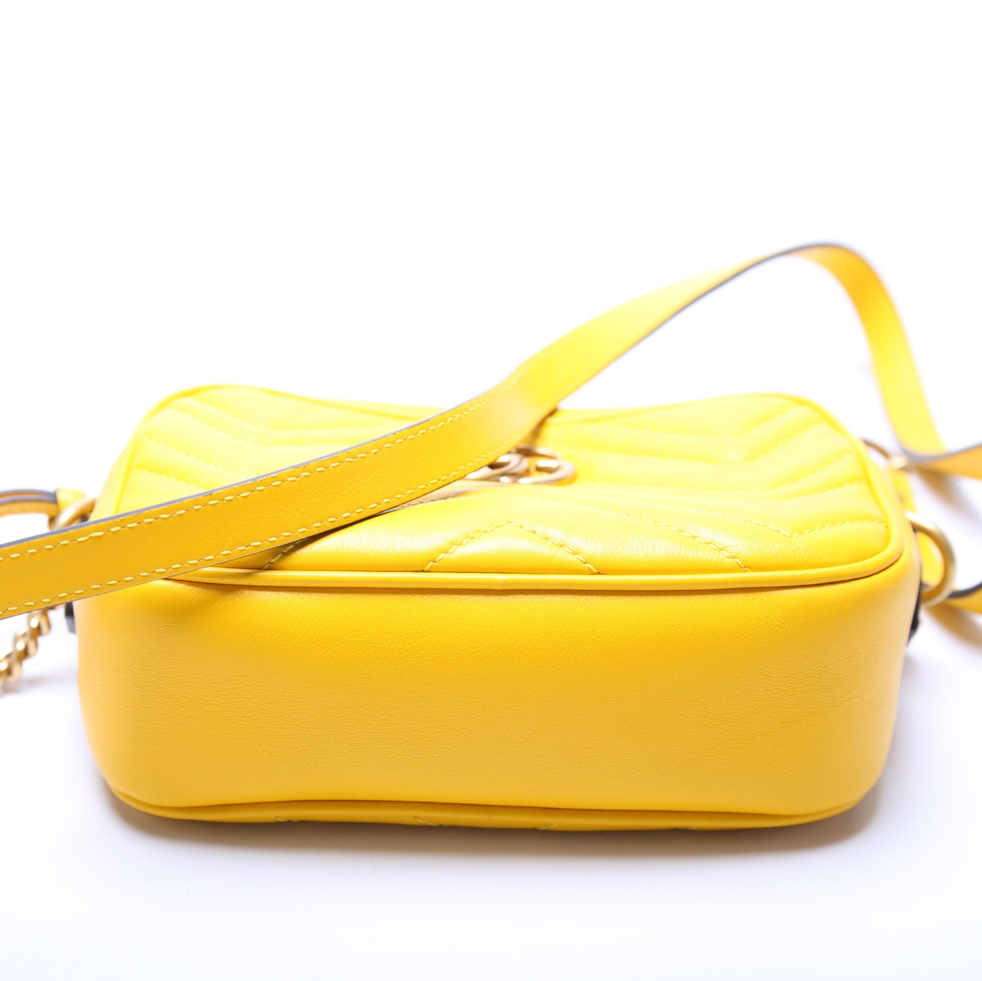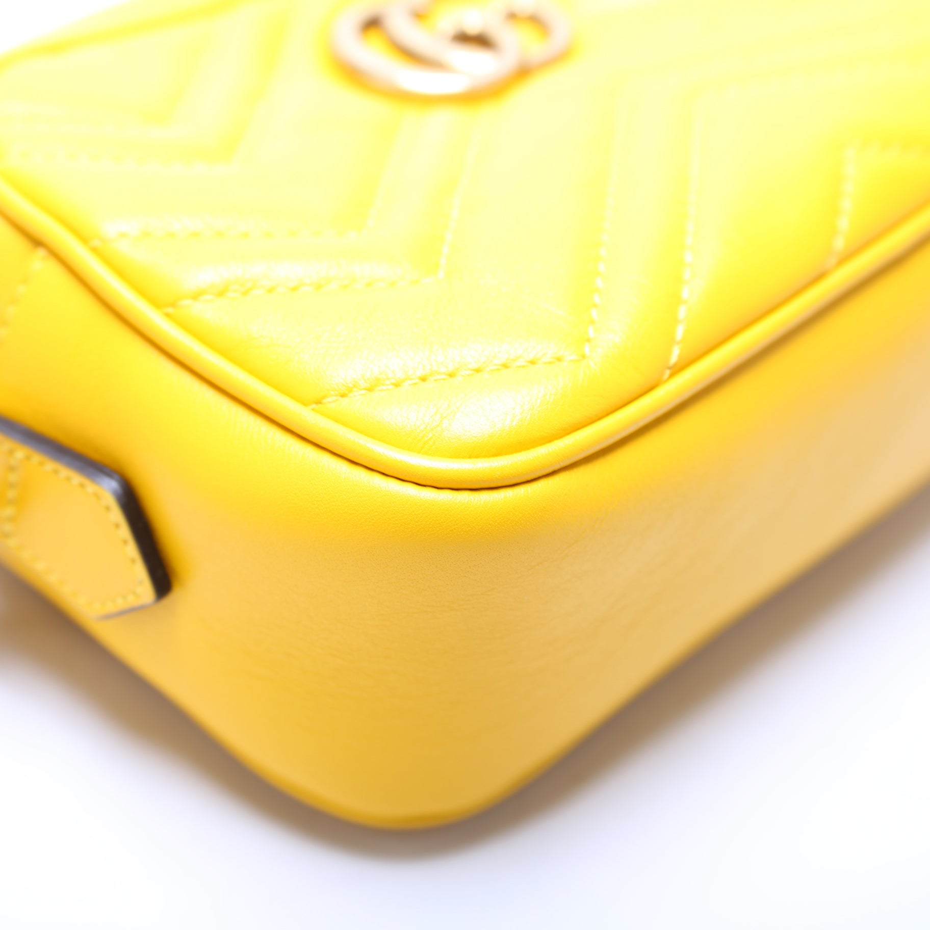 This GG Marmont Mini Camera Bagis eye catching bag. The exterior is in the classic Gucci Marmont leather.