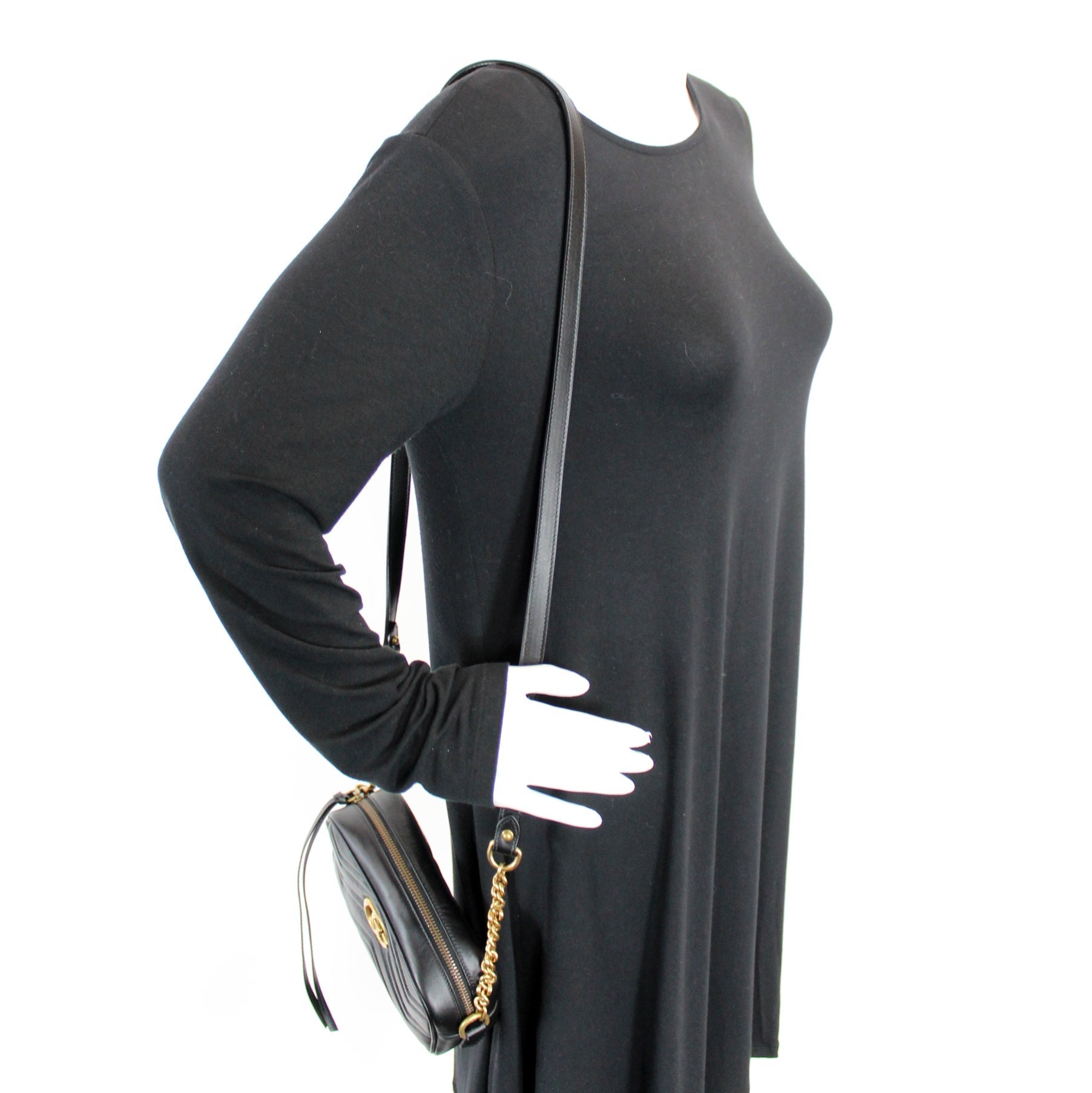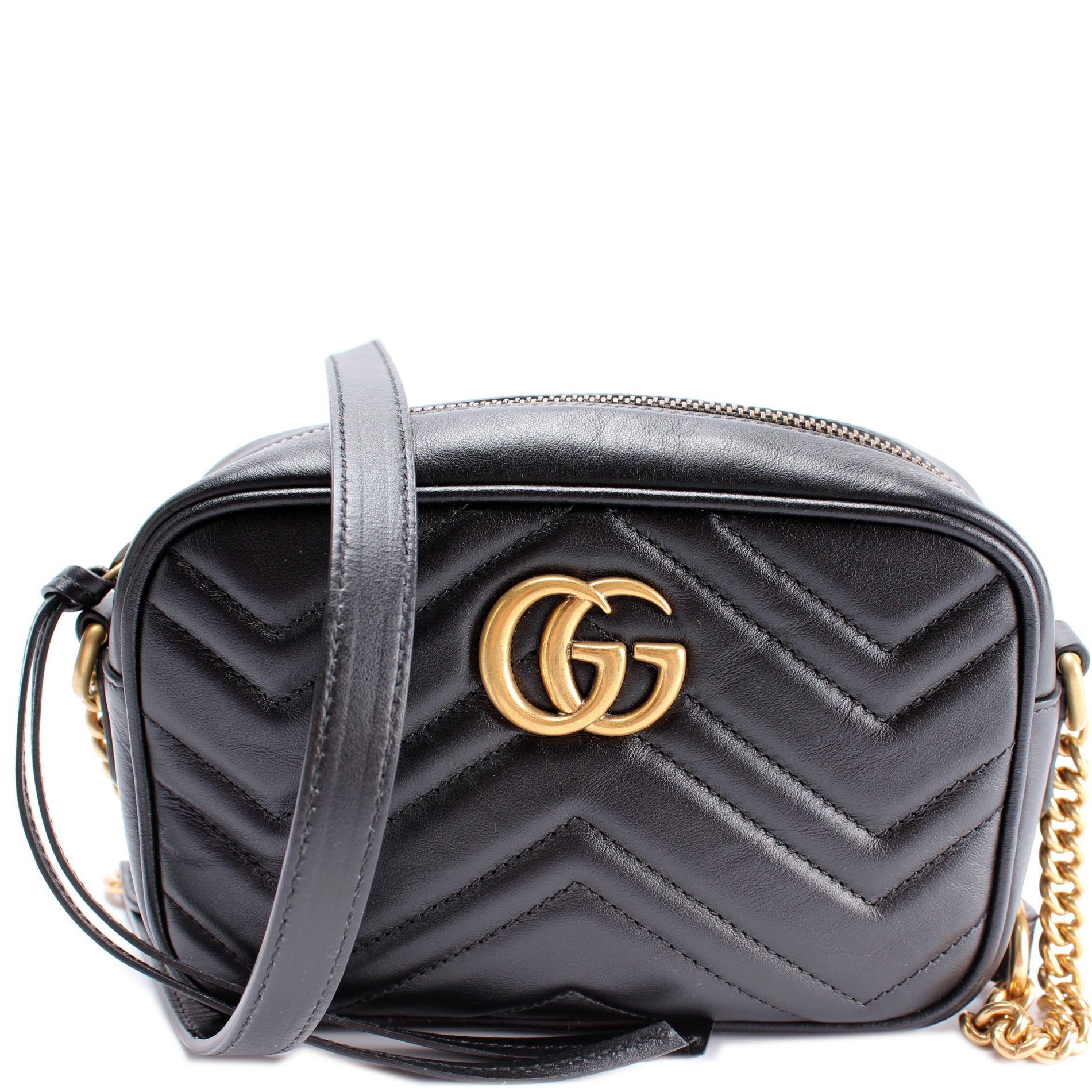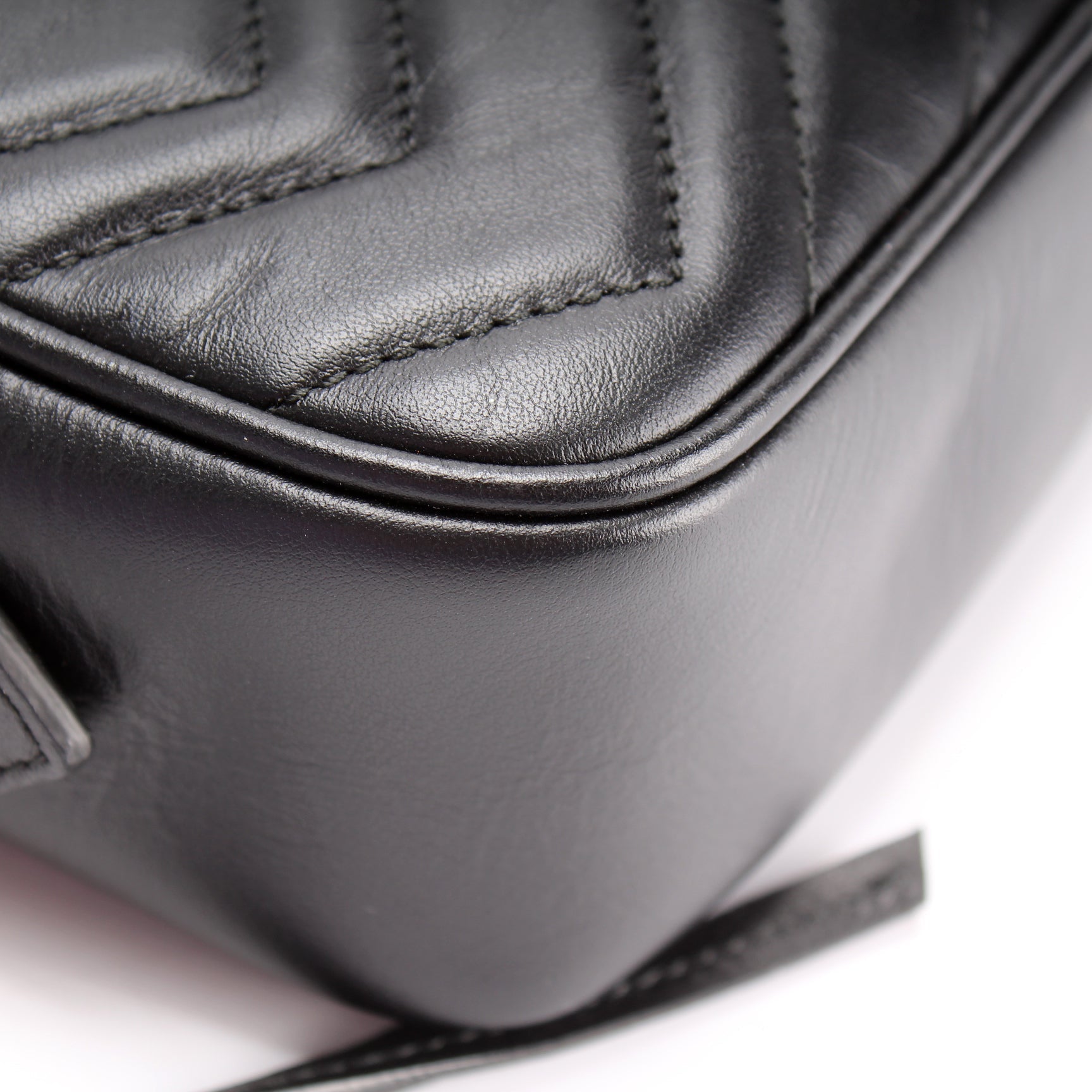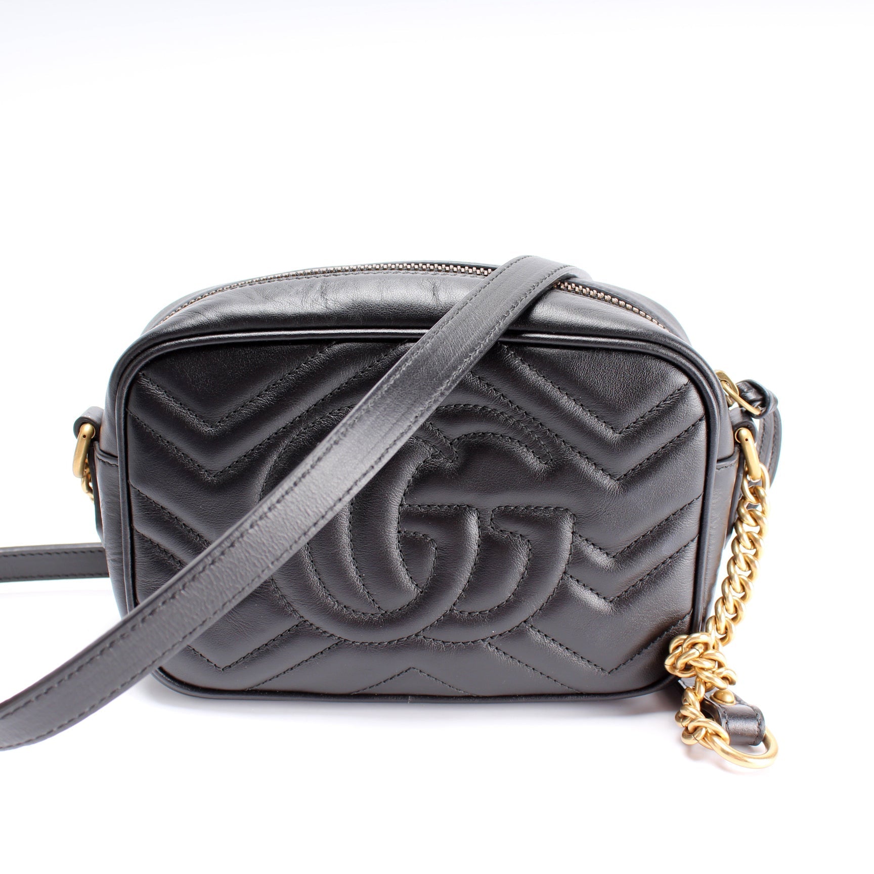 This GG Marmont Mini Camera Bagis eye catching bag. The exterior is in the classic Gucci Marmont leather.