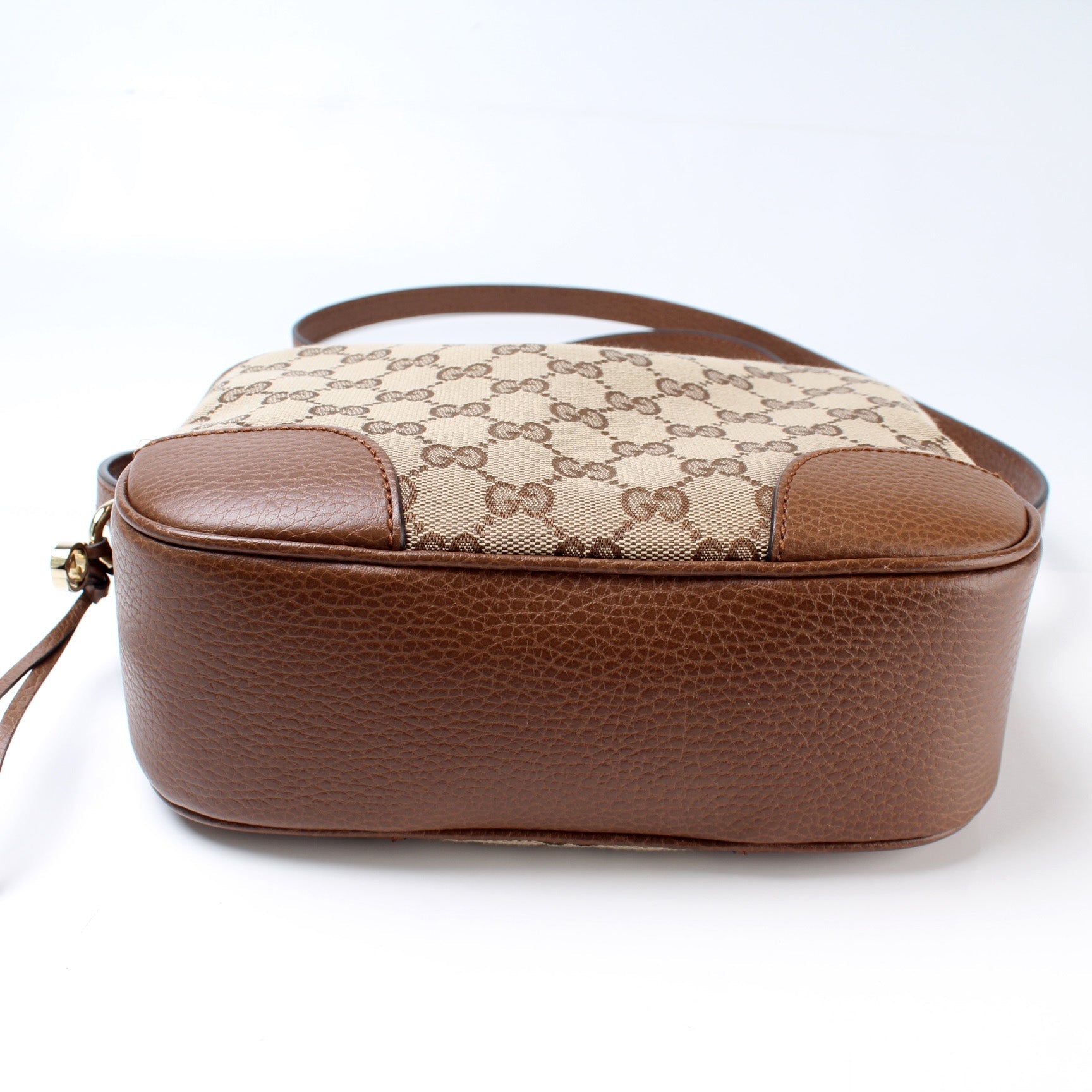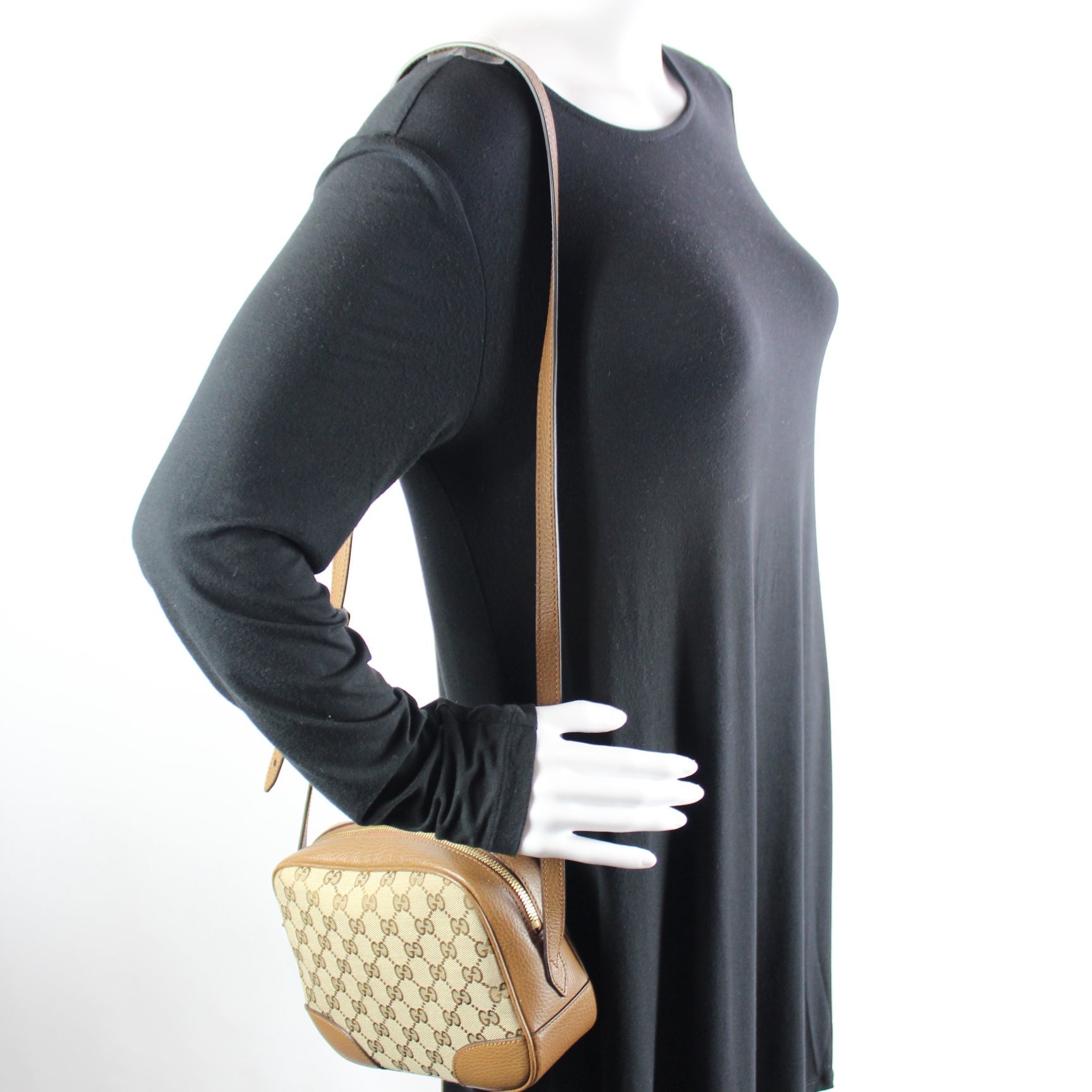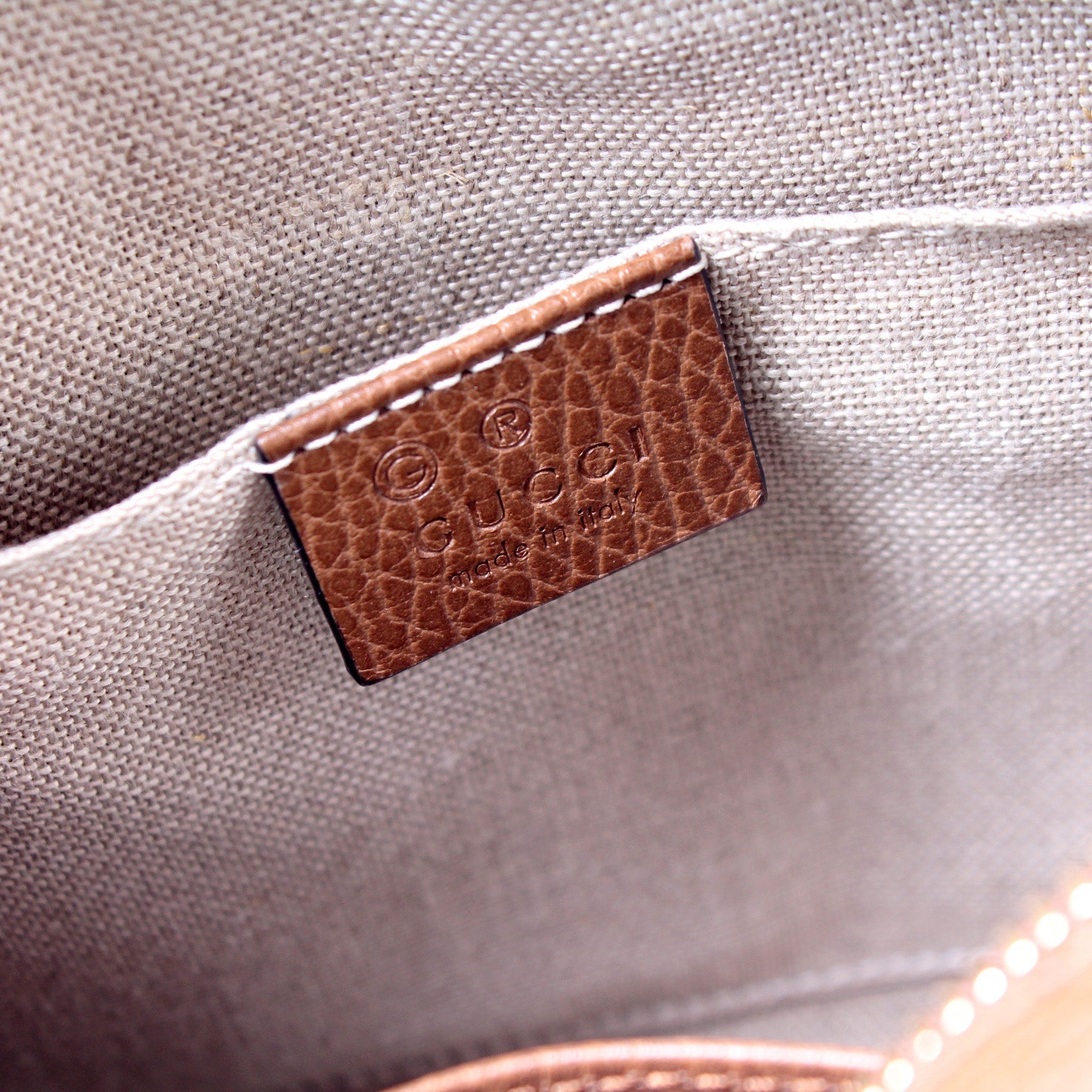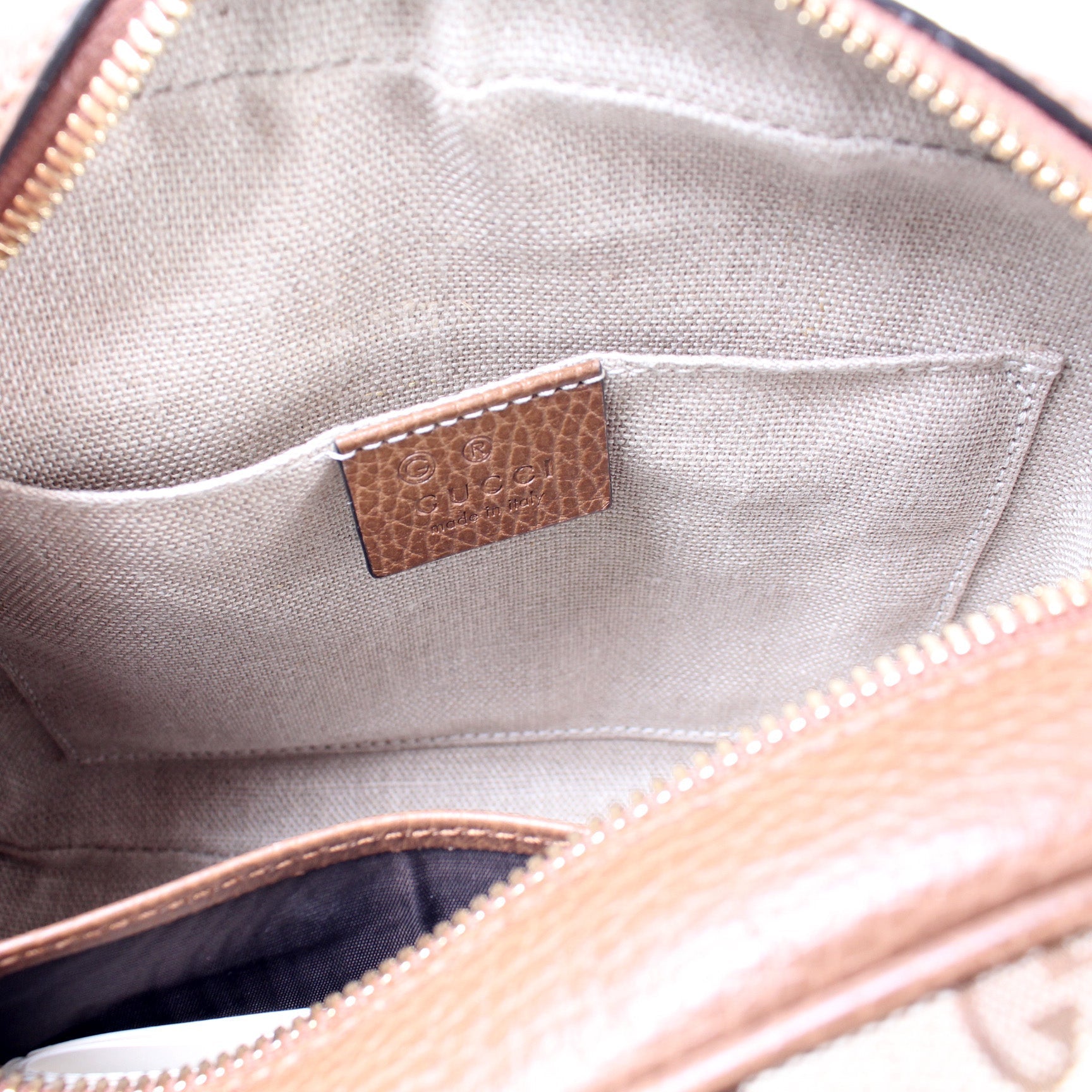 This Gucci Bree GG Canvas Crossbodyis eye catching bag. The exterior is in the classic Gucci GG canvas.