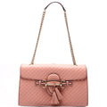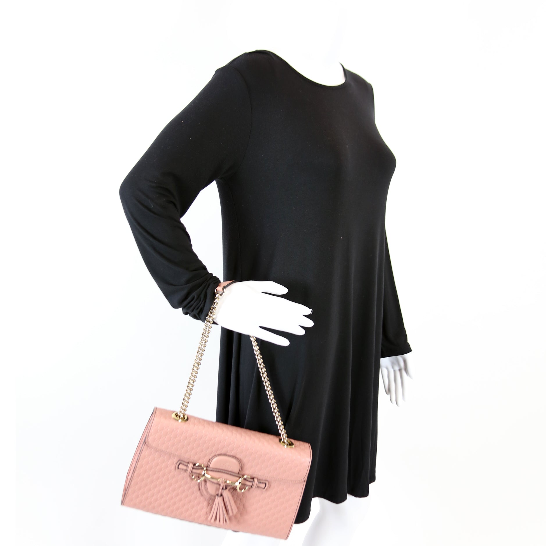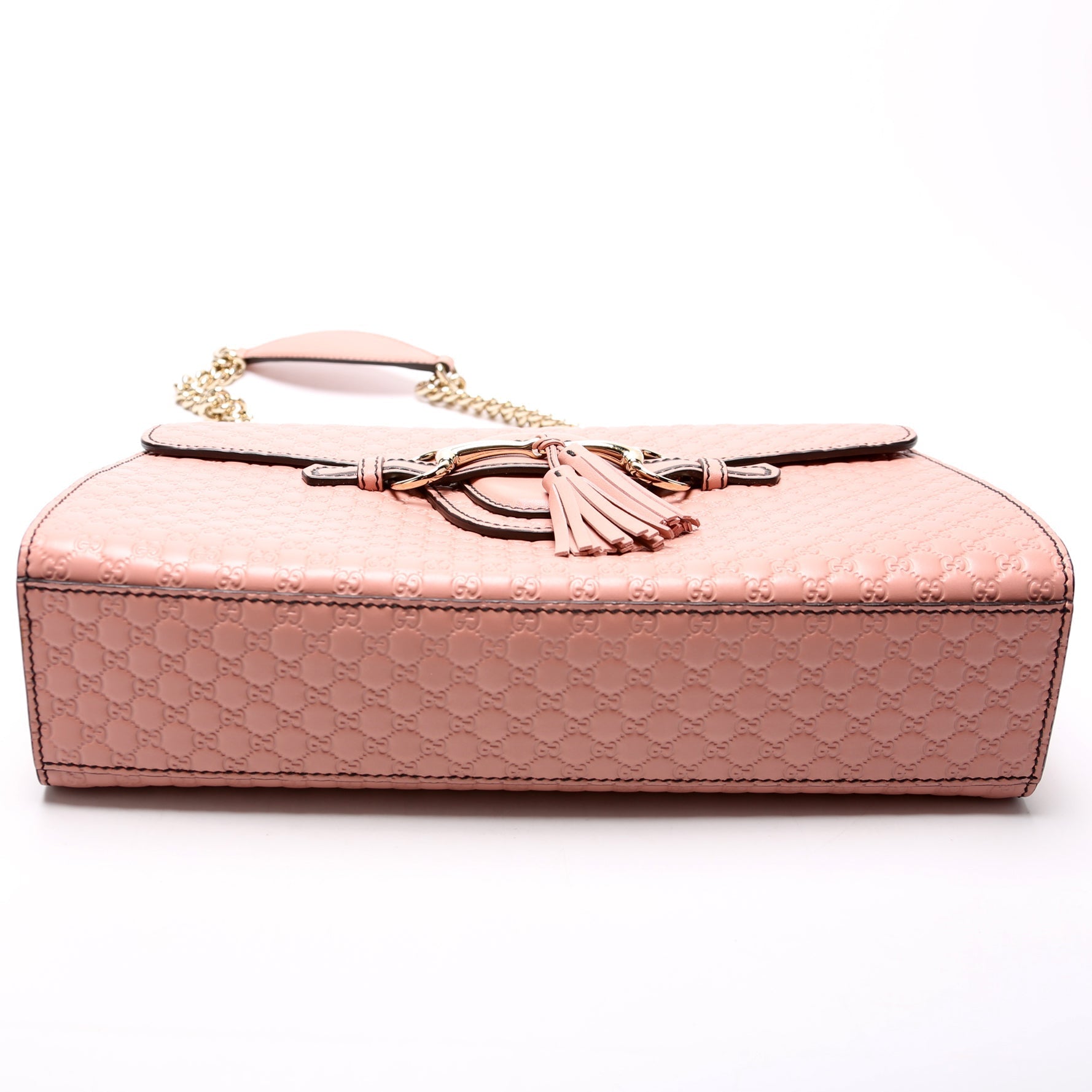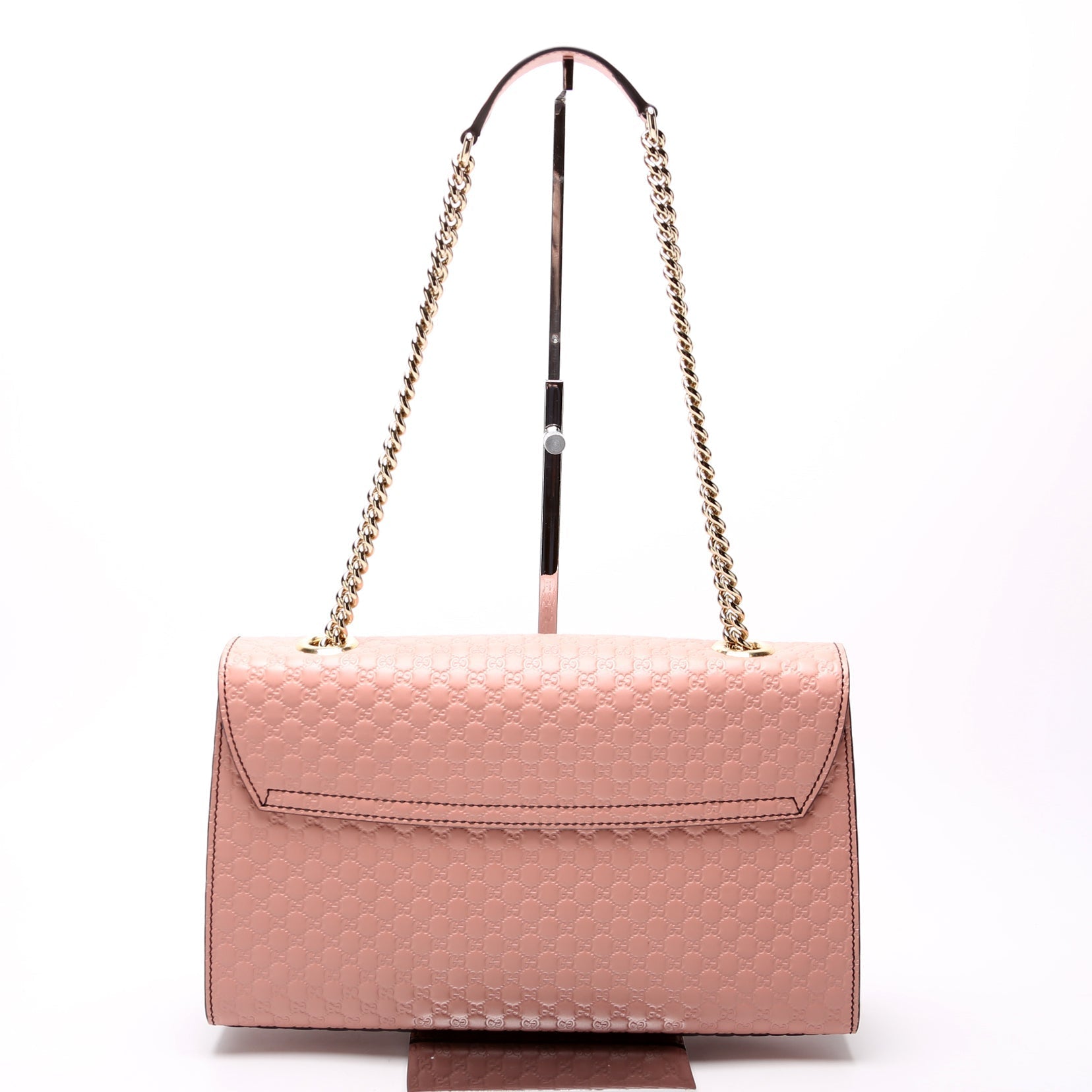 This Gucci Emily Micro Medium Chain Bagis eye catching bag. The exterior is in the classic Gucci Micro Guccissima leather.