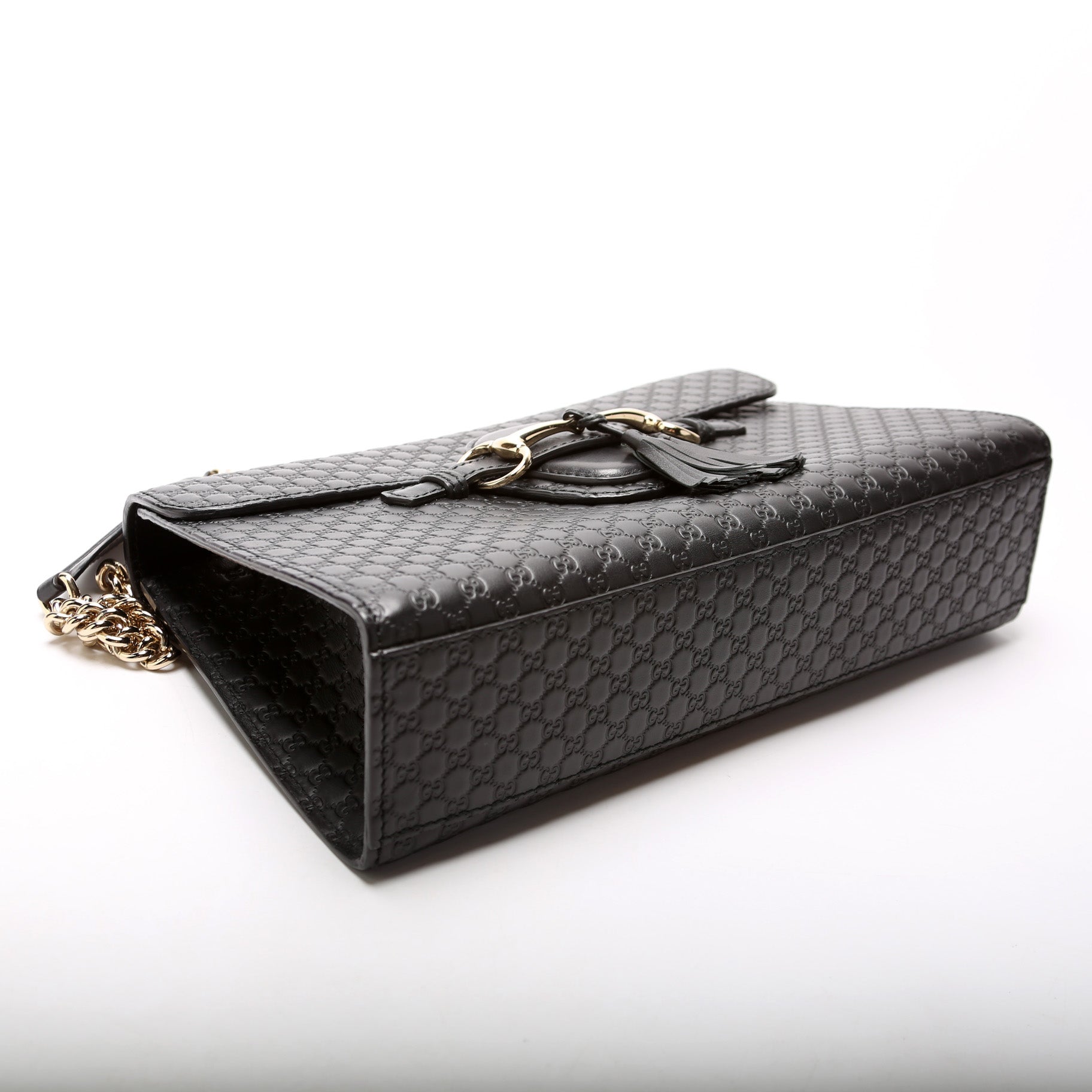 This Gucci Emily Micro Medium Chain Bagis eye catching bag. The exterior is in the classic Gucci Micro Guccissima leather.
