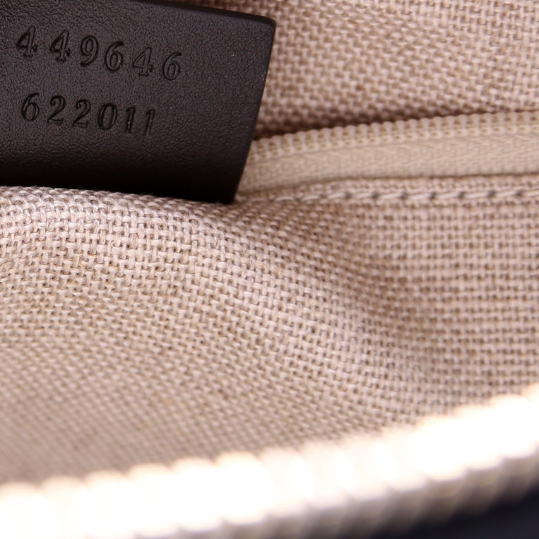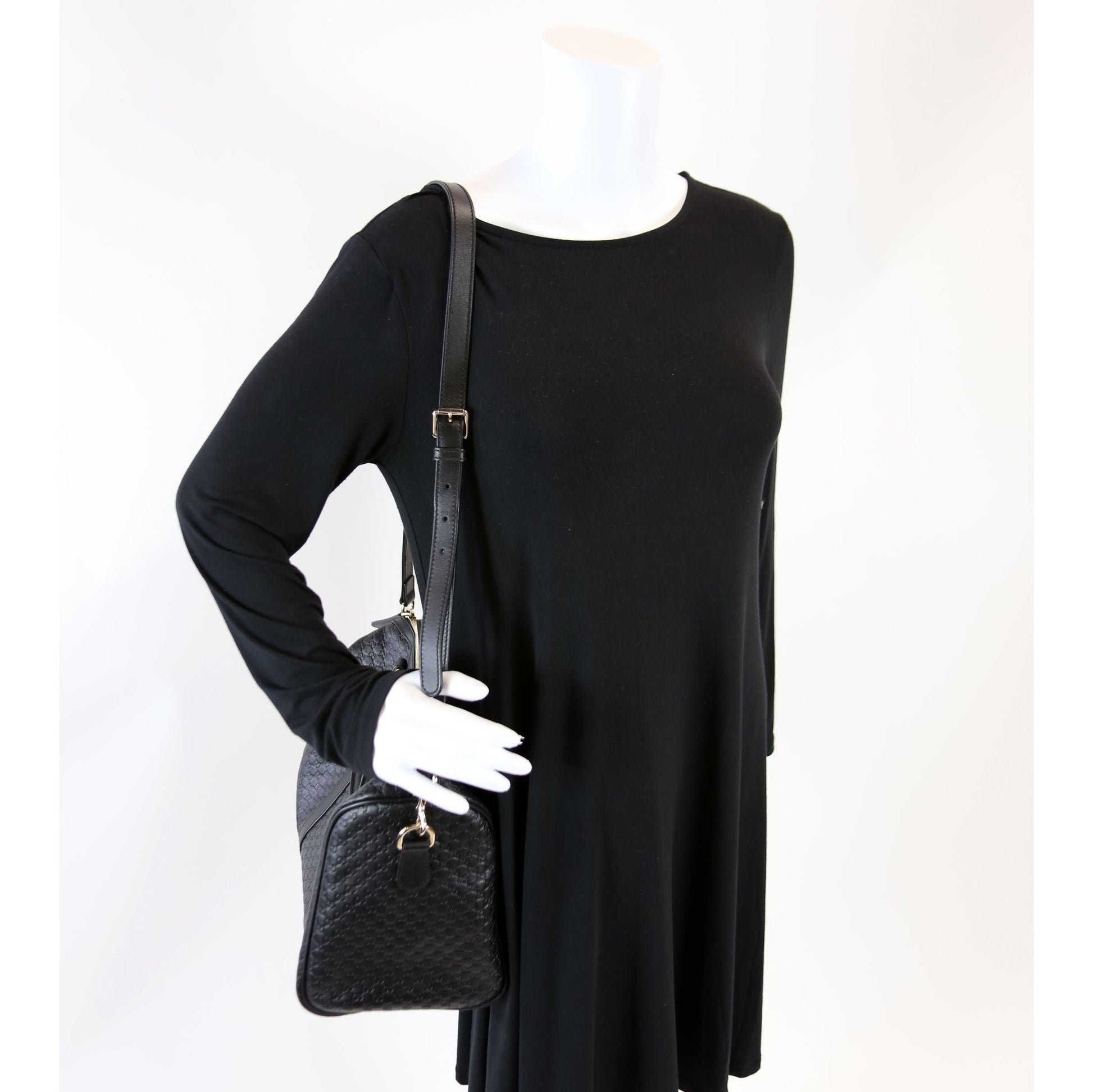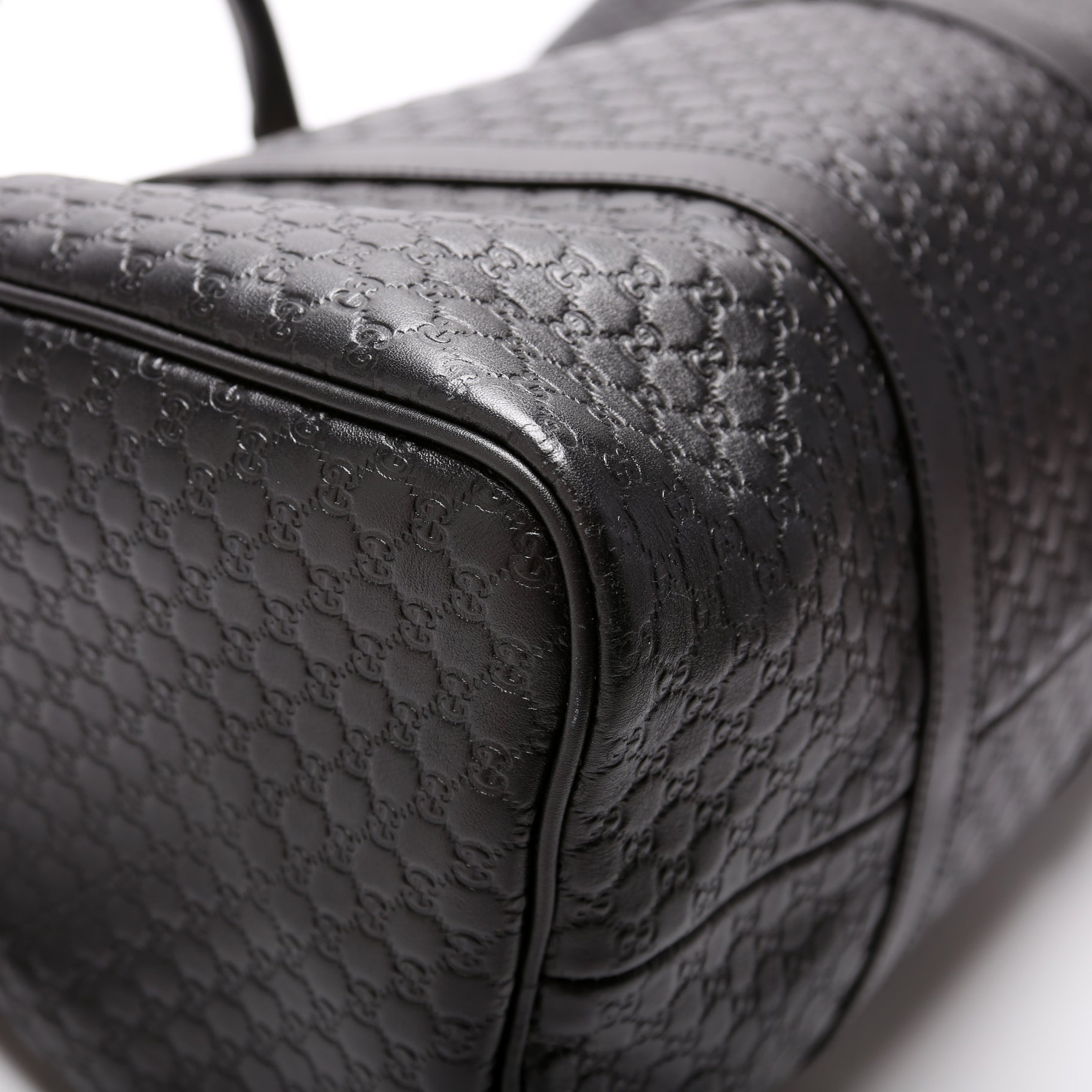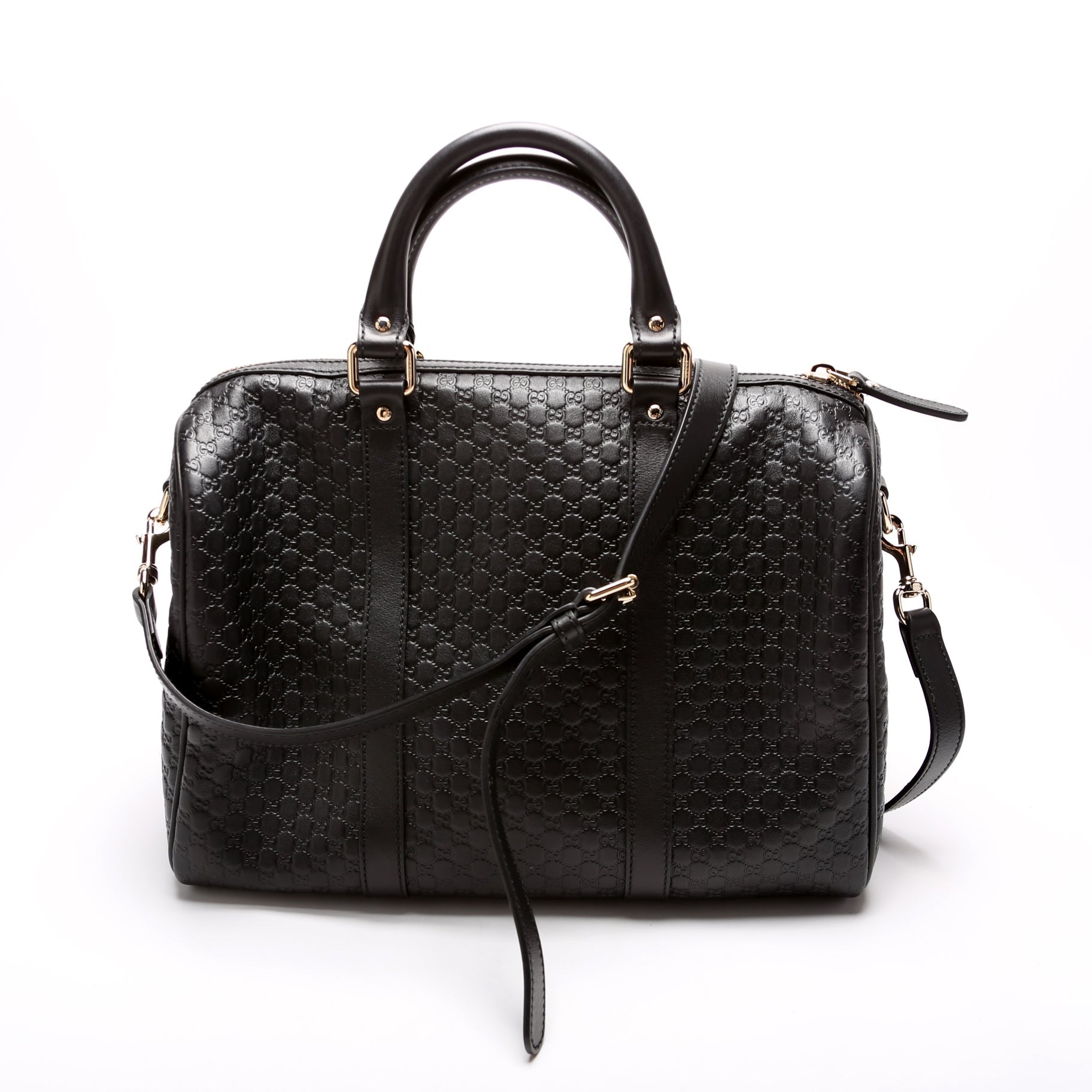 This Gucci Boston Bag With Strapis eye catching bag. The exterior is in the classic Gucci Micro Guccissima leather.