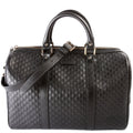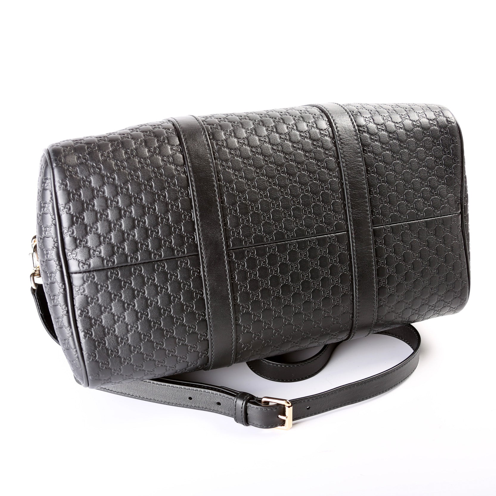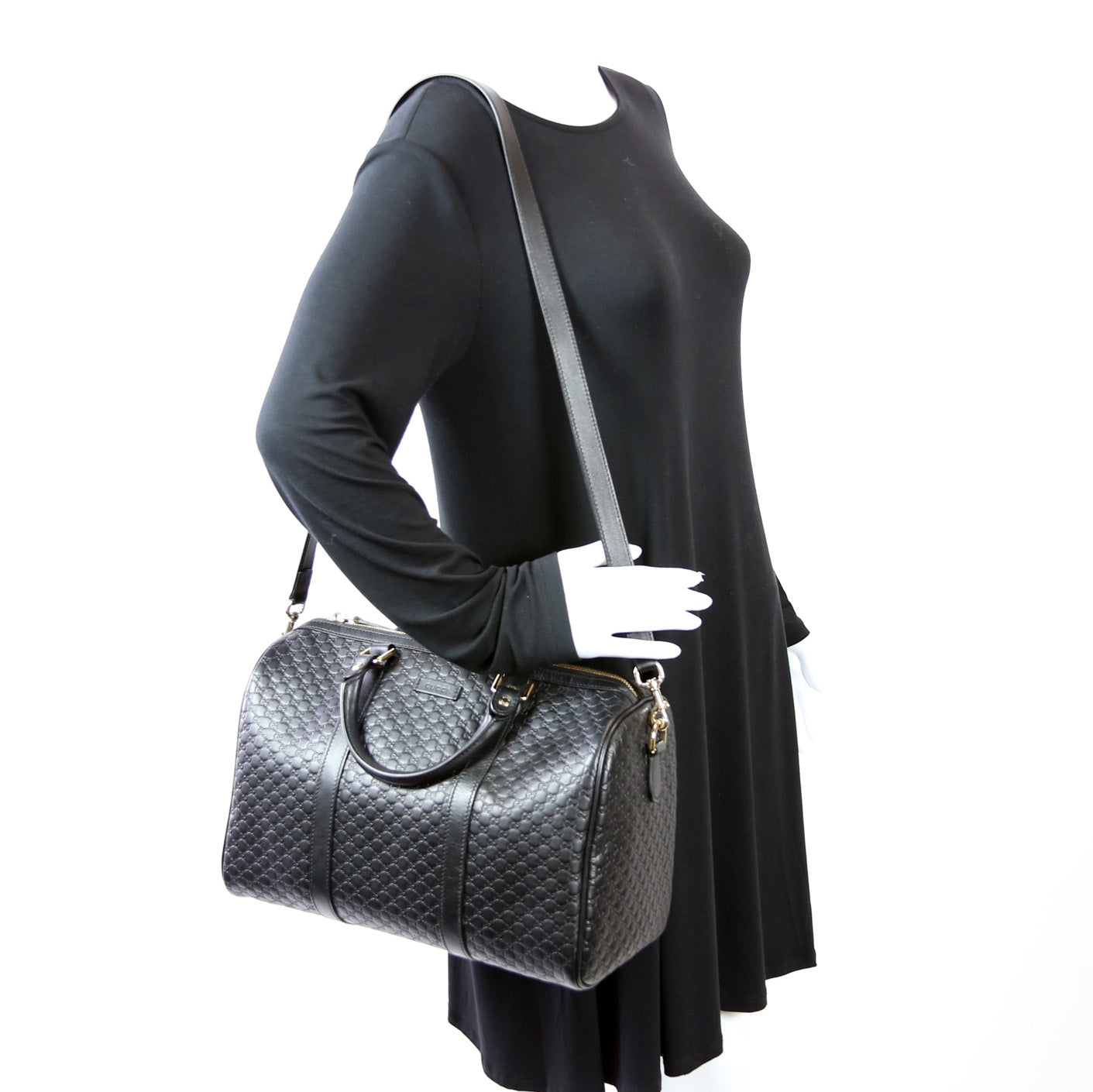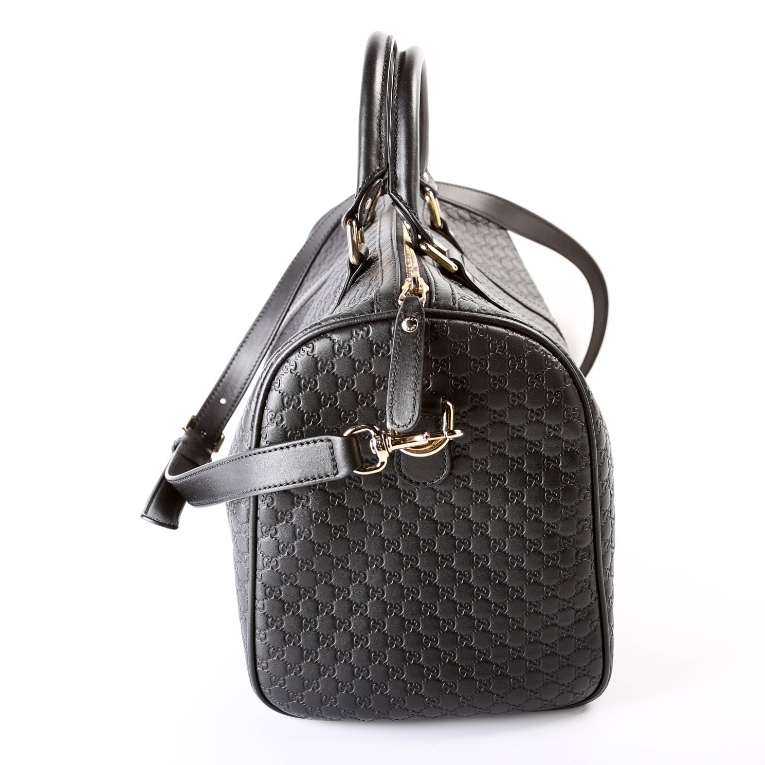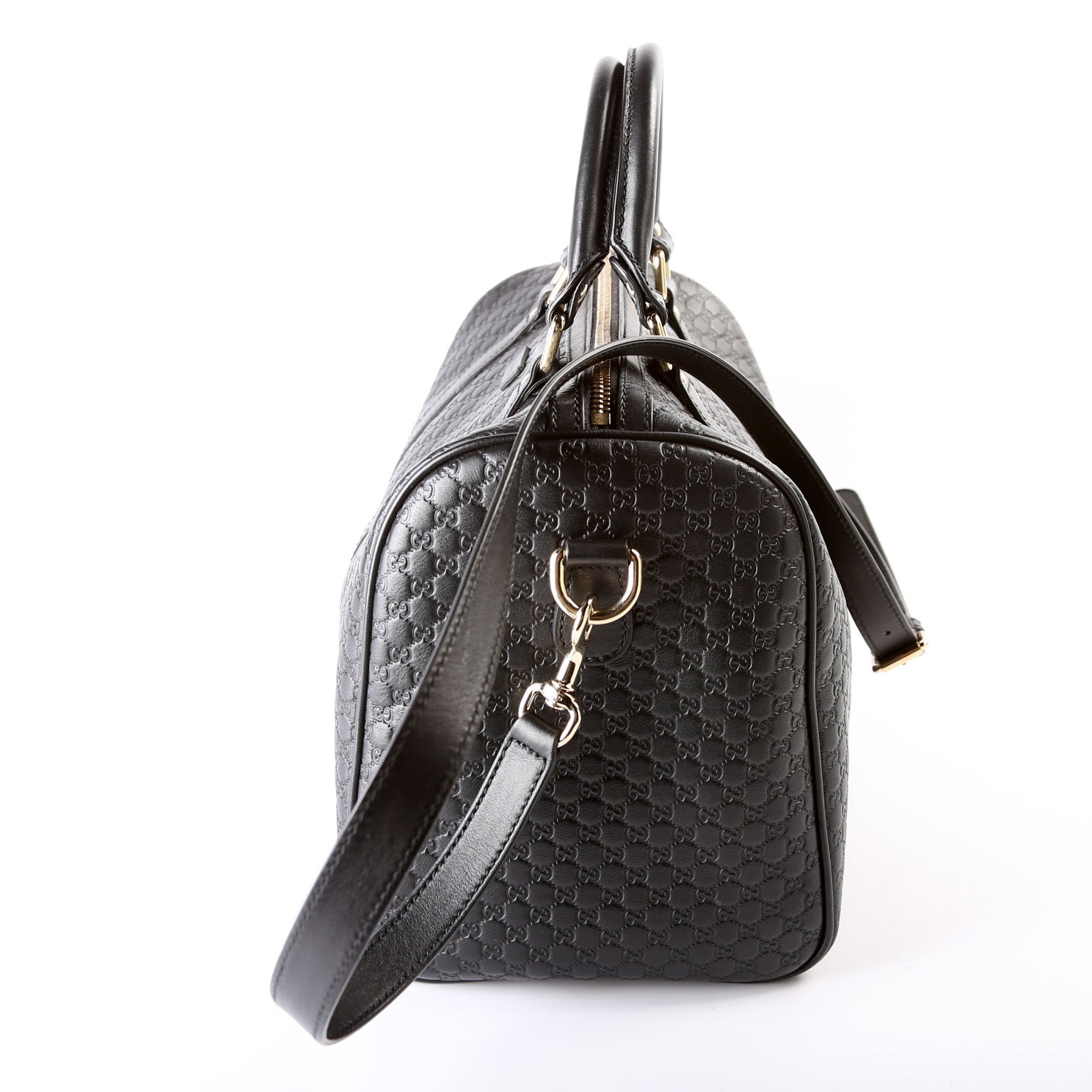 This Gucci Boston Bag With Strapis eye catching bag. The exterior is in the classic Gucci Micro Guccissima leather.