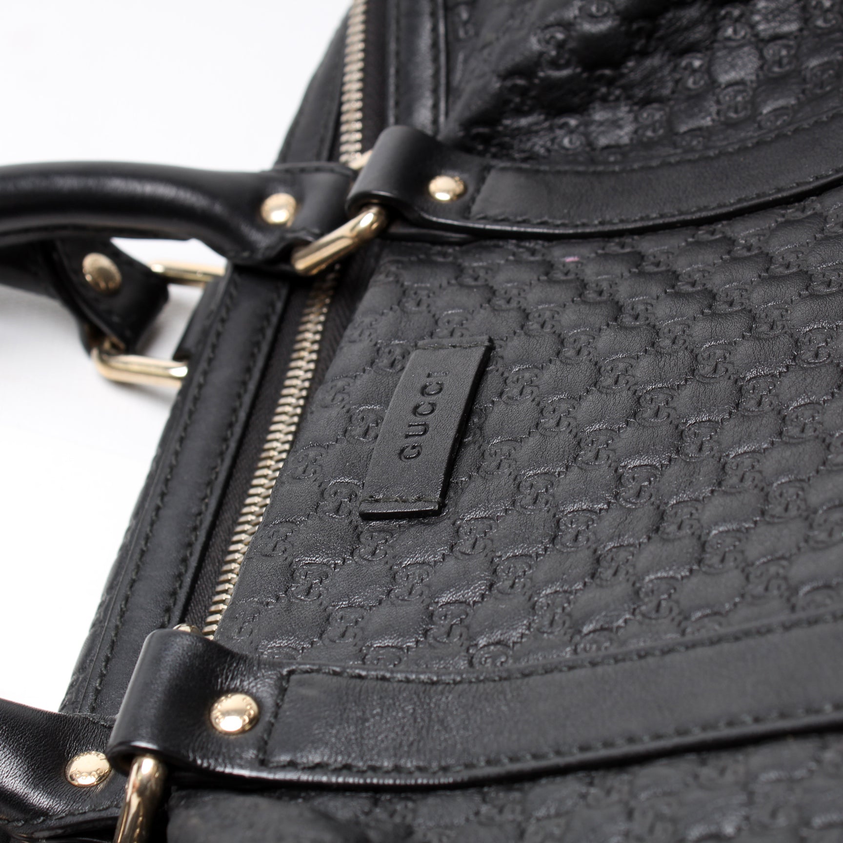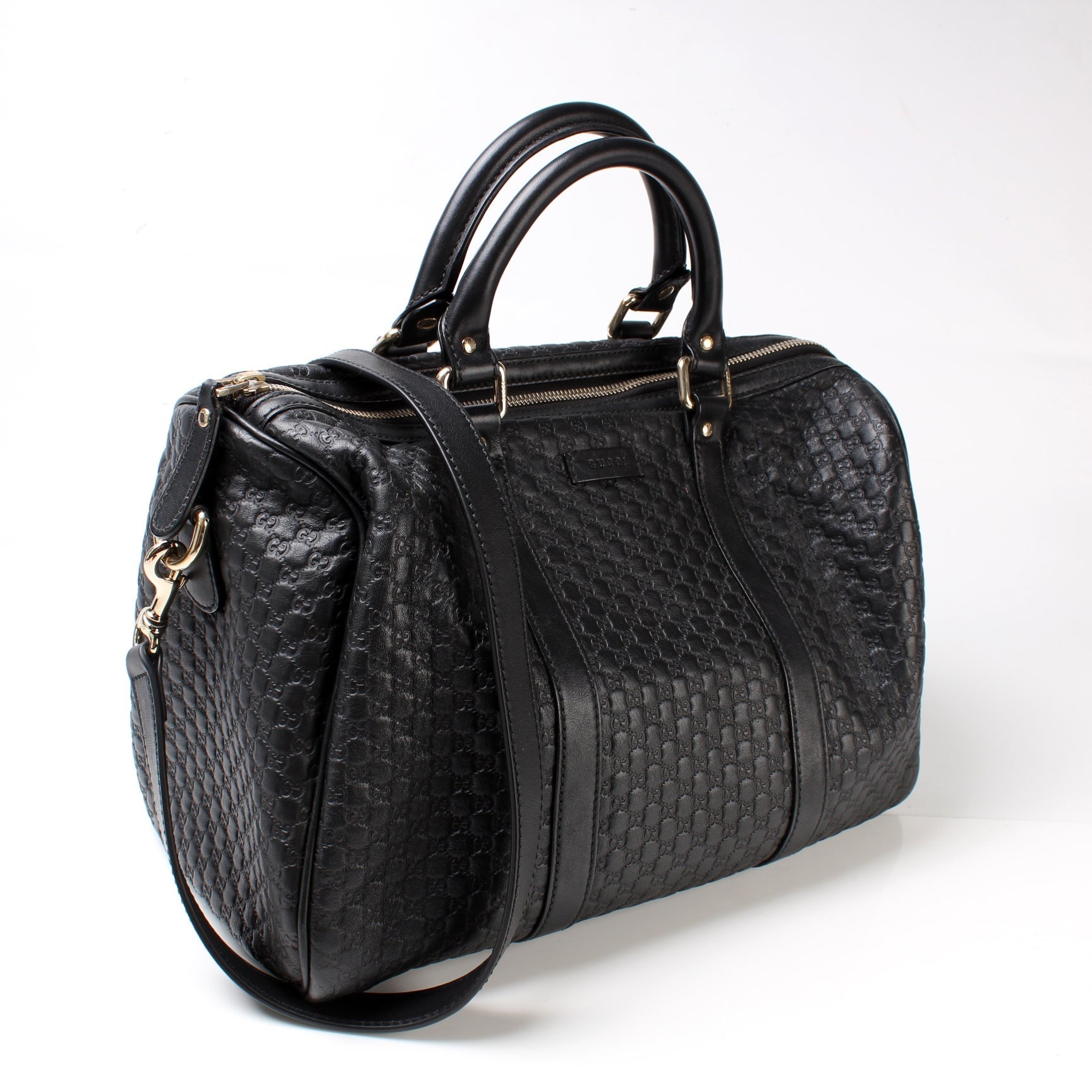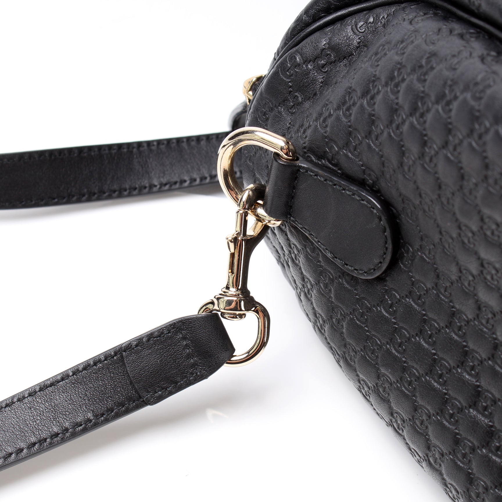 This Gucci Boston Bag W/Strapis eye catching bag. It is in the classic Micro Guccissima leather.