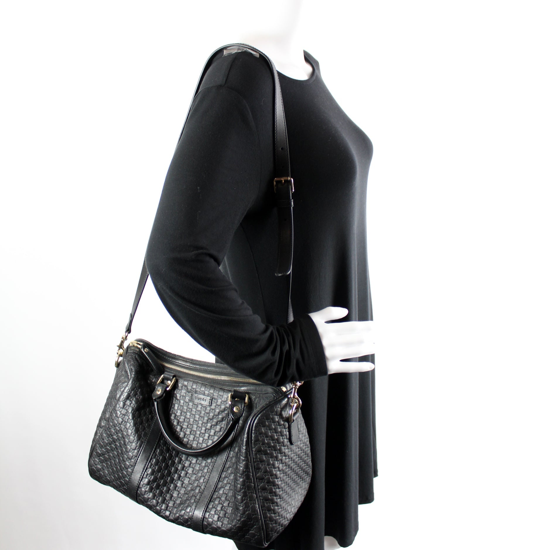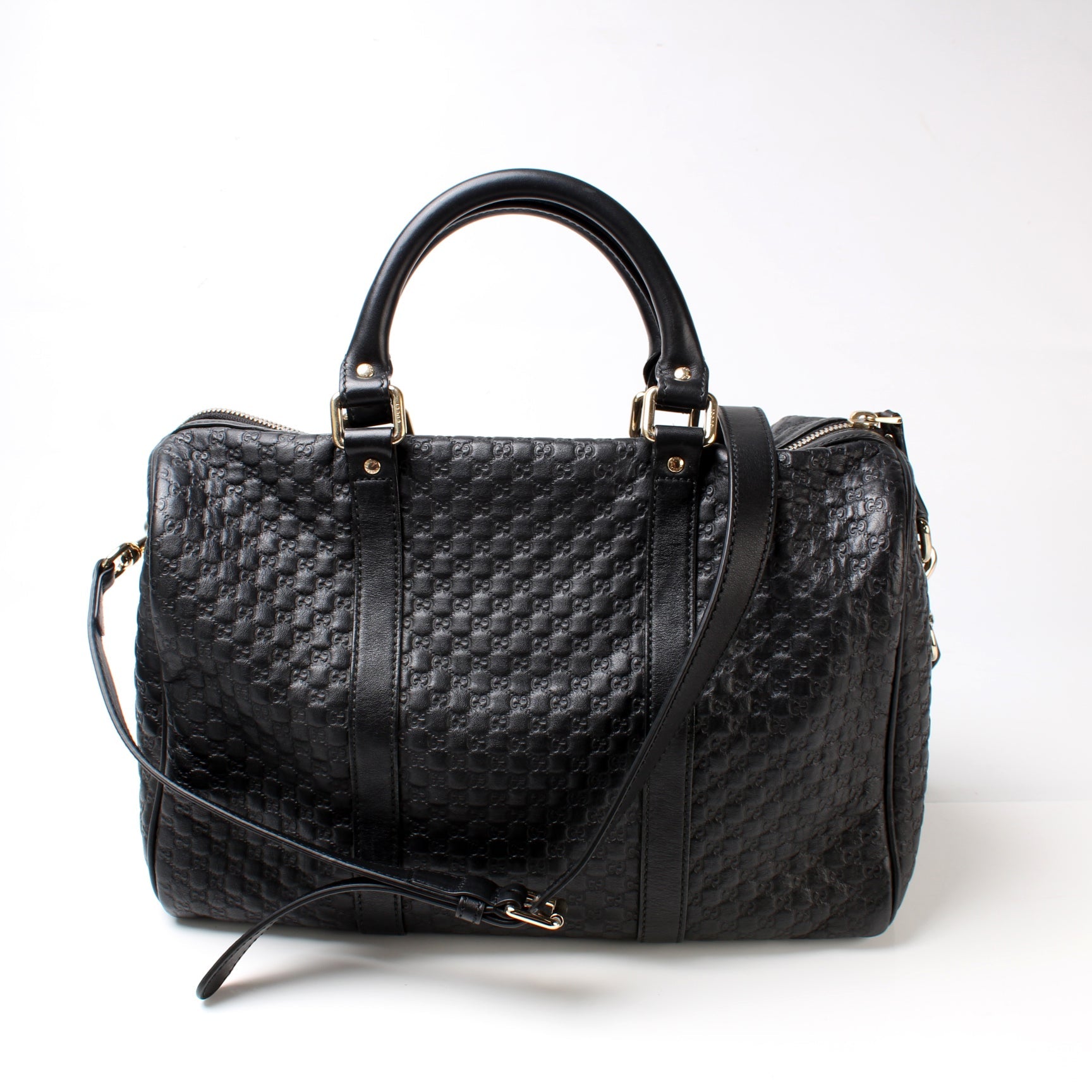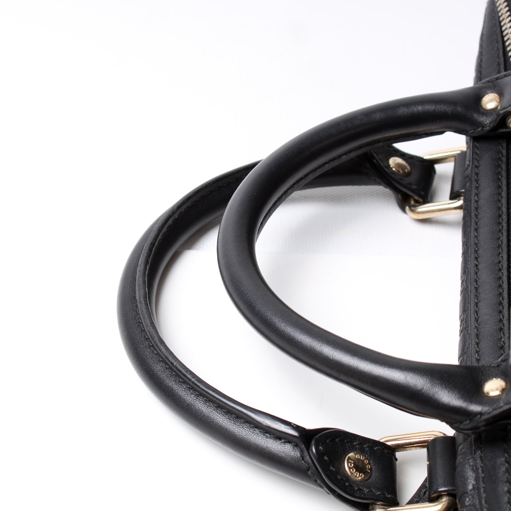 This Gucci Boston Bag W/Strapis eye catching bag. It is in the classic Micro Guccissima leather.