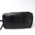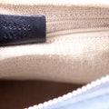 Interior: The interior shows light staining, and is free of rips or tears. The interior features two open pockets and one zip closure pocket.