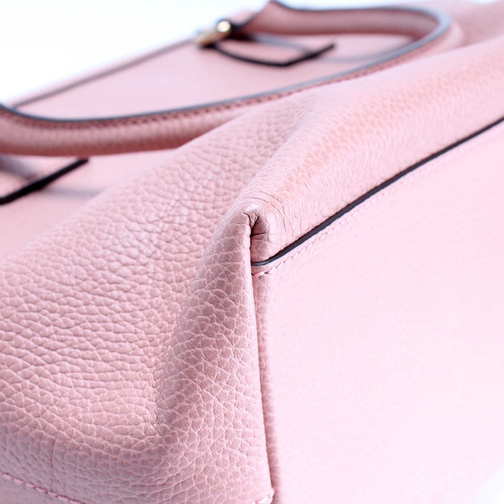 Hardware: The zipper operates properly and runs smoothly. The leather zipper pull shows light discoloration.