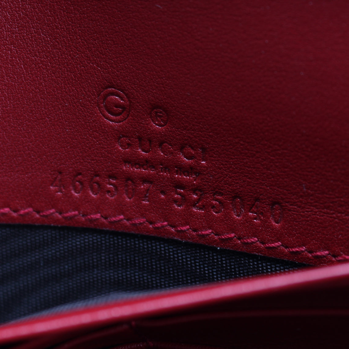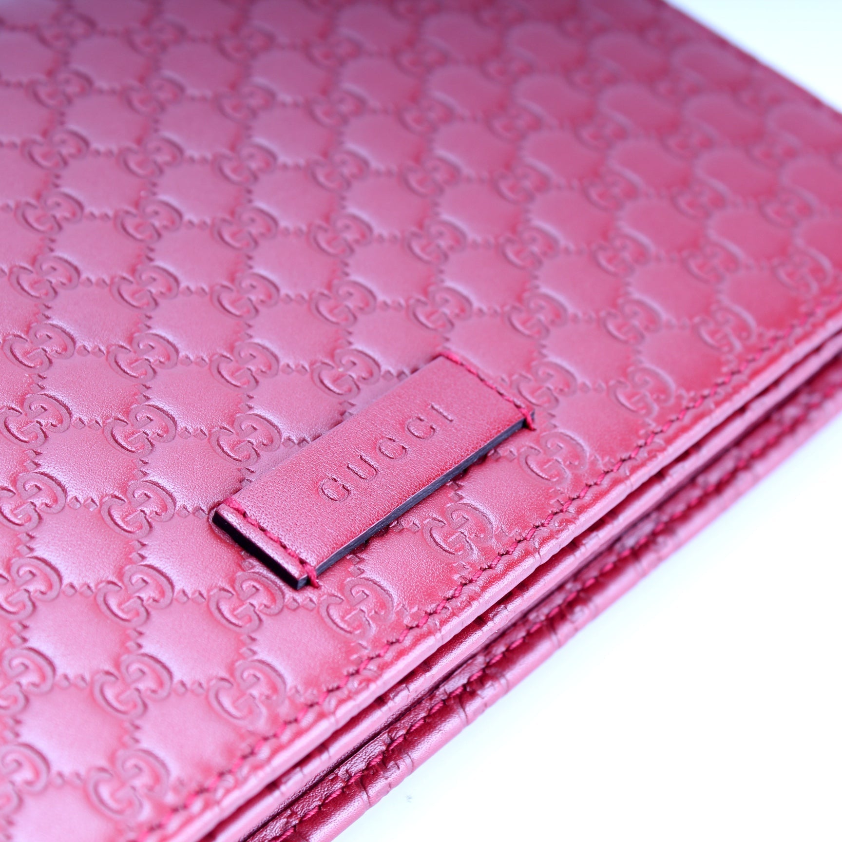 This Gucci Micro GG WOC is guaranteed 100% authentic. The exterior is in the classic Gucci Micro GG Guccissima leather.