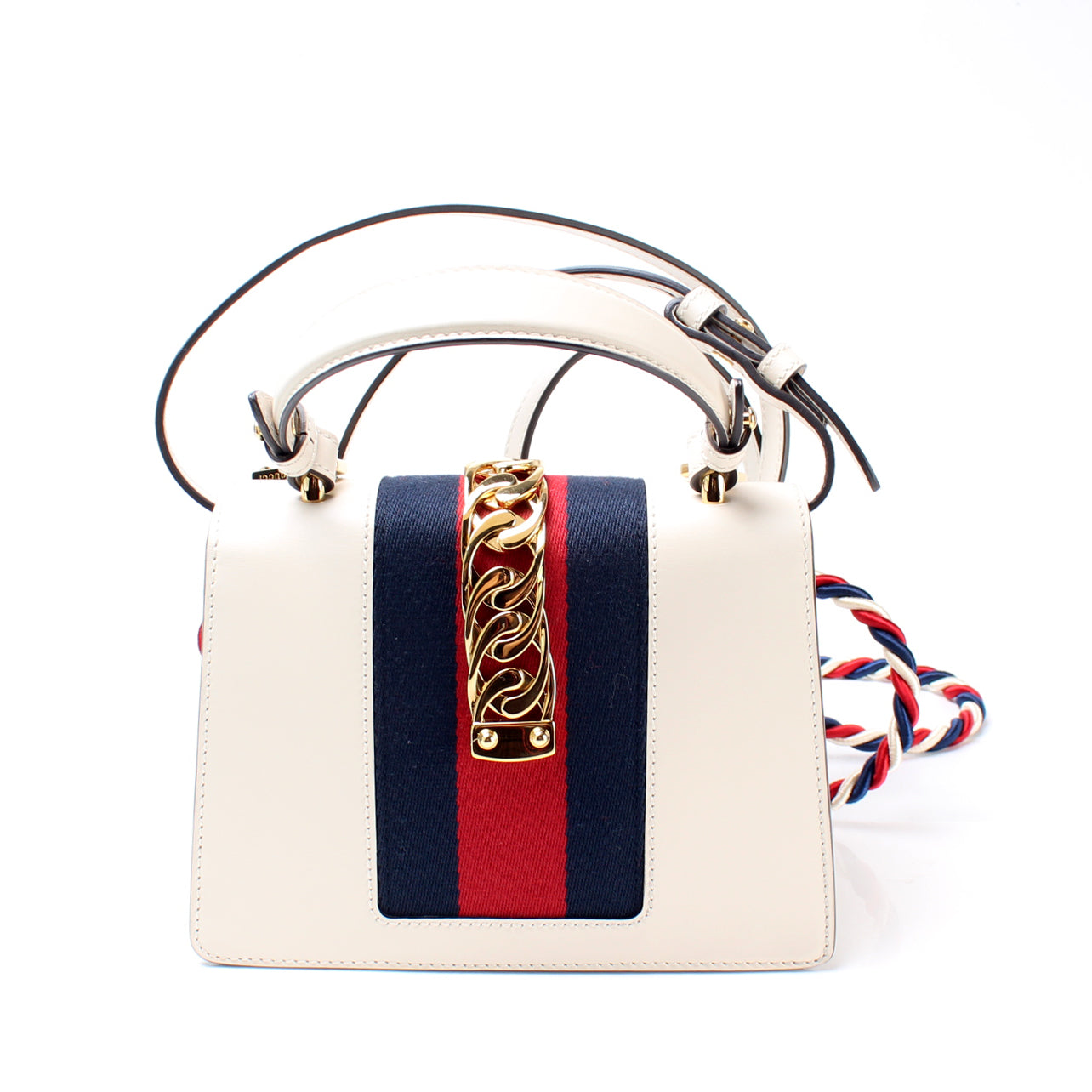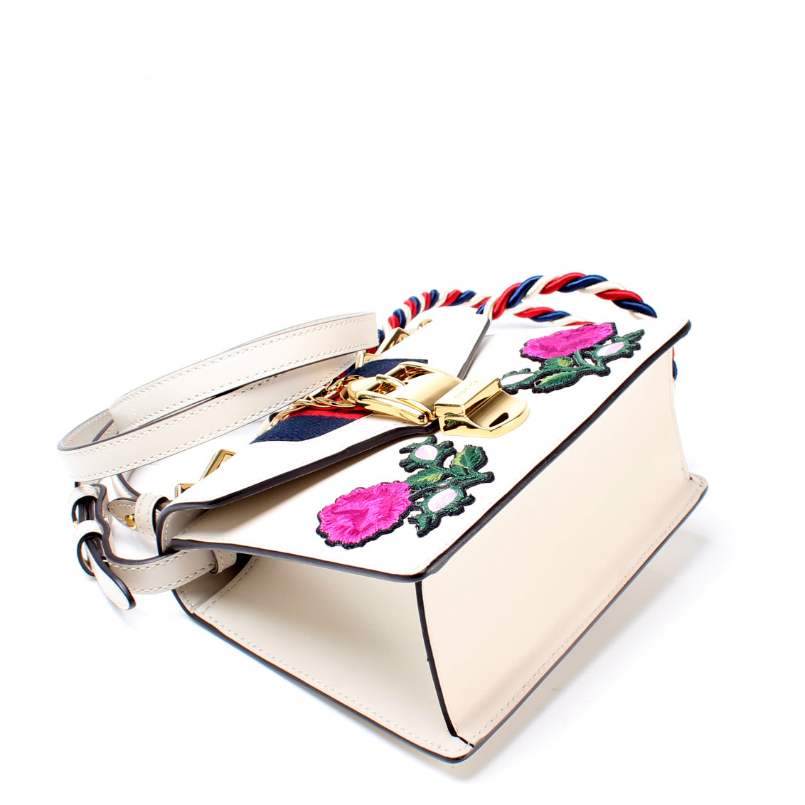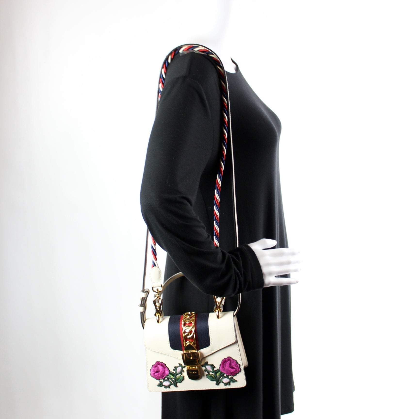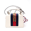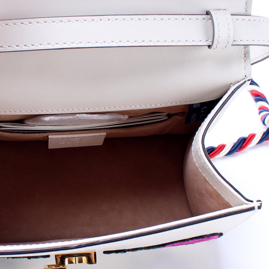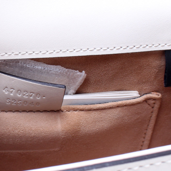 This Gucci Sylvie Miniis eye catching bag. The exterior is in the classic Gucci leather.