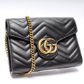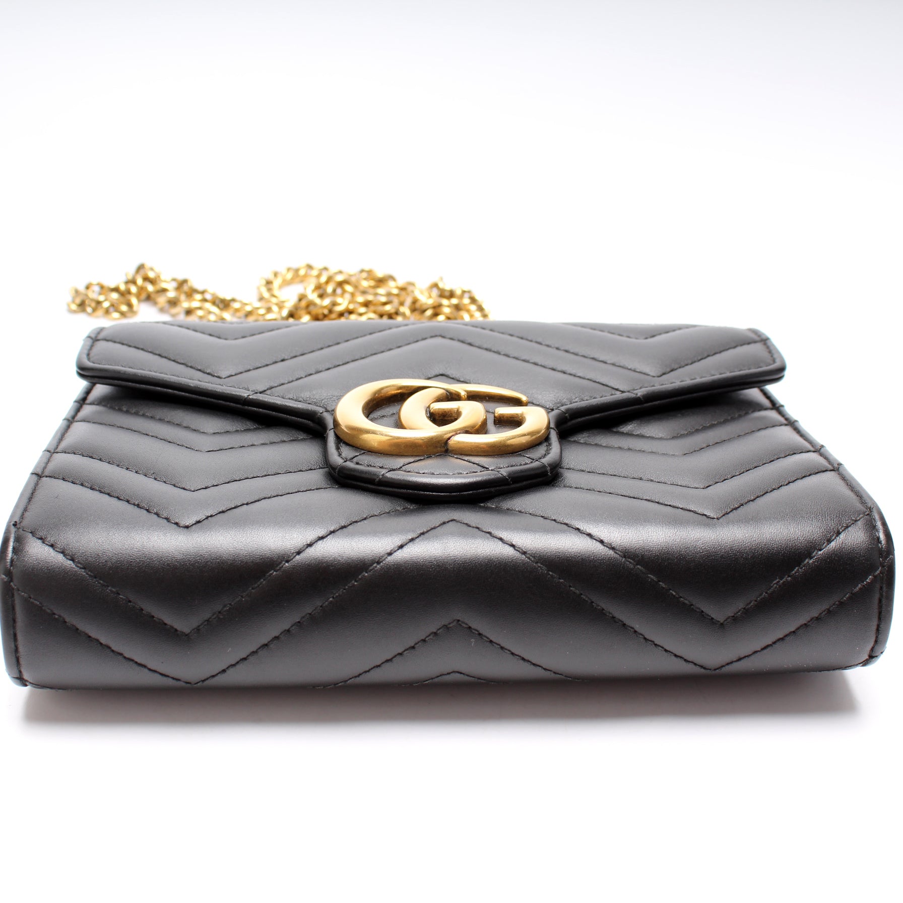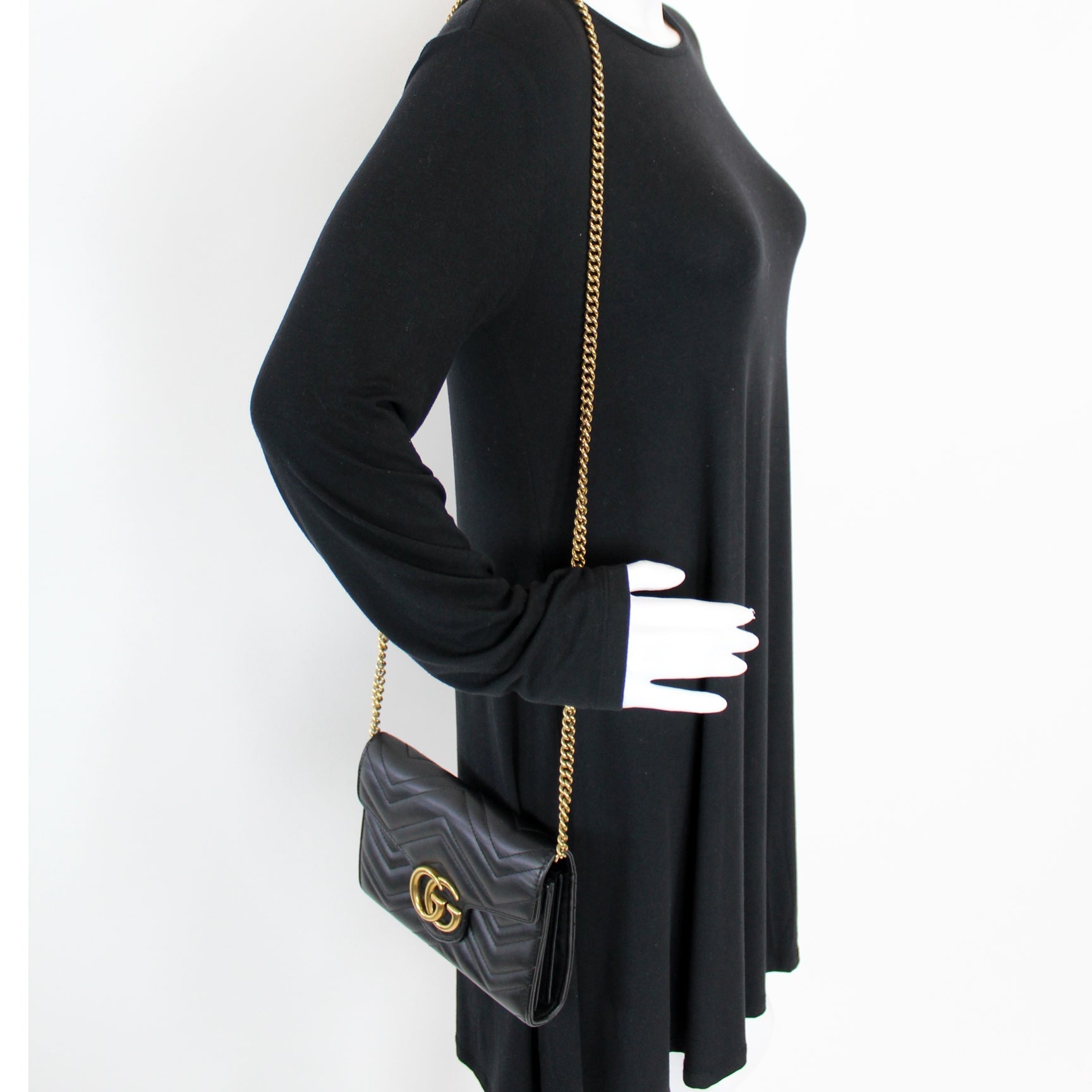 This Gucci Marmont Chain Walletis eye catching bag. The exterior is in the classic Gucci Marmont leather.