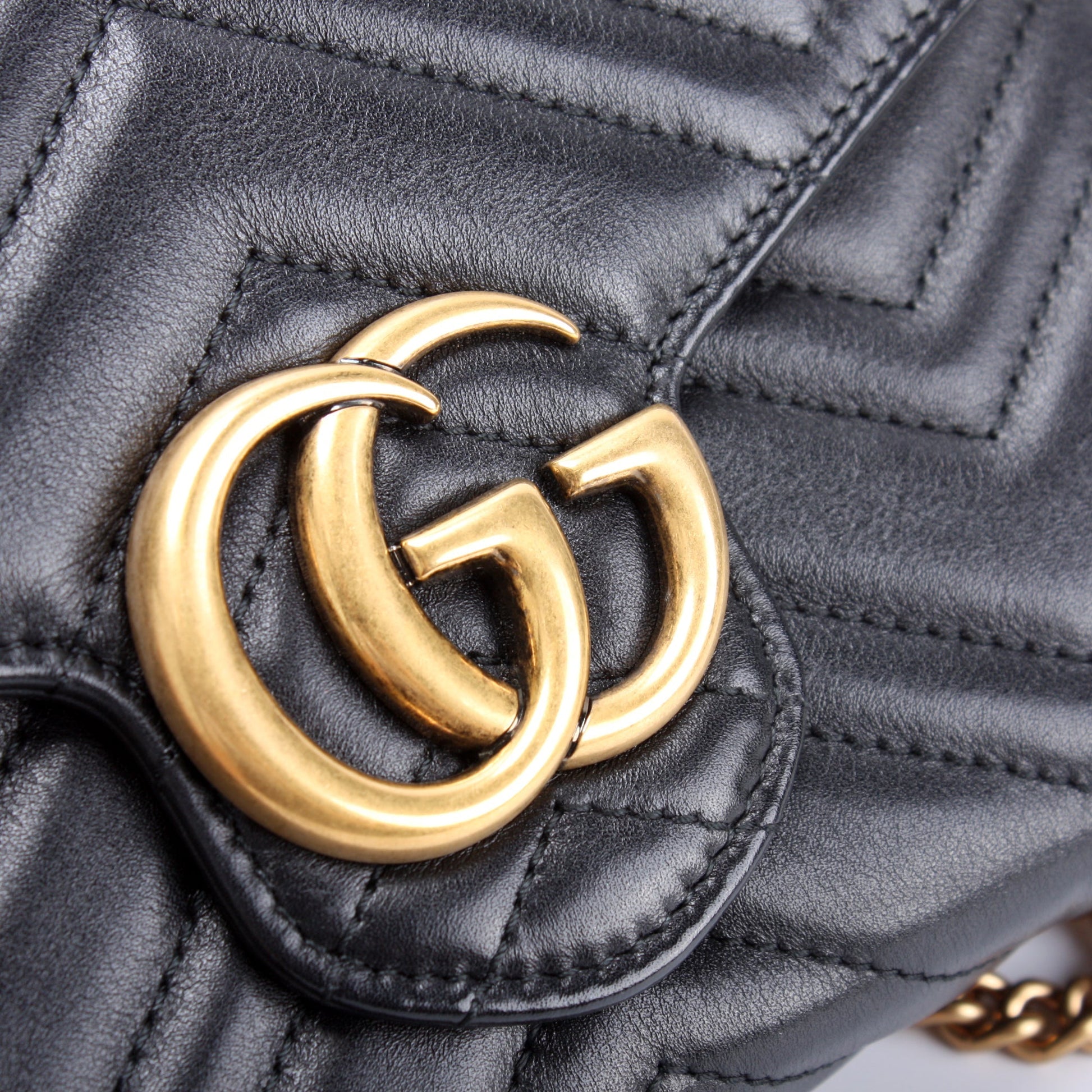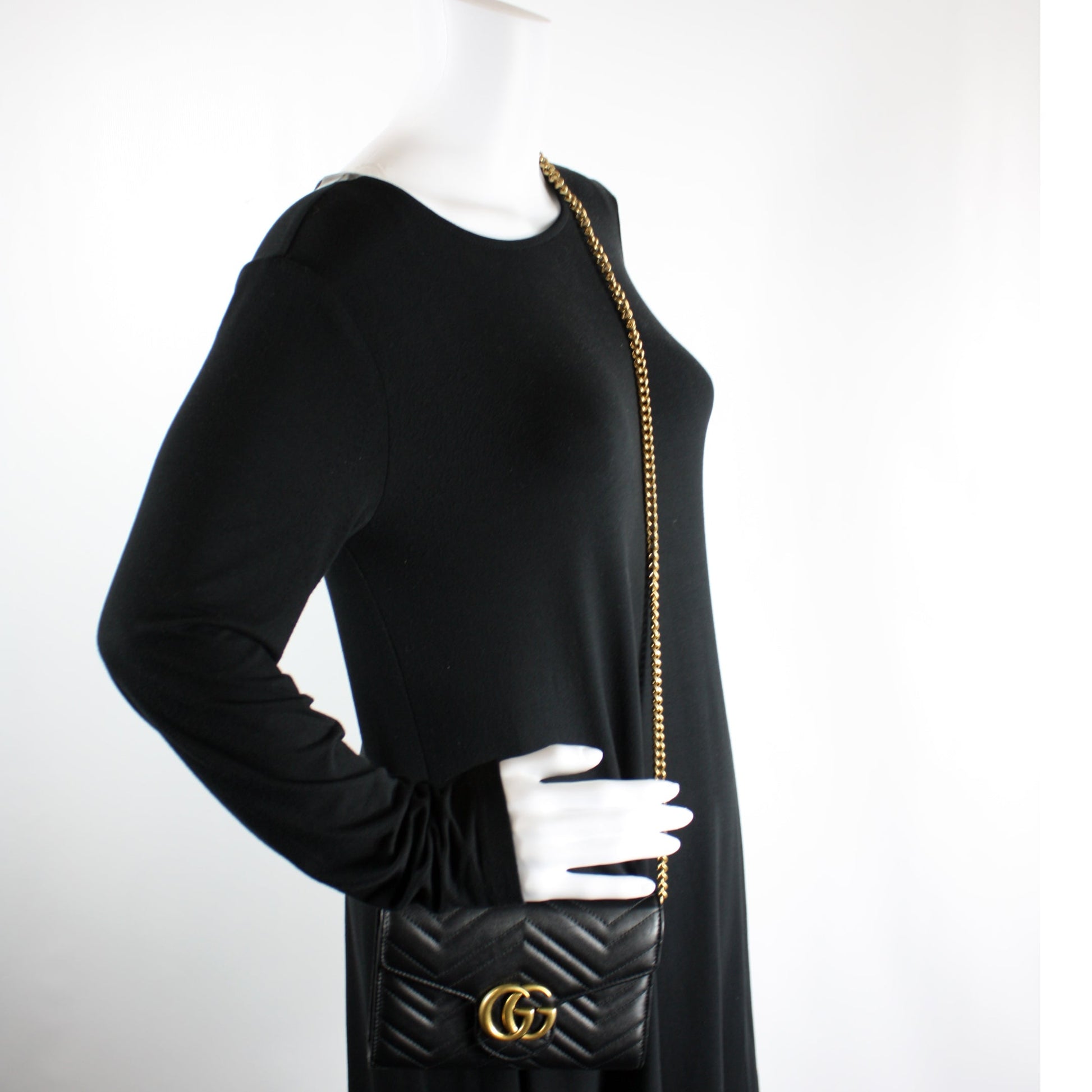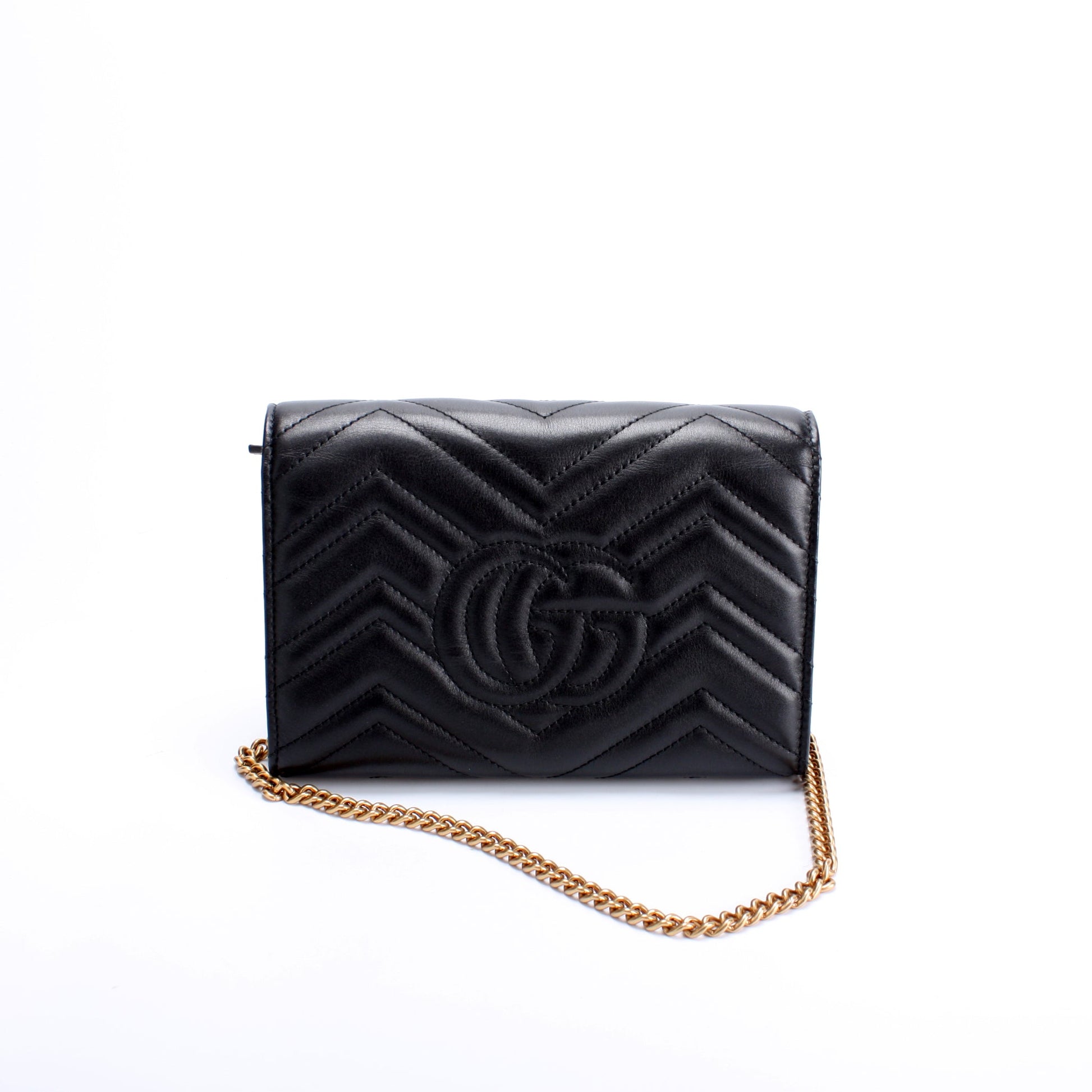 This Gucci Marmont Chain Walletis eye catching bag. The exterior is in the classic Gucci Marmont leather.