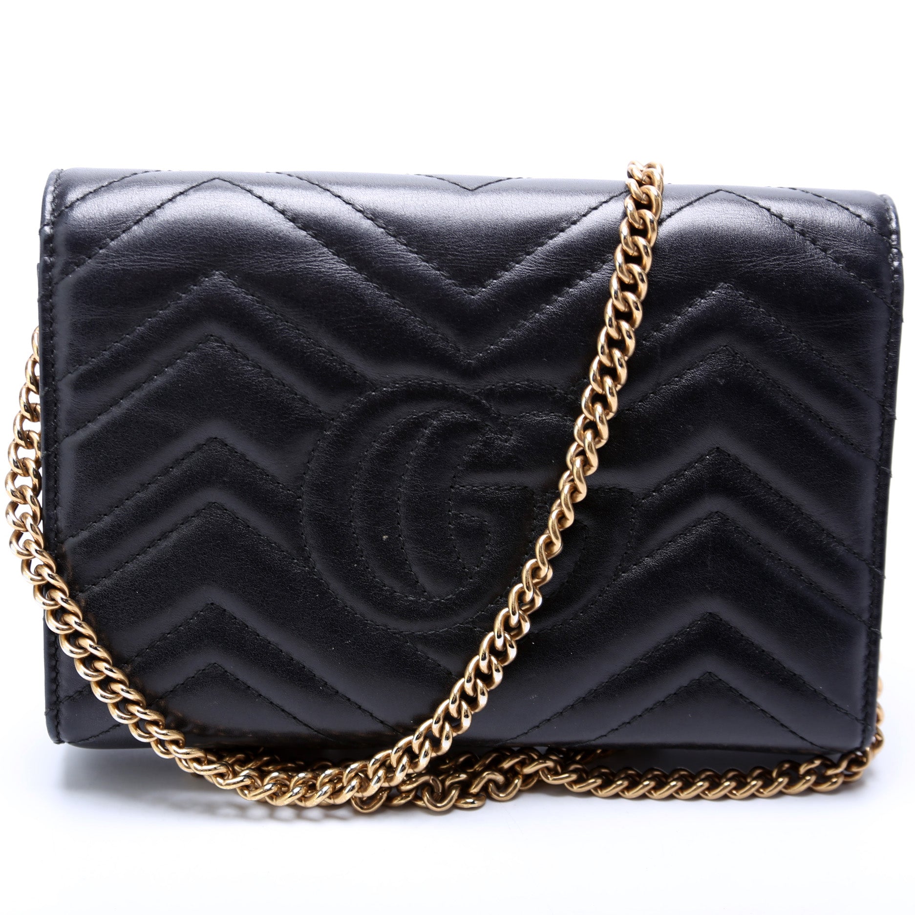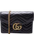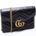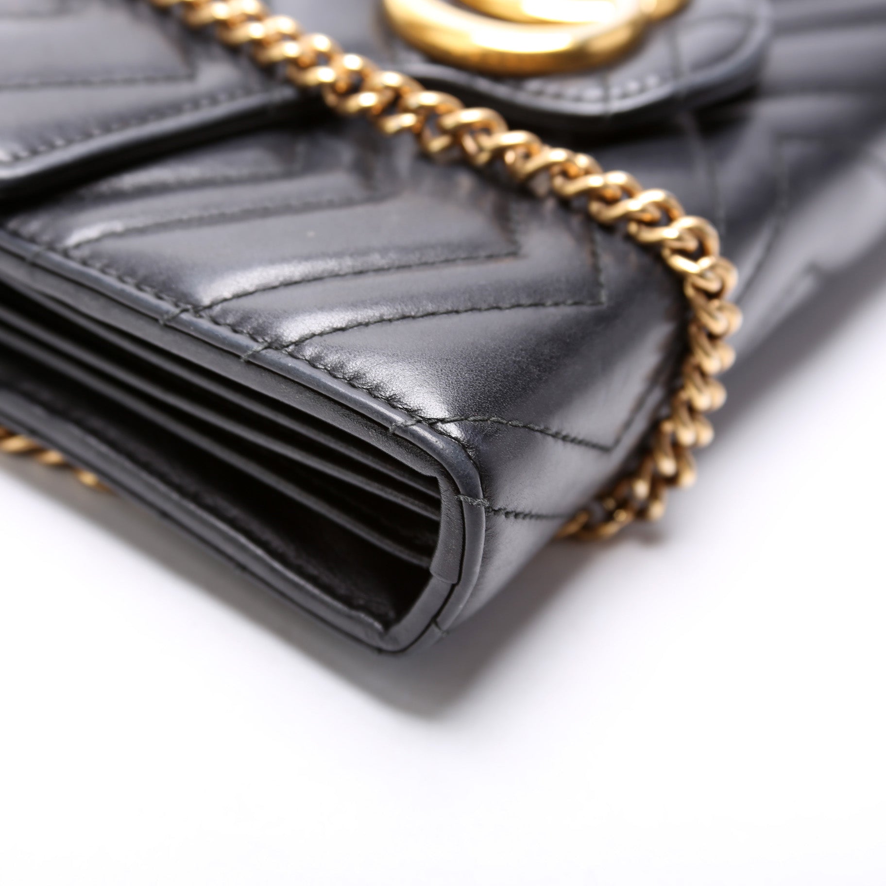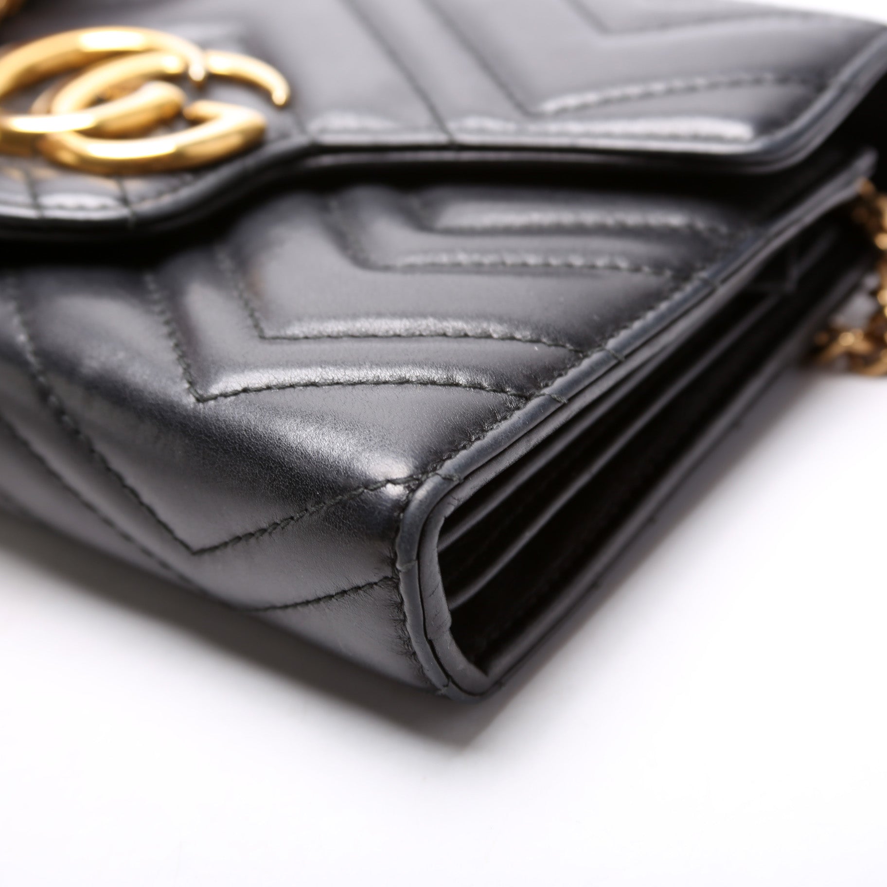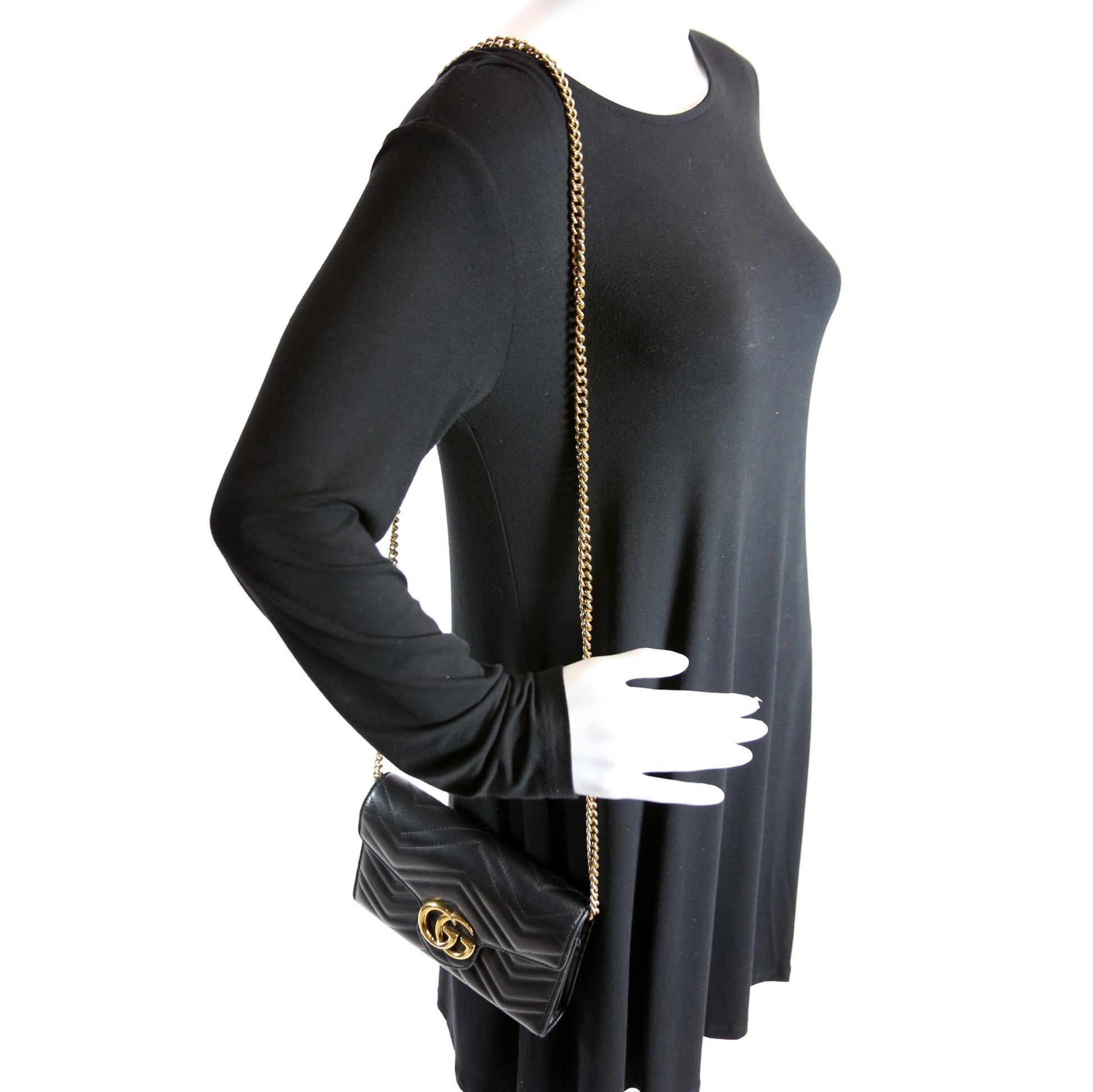 This Gucci Marmont Chain Walletis eye catching bag. The exterior is in the classic Gucci Marmont leather.