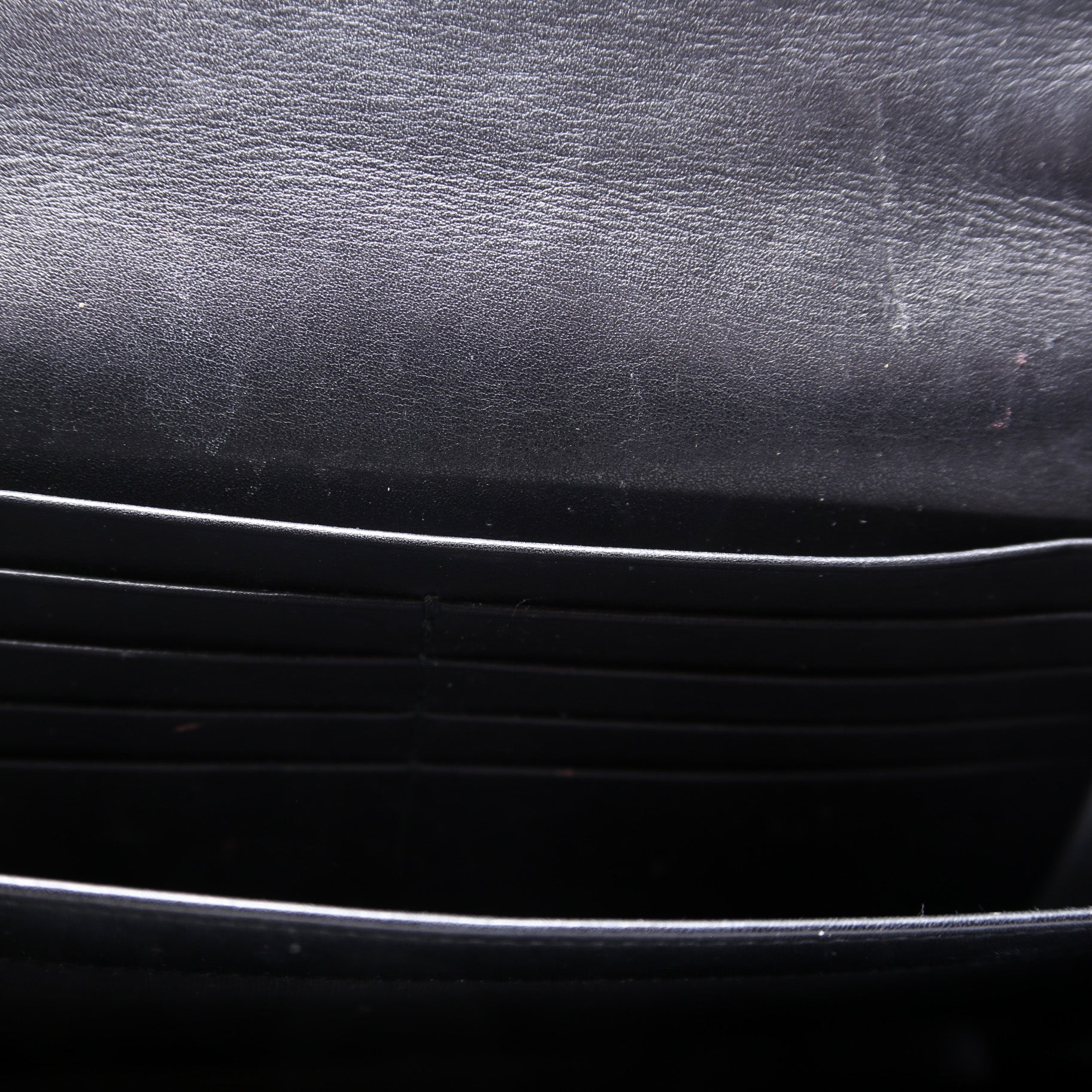 Interior: The interior has minor scuffs and signs of wear throughout. The interior features sixteen card slots, five open pockets, and one zipper pocket.