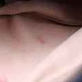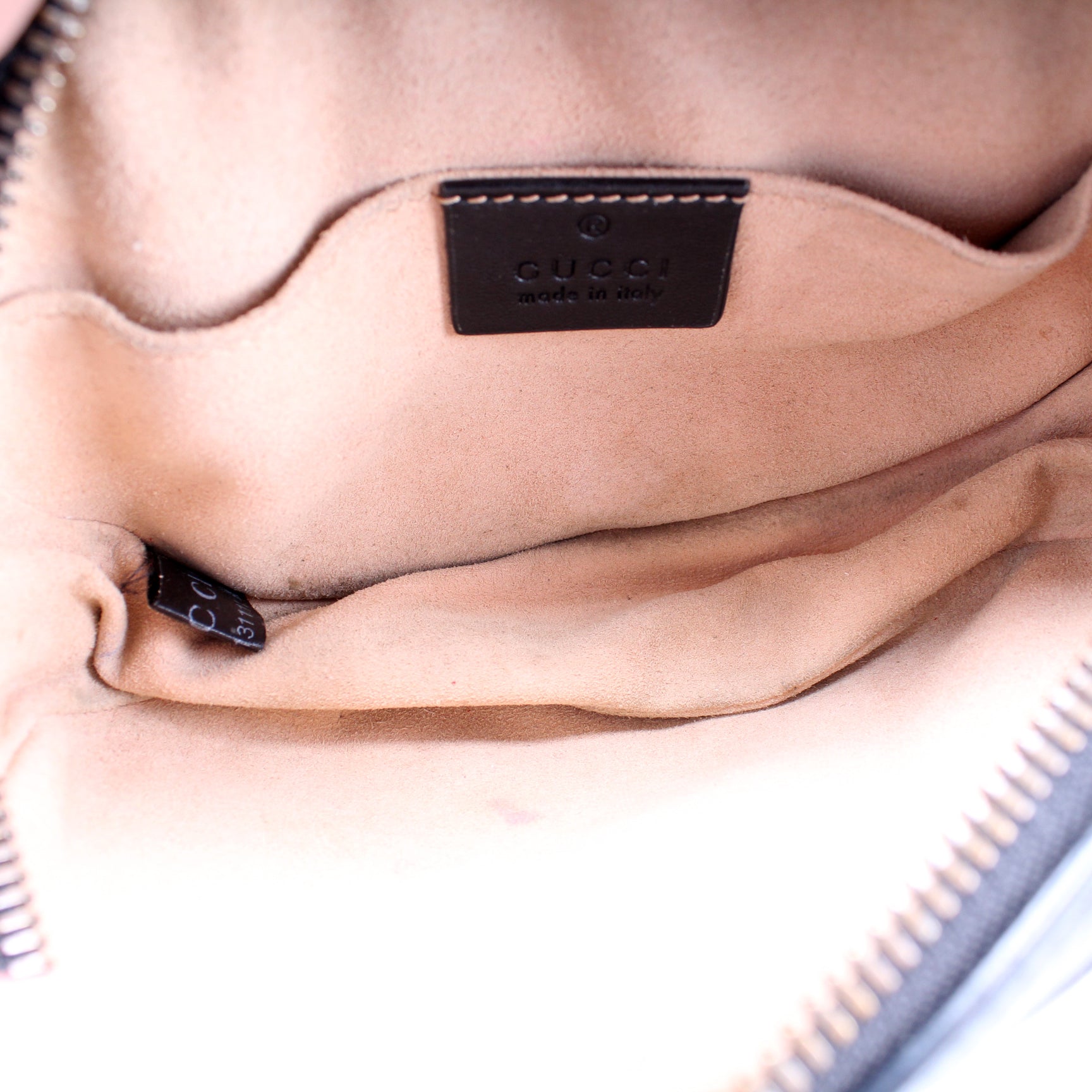 Interior: The interior is free of rips or tears. The interior features one open pocket. There is discoloration to the interior fabric.