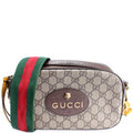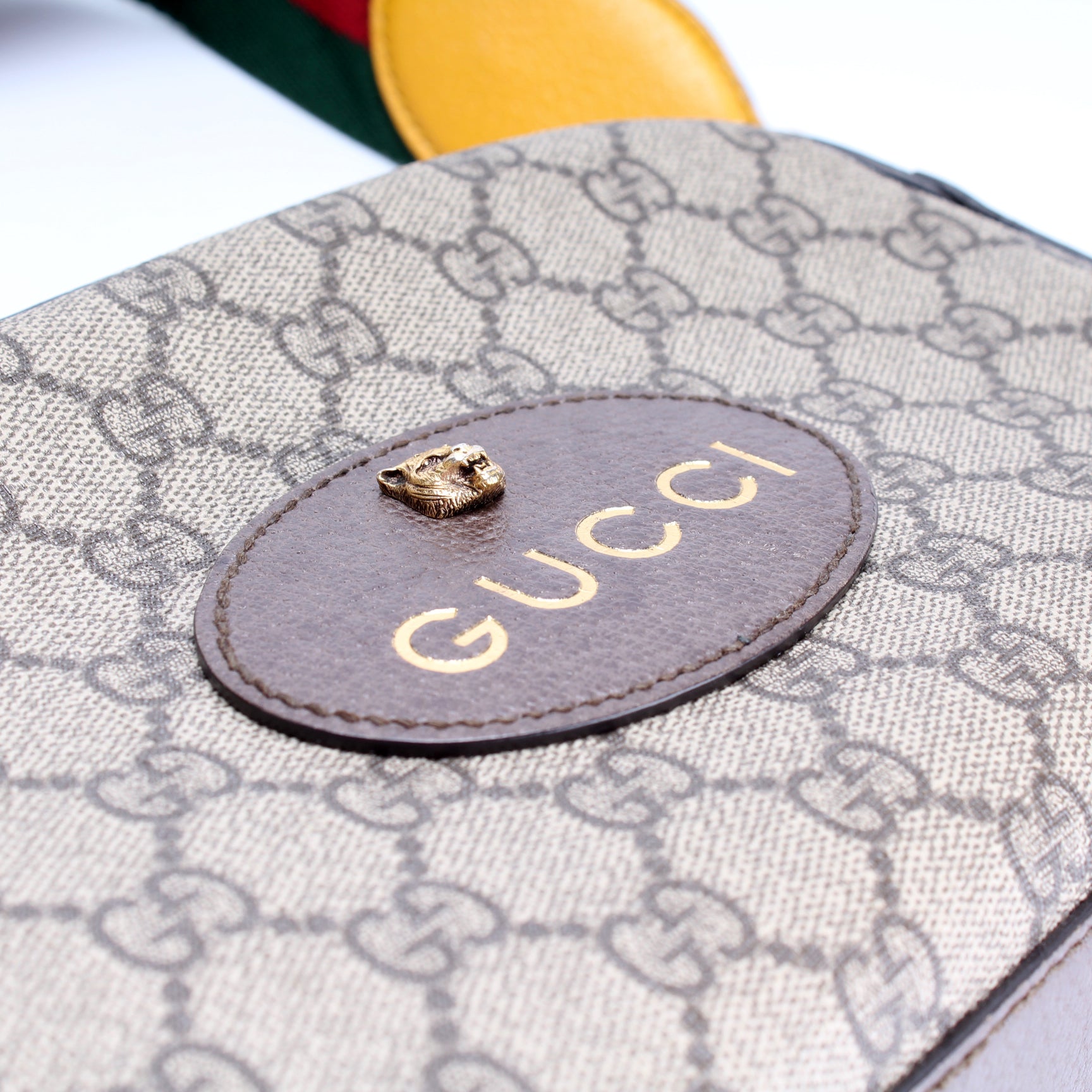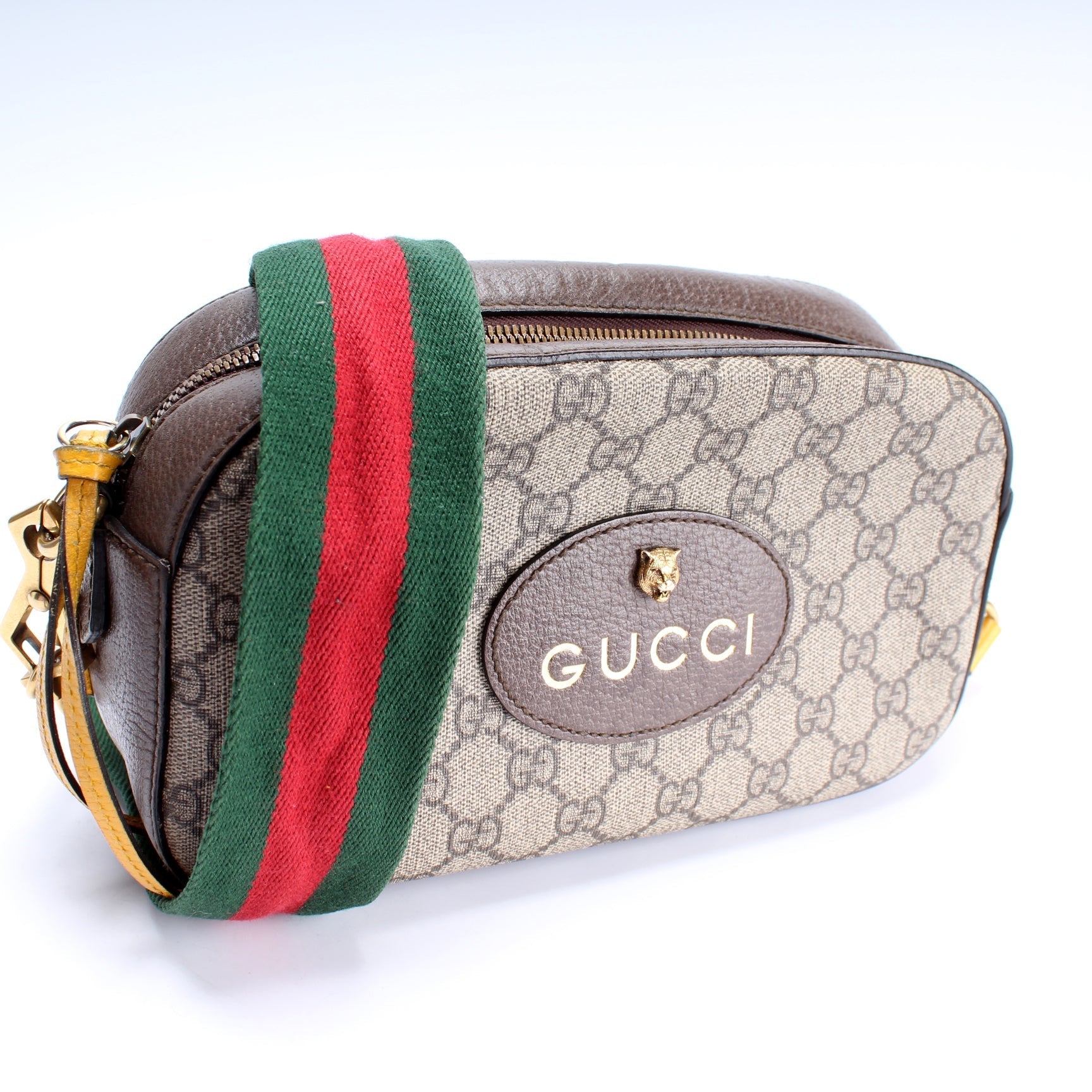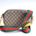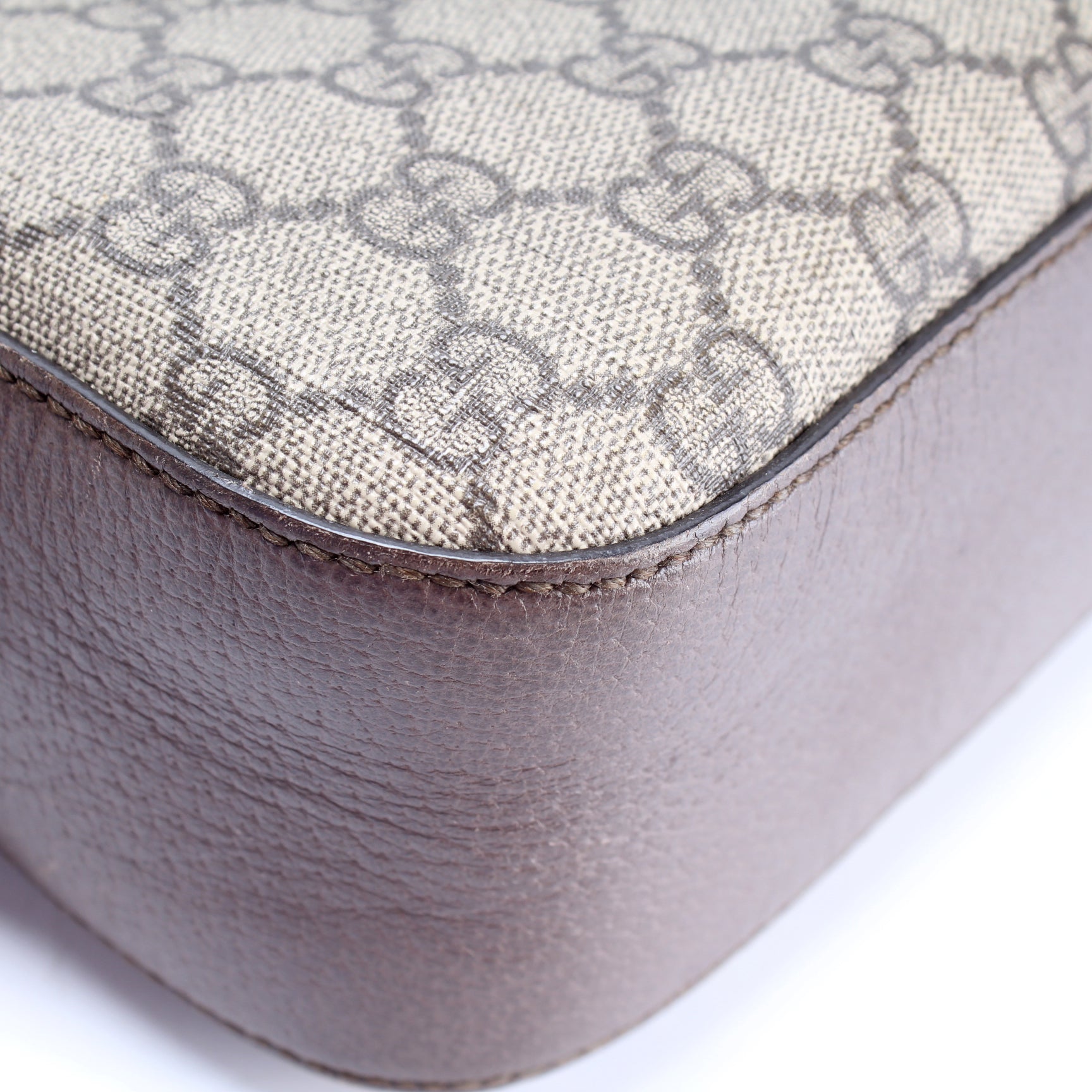 This Gucci Messenger Bag is guaranteed 100% authentic. The exterior is in the classic Gucci GG Supreme coated canvas.