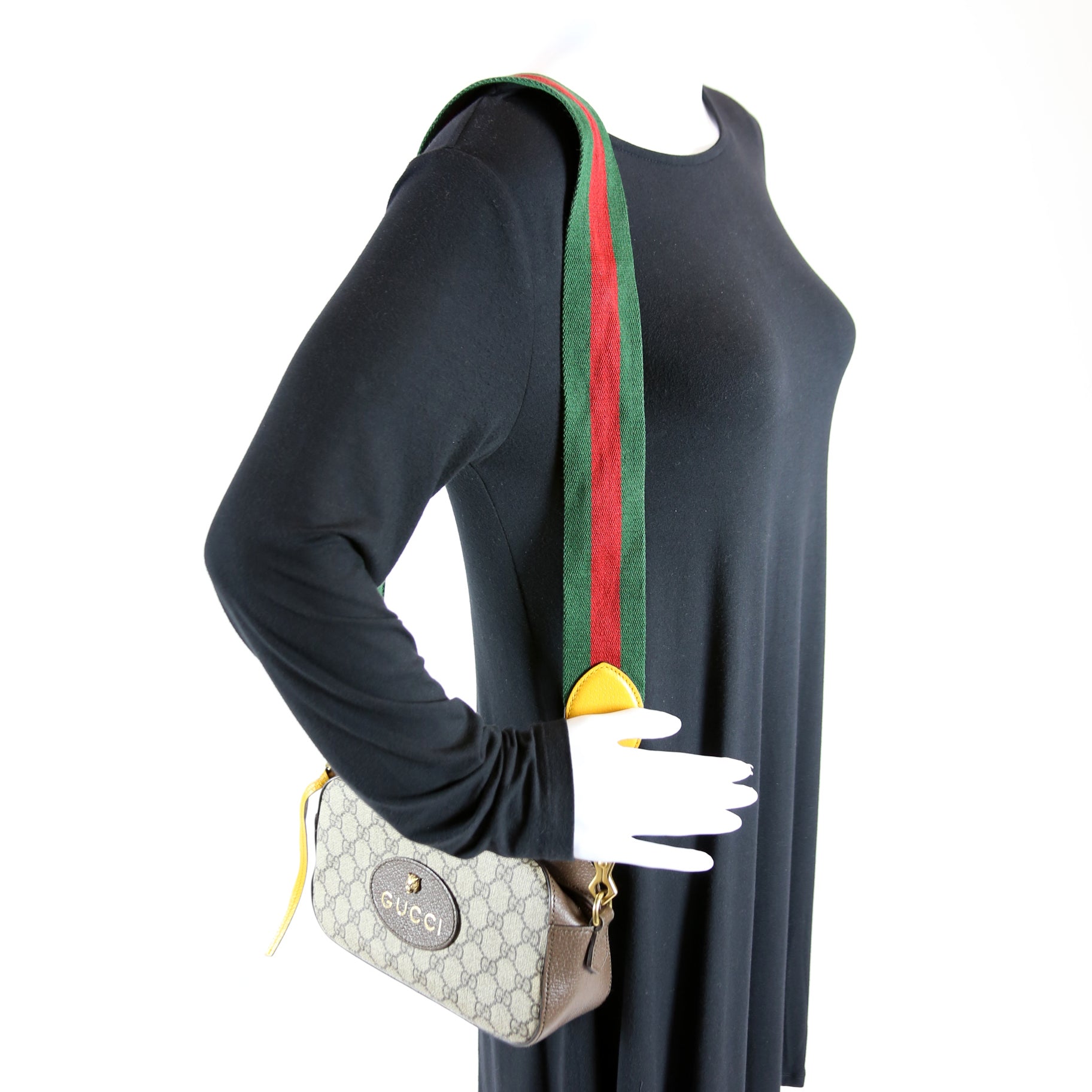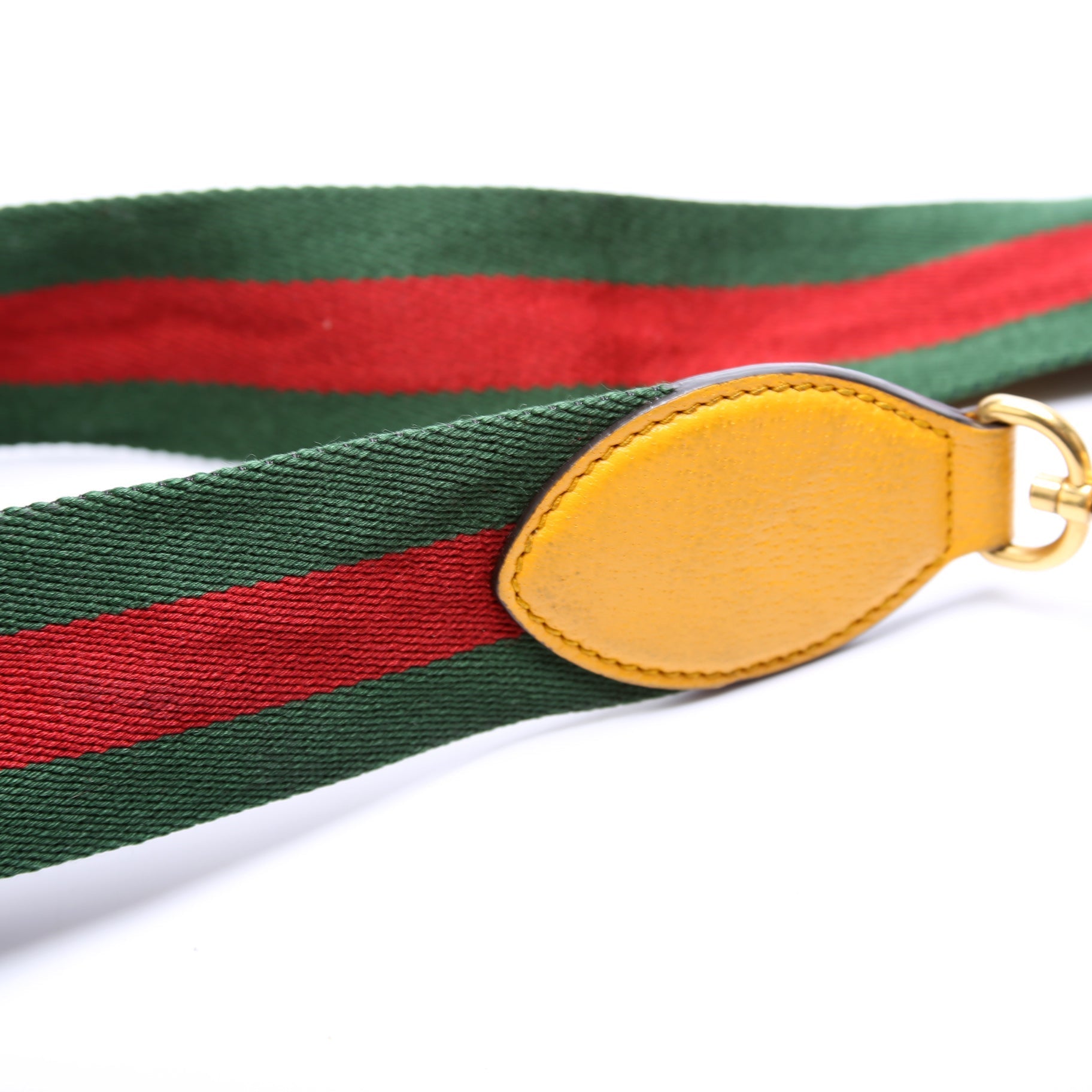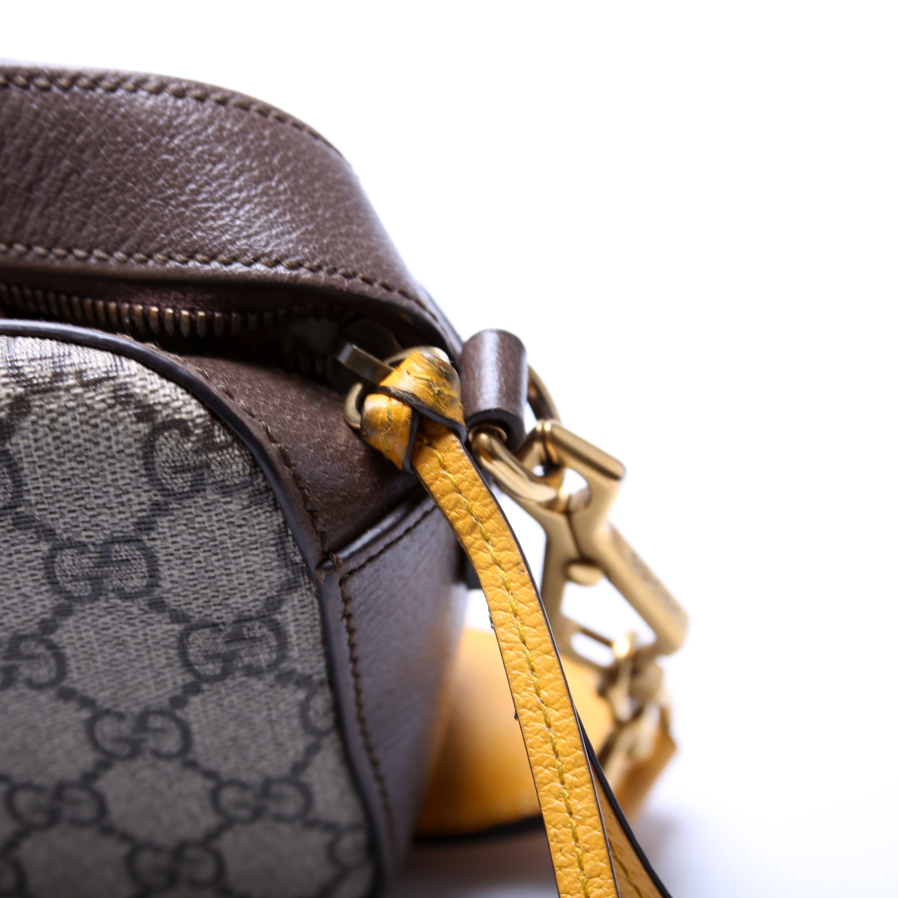 Strap: The shoulder strap shows discoloration to the yellow leather.