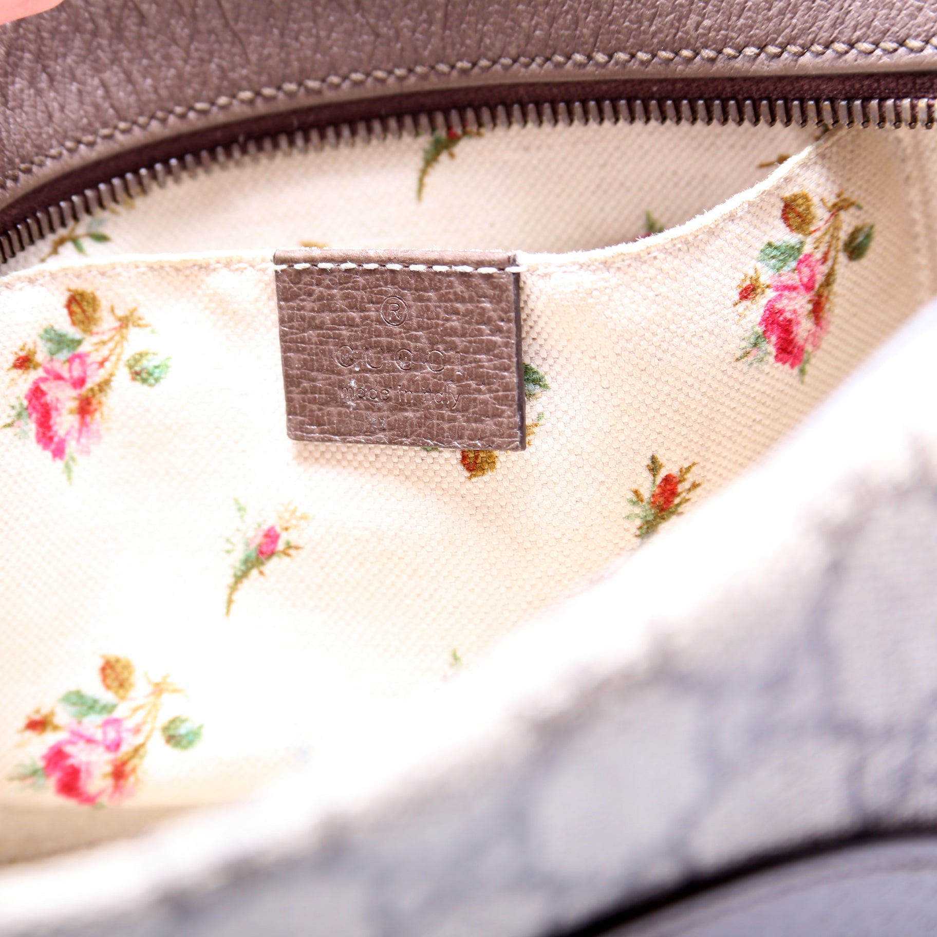 Hardware: The zipper operates properly and runs smoothly. The zipper pull shows discoloration.