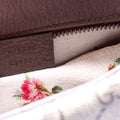Exterior: The exterior coated canvas is free from any rips or cracks. The leather shows minor scuffs. The top of the bag is misshaped.