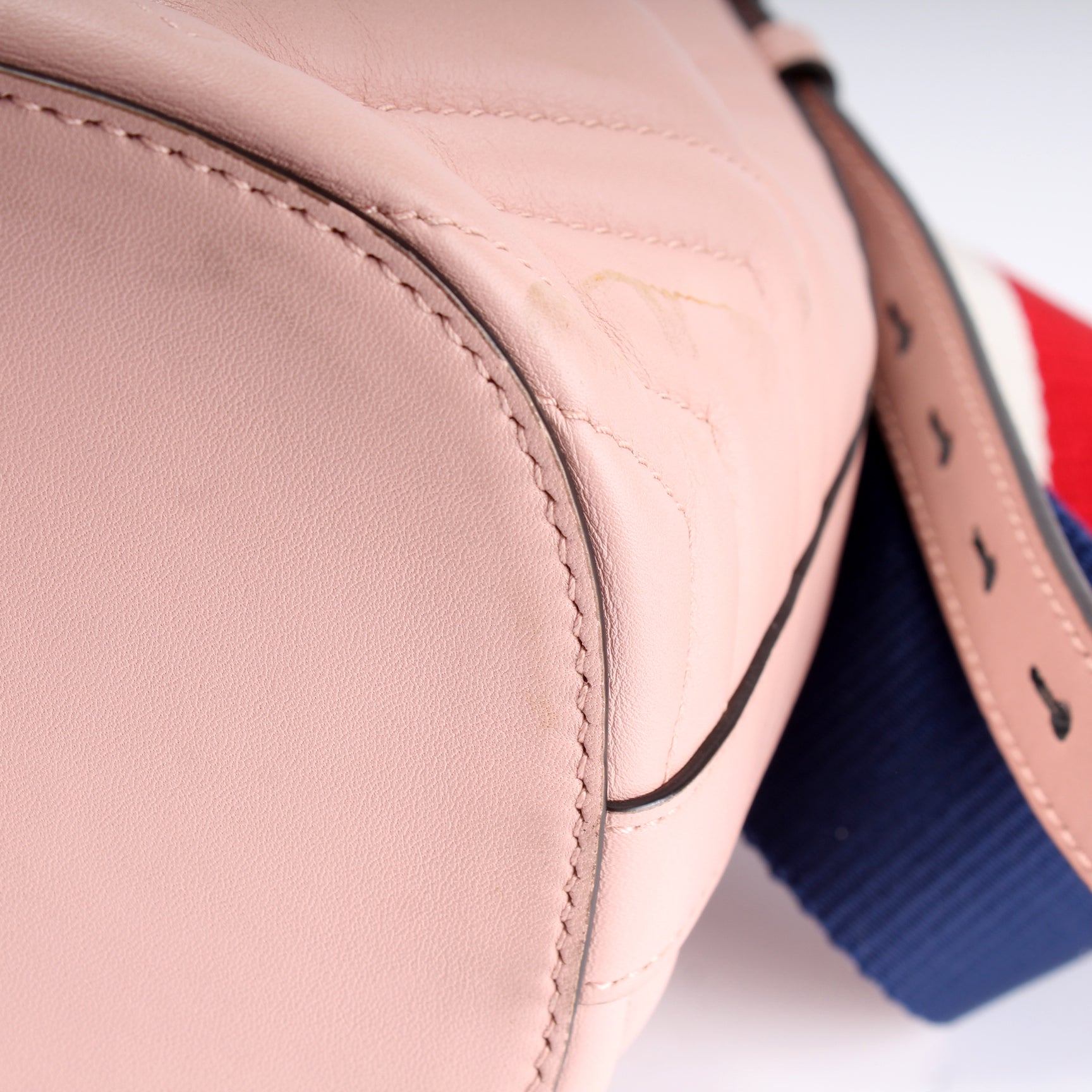 Strap: The strap shows light discoloration along the leather.