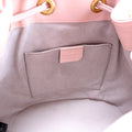 Hardware: The drawstring operates properly. The leather shows minor discoloration throughout.