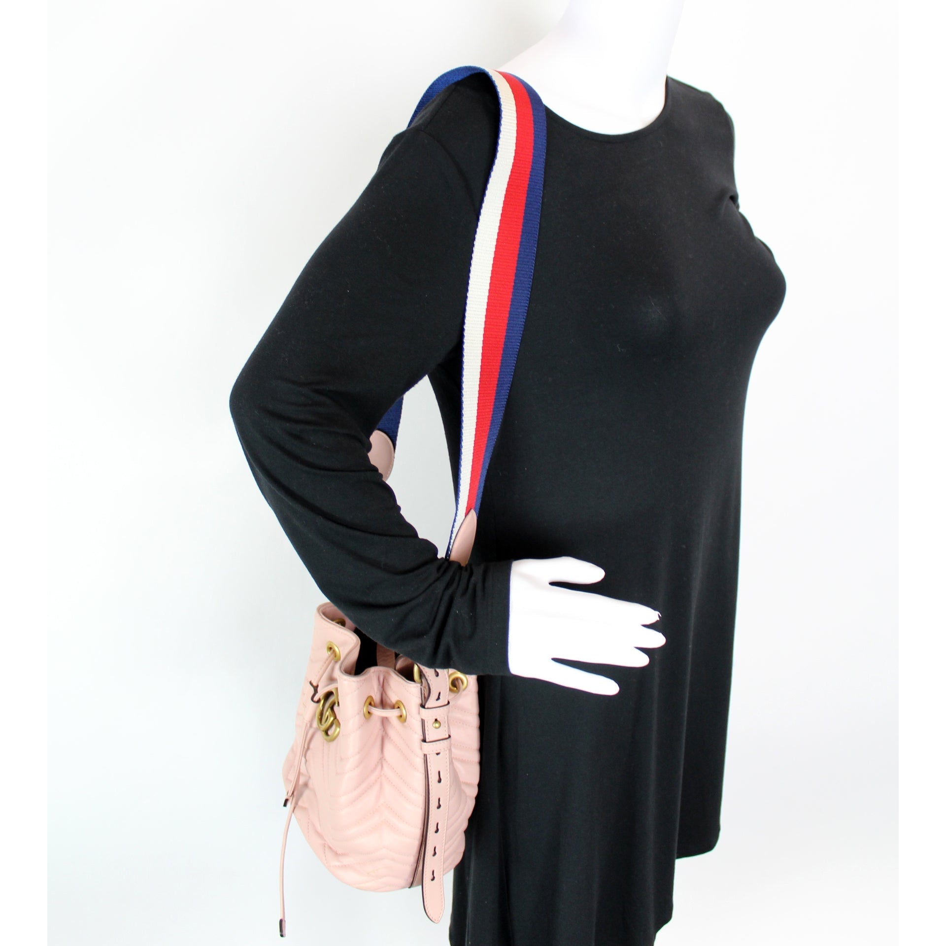 This Gucci GG Marmont Bucketis eye catching bag.