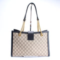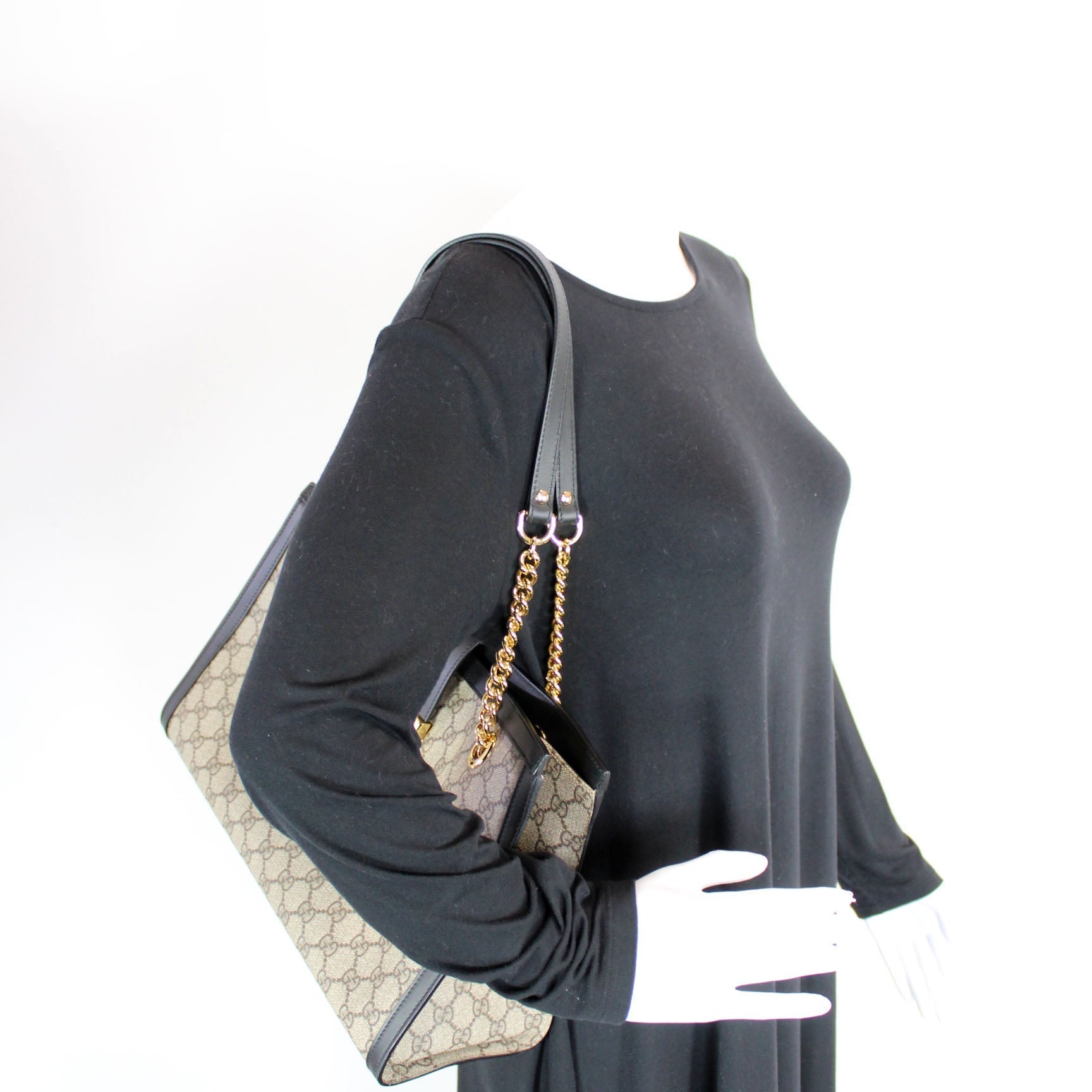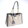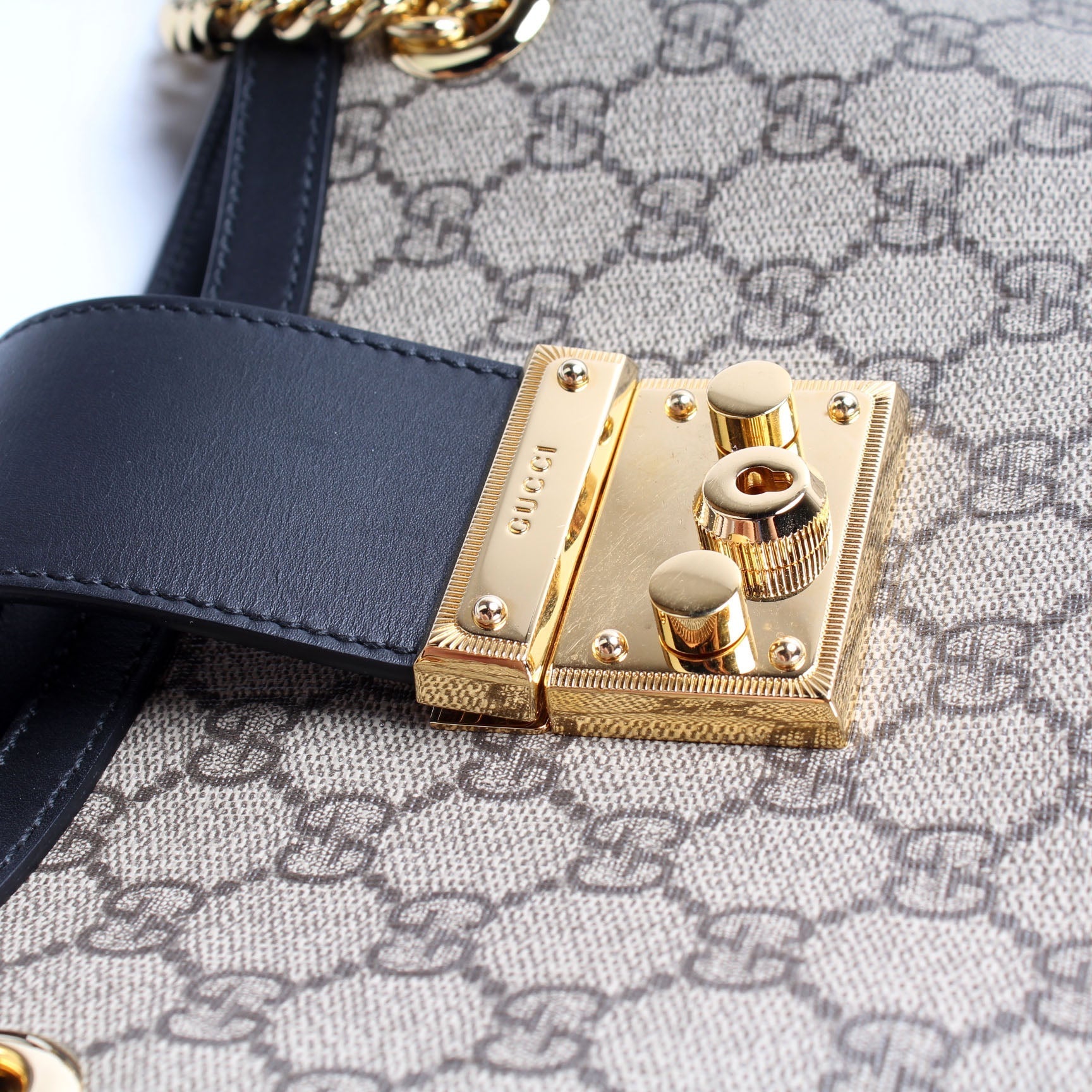 This Gucci Padlock GG Shoulder Bag Mediumis eye catching bag. The exterior is in the classic GG Supreme coated canvas.